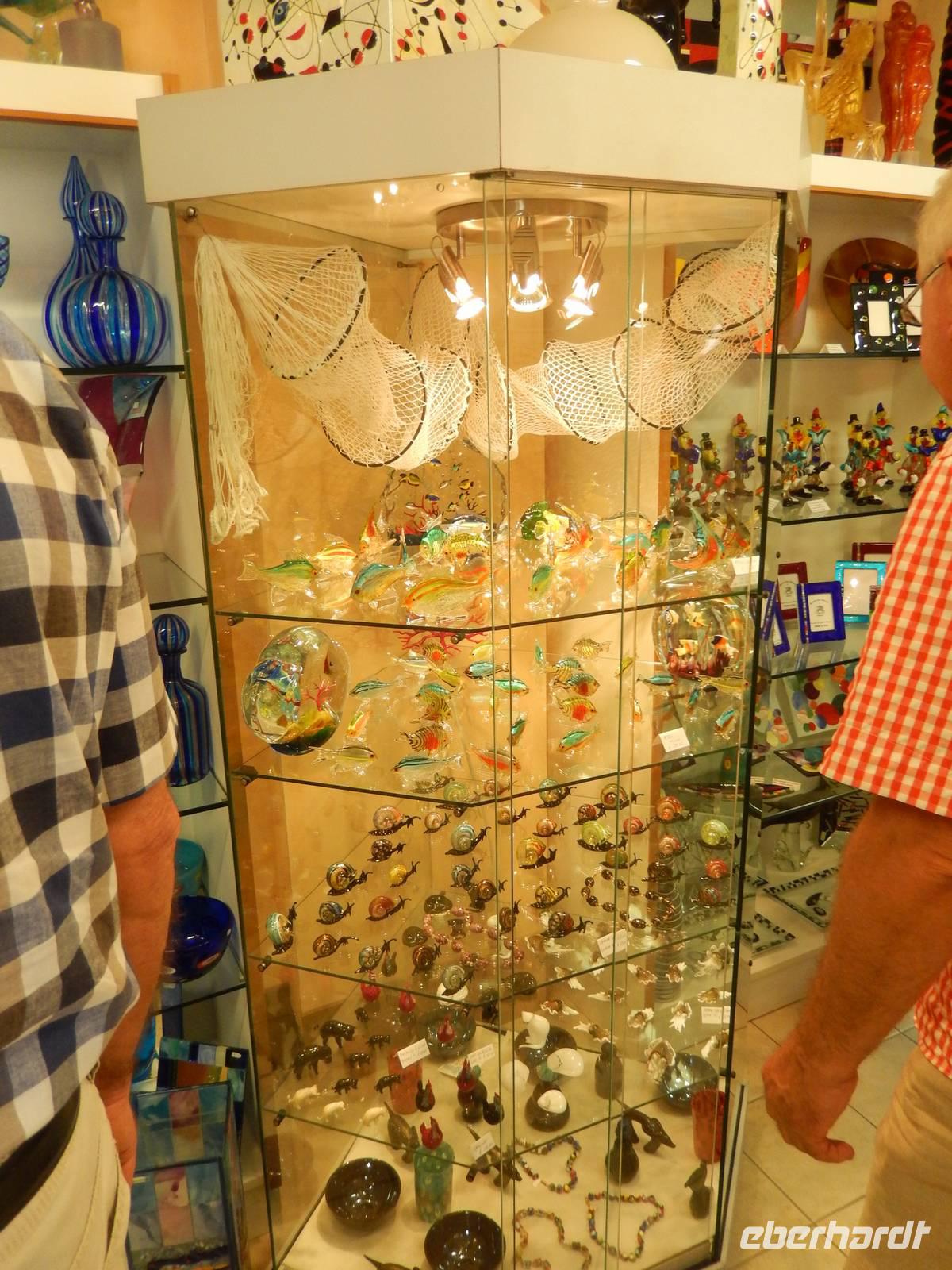 Der Kapitän legte direkt an der Gasse an, die uns zu einer der ältesten und heute noch bekanntesten Glasbläsereien der Insel führte. Gabriella meldete uns dort an und der Chef der Glasbläserei persönlich nahm sich Zeit, um uns Geschichte und Herstellung des Glases zu erläutern, während sein bester Meister dies live neben ihm für uns vorführte.