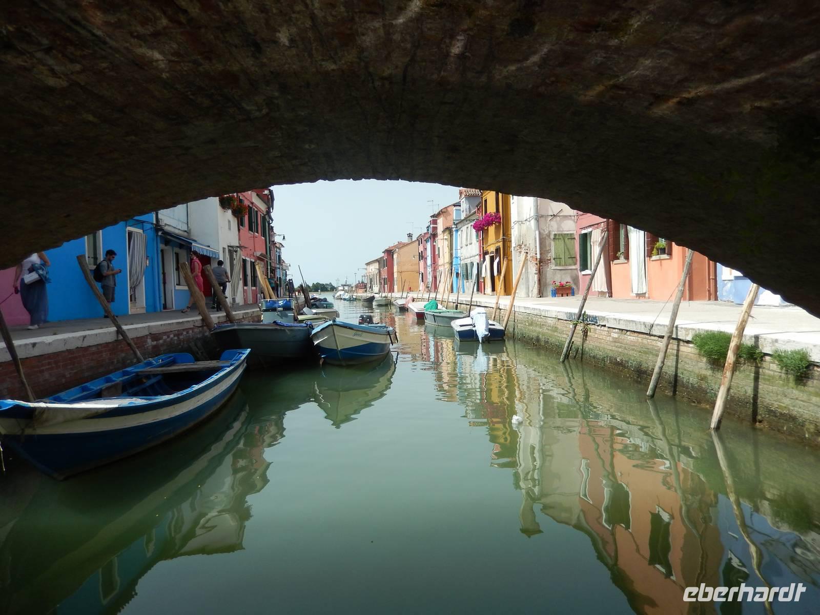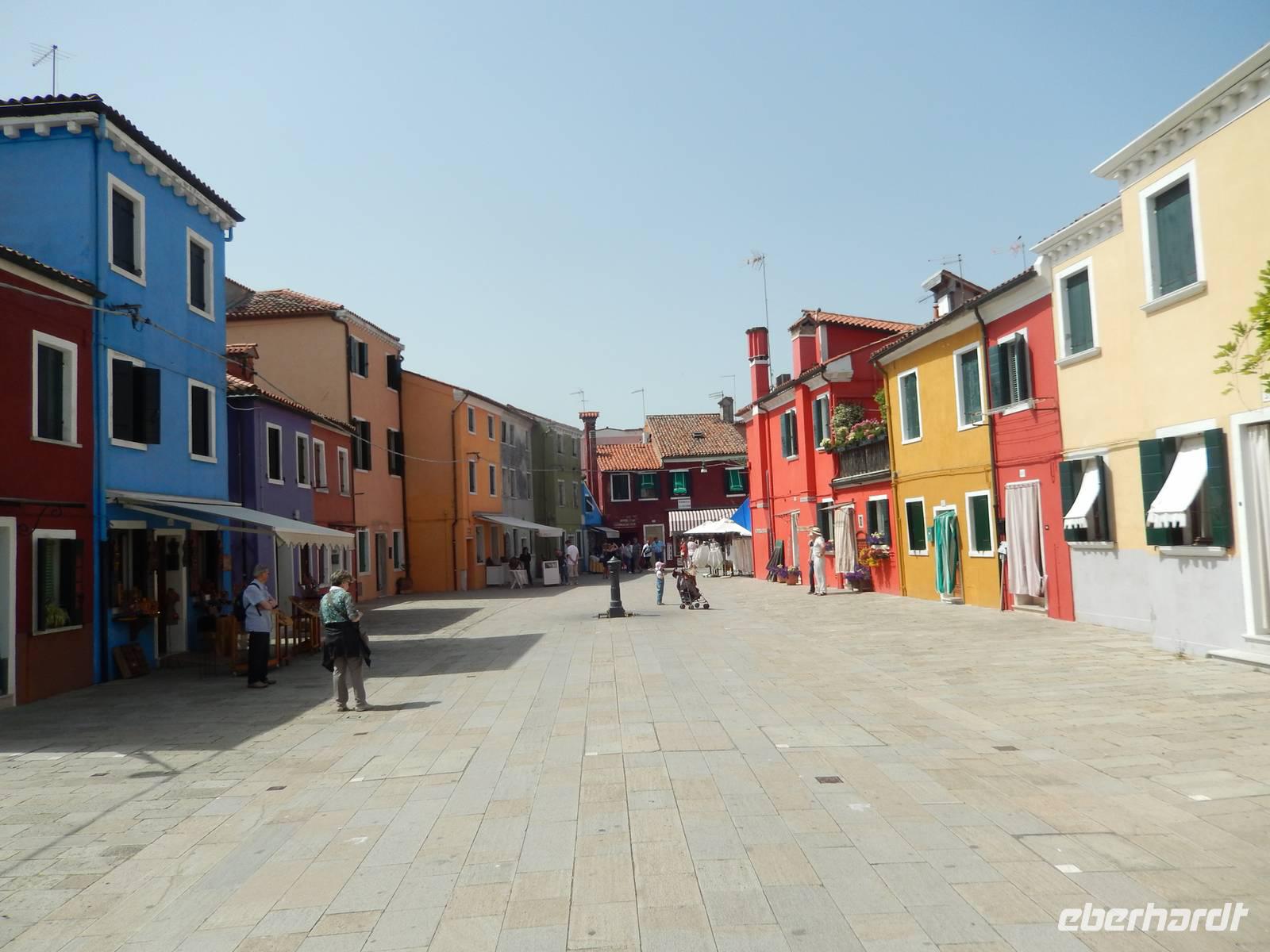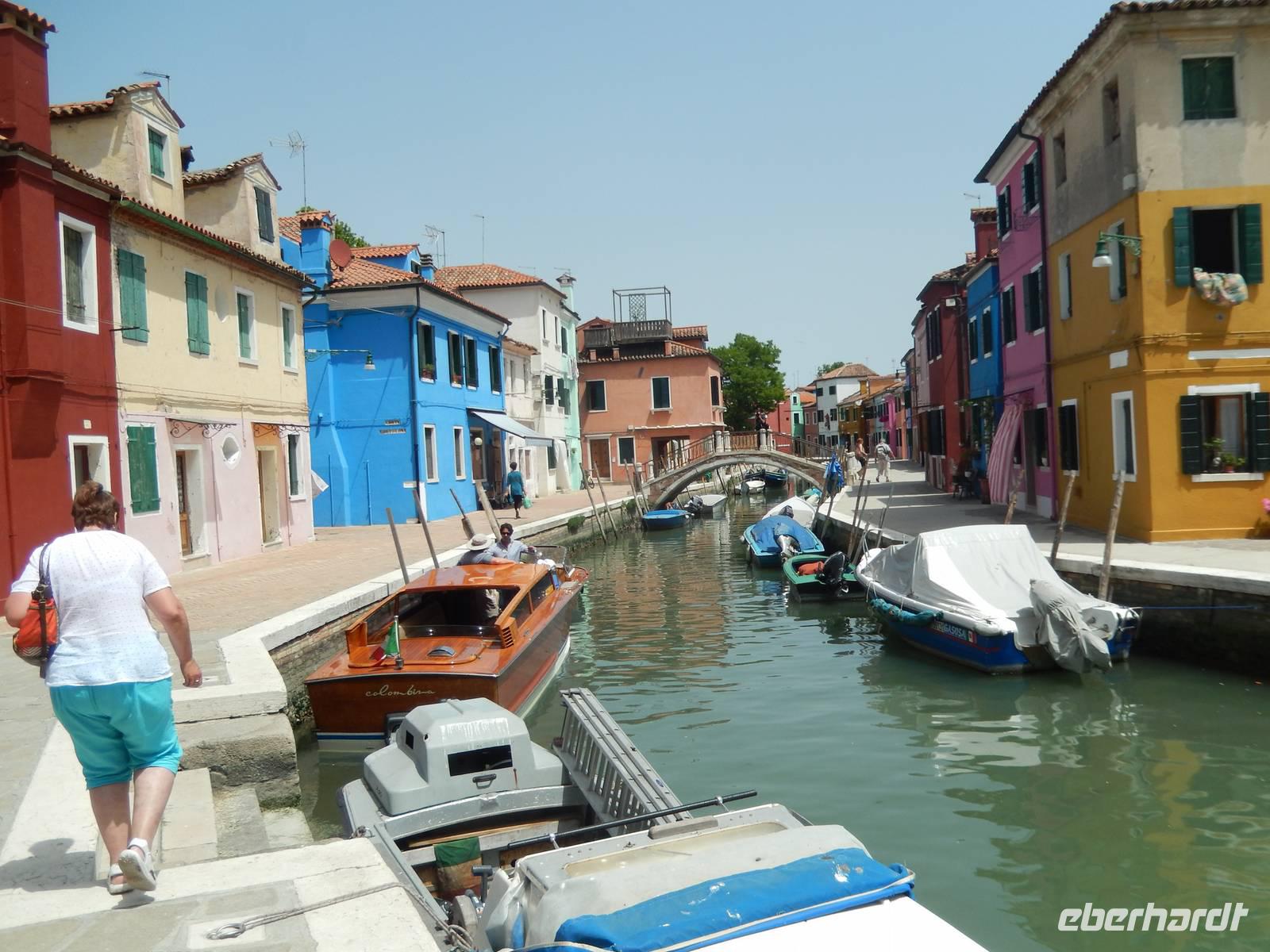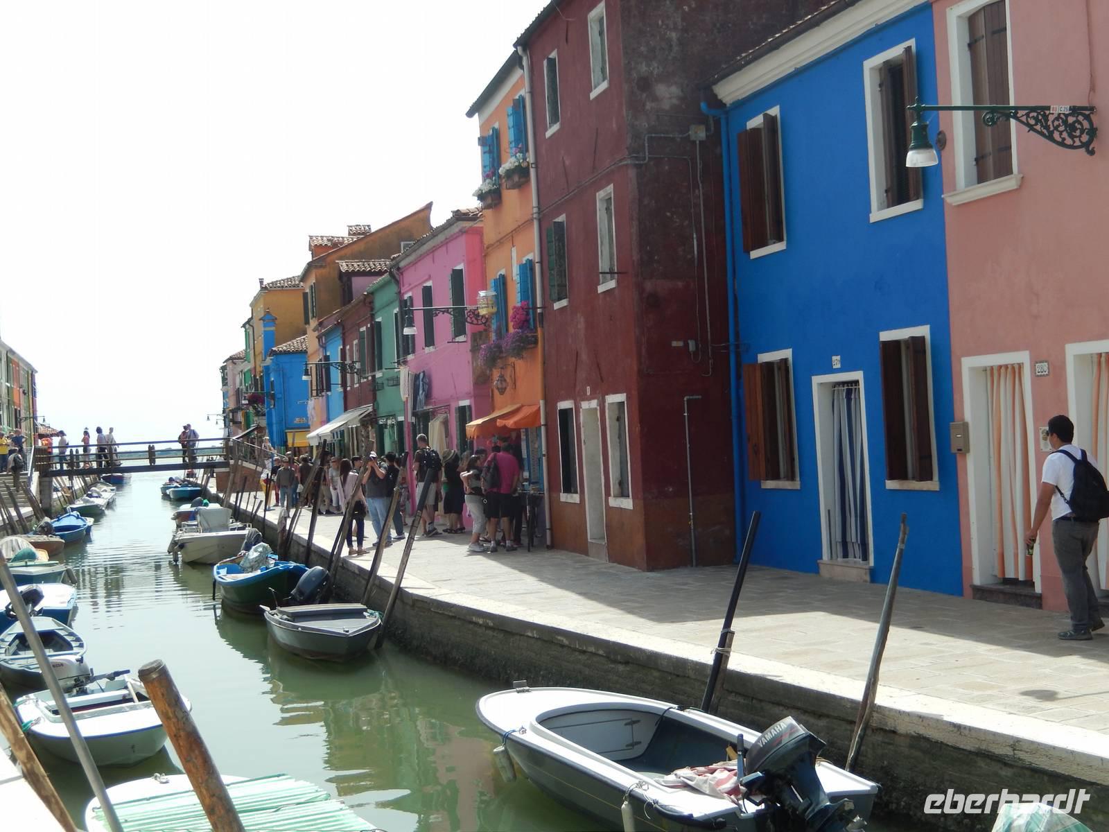 In nur zehn Minuten, also fast vor dem erfolgreichen Hinsetzen auf den Bootsbänken, trafen wir am Hafen von Burano ein. Dieser war übervoll, aber über zwei andere Boote hinweg kamen wir sicher an Land.