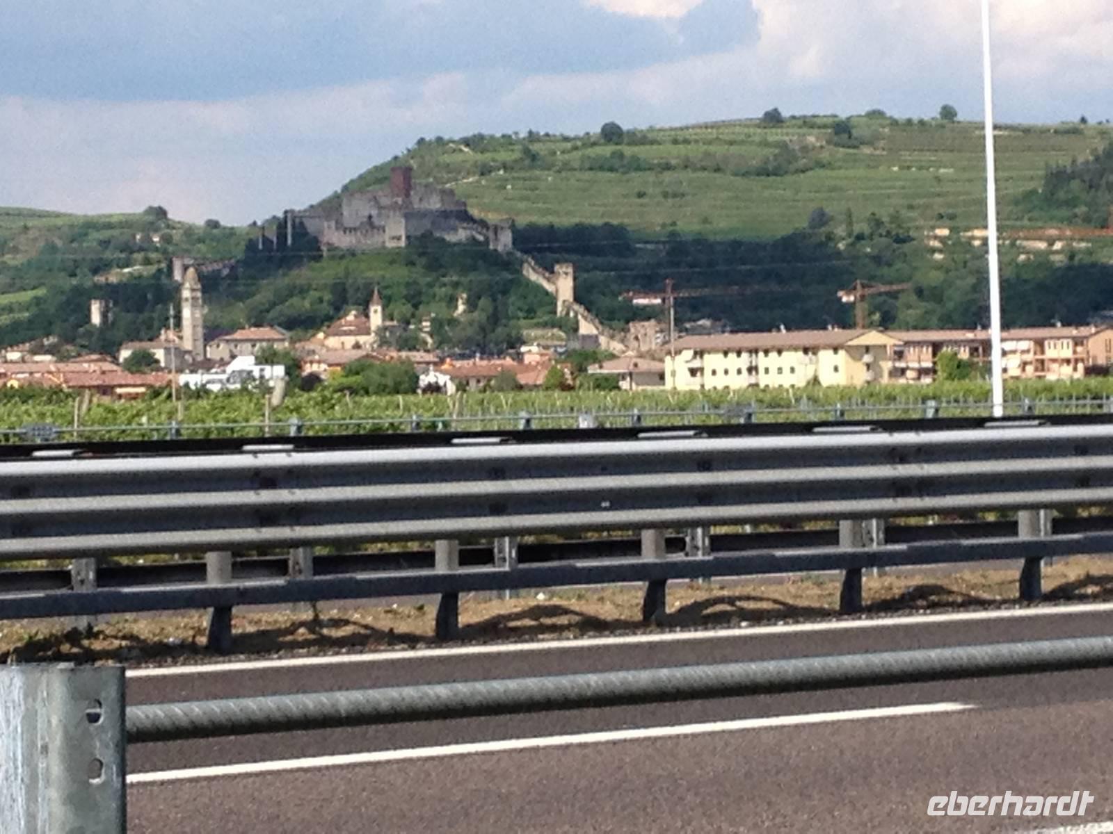 Am späten Nachmittag stoppte André noch einmal direkt gegenüber der Burg Soave, die majestätisch am Hang neben uns lag, ehe es die letzten Kilometer an Venedig vorbei nach Lido di Jesolo weiterging, wo wir schließlich gegen 18:30 Uhr unser Hotel Rosanna direkt am Strand erreichten.