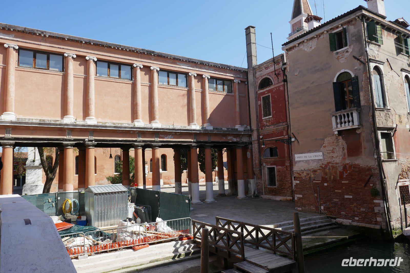 In den über 1500 Jahren seit ihrer Gründung hat die Lagunenstadt Prachtvolles hervorgebracht und war sicherlich auch Wegbereiter in die Moderne. Glas, Bankwesen u. die doppelte Buchführung eroberten von hier aus die ganze Welt. Nach dem Frühstück wollten wir nun die Venezianische Lebensart genießen und eintauchen in die Moderne Venedigs und dabei Orte abseits des Tourismus entdecken. Schon vorab gesagt - mit unserer Stadtführerin Alessia gelang dieses Experiment in wunderbarer Weise. Entlang versteckter Straßen und Plätze machten wir uns auf ins größte Stadtviertel von Venedig - Castello. Schon der Name Castello, also Schloss, zeugt von der einstigen Bedeutung dieses Viertels. Hier war im 9. Jahrhundert ein bedeutendes religiöses Zentrum, wie schon die zahlreichen Kirchen vermuten lassen. Aber auch das dortige Arsenal aus dem 12. Jahrhundert bestätigt diese These.