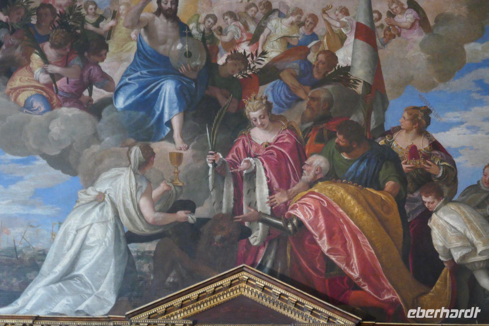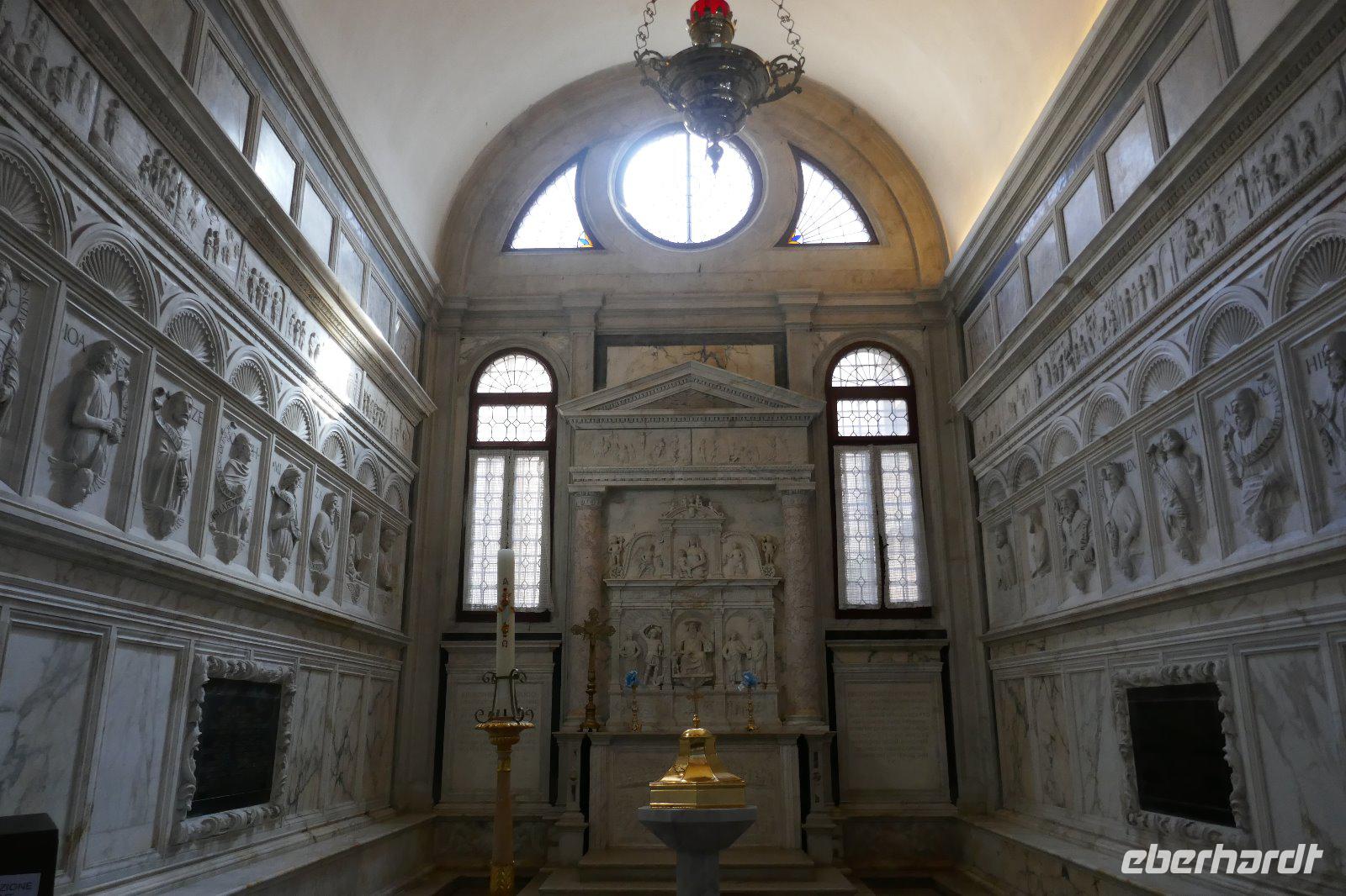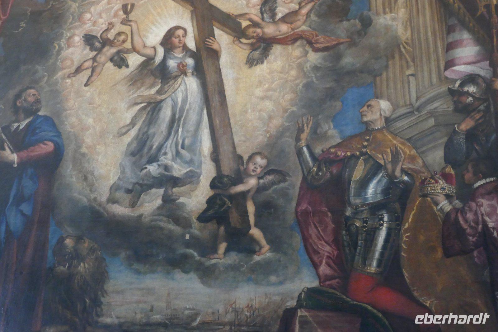Ausgestattet ist sie mit zahlreiche Kunstwerke und Malereien von Giovanni Bellini, Vivarini, Bassano, Piazzetta, Jacopo Tintoretto und anderen berühmten Kunstmalern. Allein 27 Dogen wählten diese Kirche als ihren letzten Ruhesitz - nicht ohne Hintergedanken - man erhoffte sich durch die Fürbitten enthaltsamer Klosterbrüder, die nach mittelalterlichen Sicht einen höheren Stellenwert hatten als anderer Kongregationen - eher in den Himmel zu kommen.