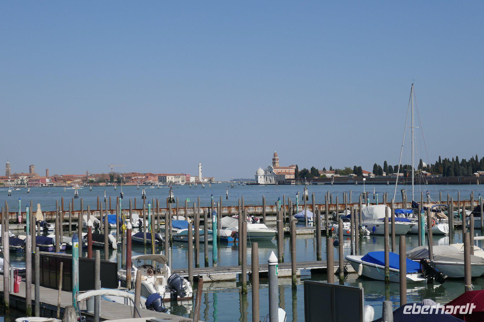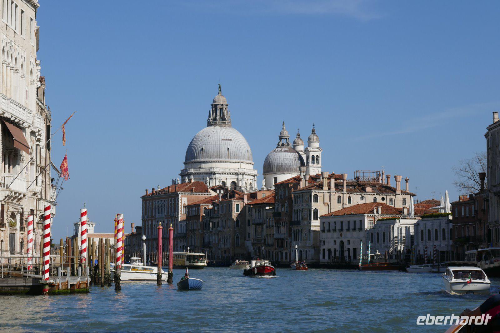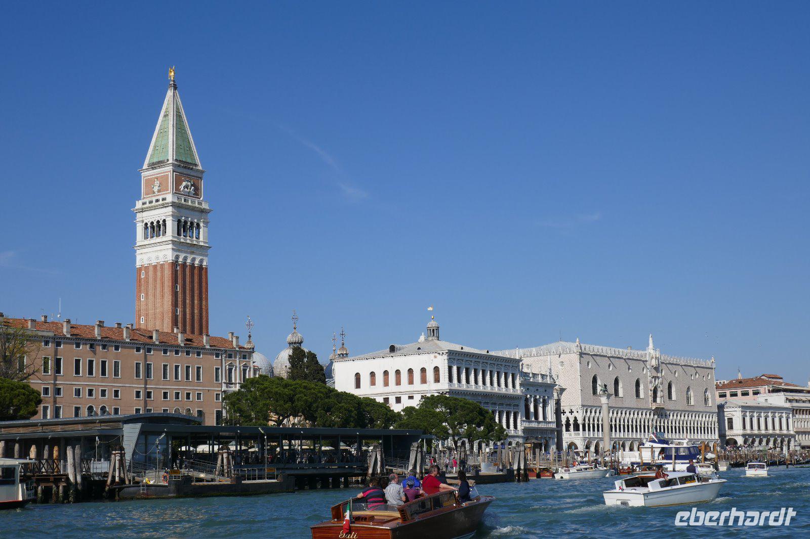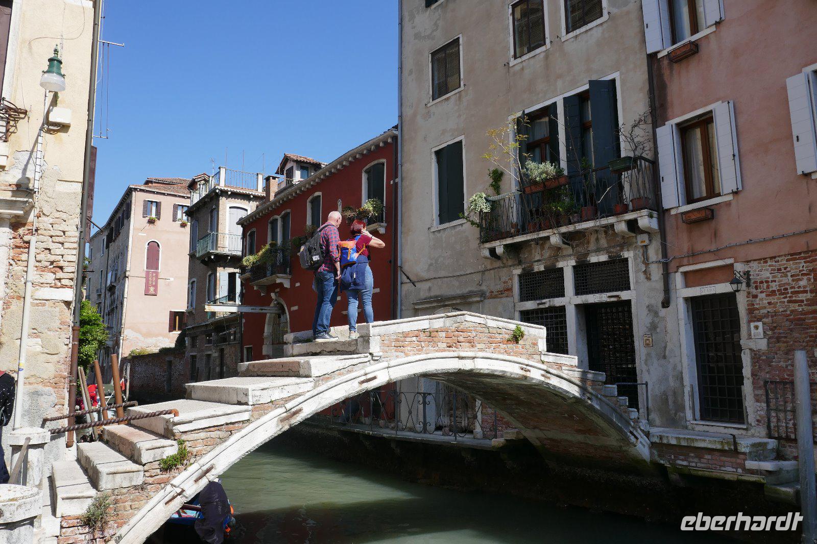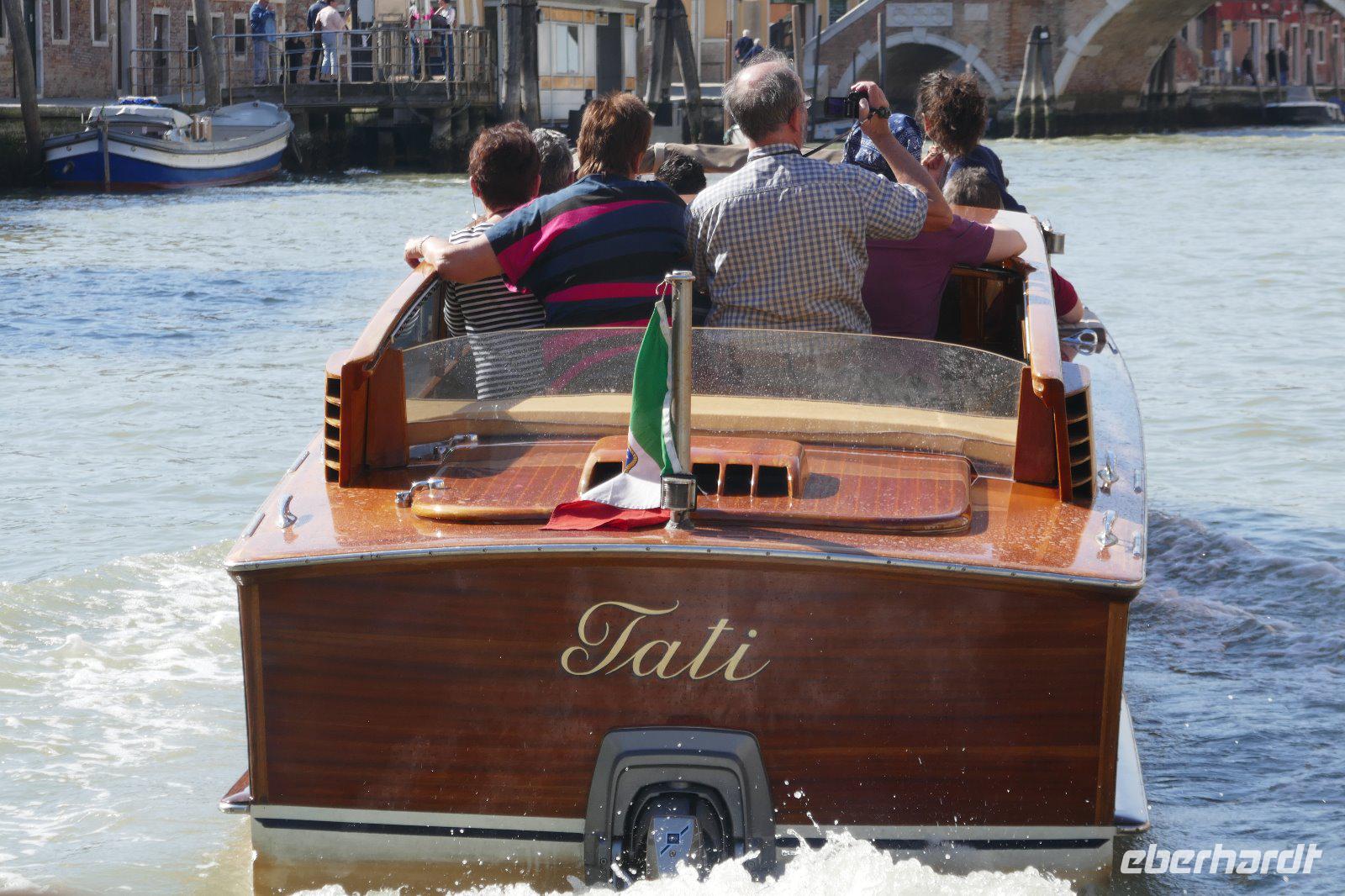 Auch die Eberhardtgruppe wollte die verwinkelten Kanäle entdecken, die morgens sanft im Nebel liegen und abends im weichen Licht der Abendsonne fast wie Juwelen erscheinen. Also ab zum Flughafen, wo sich die Gruppe traf. Mit einem malerischen Blick über die Alpen erfolgte direkter Anflug auf Venedig. Wer auf der richtigen Seite saß, konnte schon beim Anflug das Wahrzeichen der Stadt den Markusplatz mit seiner Kathedrale, Dogenpalast und Campanile erkennen. Mit dem Boottaxi in Richtung Lagunenstadt - erst mit Speed u. dann geruhsam einen ersten Eindruck von Häusern u. Kanälen bis zum Hotel erleben. Zimmer bezogen und dann bis zum Abendessen einen ersten Spaziergang. La Familia zum Abendessen erleben - die richtige Adresse war Patrizia - in ihrem Haus erlebten wir ein typisches venezianisches Abendessen in guter Atmosphäre. So klang der erste Tag gut aus.