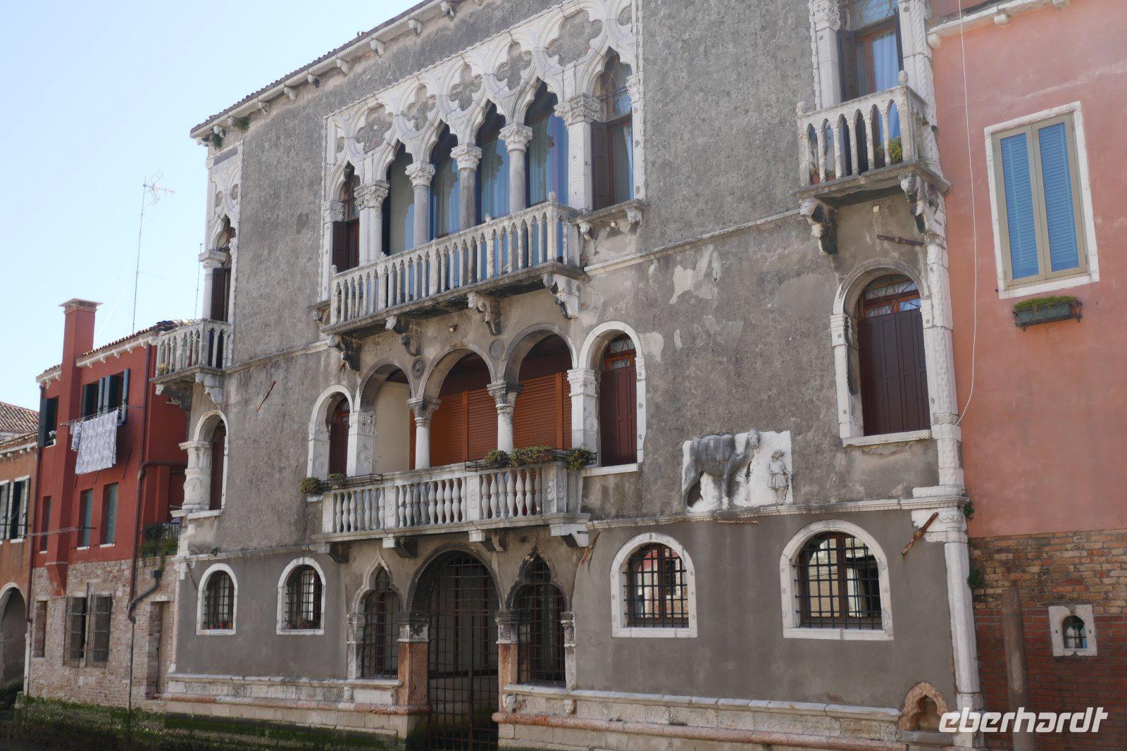 Einst von Wasser umgeben und in Holz errichtet, sollte er noch einige Veränderungen aus Stein erfahren, bis er die heutige Gestalt hatte. Als Architektur zwischen Orient und Okzident war er Sinnbild des politischen Machtzentrums des Stadtstaates. Der Palast scheint sinnbildhaft die Situation der ganzen Stadt widerzuspiegeln. Oben kubisch geschlossen, wird dieser von zerbrechlich wirkenden Säulen getragen. Ein Abbild einer Stadt, die gänzlich auf Pfählen ruht. Schon Franz Grillparzer hat dies in seinen Tagebuchaufzeichnungen so vermerkt.