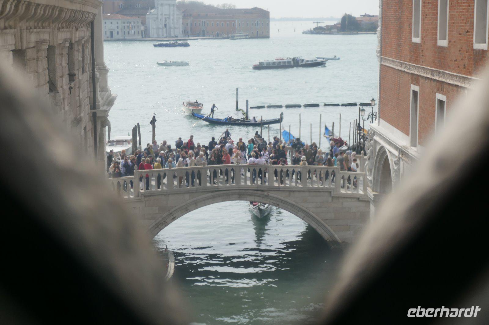 Frühstücken bei Italienern ist eher spartanisch. Man betritt schnell eine Bar. Bei einer raschen aber herzlichen Begrüßung wird die Bestellung aufgegeben. Man bestellt, trinkt einen Caffe' mit einem Cornetto und führt noch schnell ein kurzes Gespräch, das am Ende oft pointiert endet. Man zahlt und verlässt den Raum ebenso lautstark wie man ihn betreten hat. Nicht so unsere Gruppe. Diese genoss wieder ein reichhaltiges Frühstück im Hotel. Anschließend machten wir uns auf zum Dogenpalast.