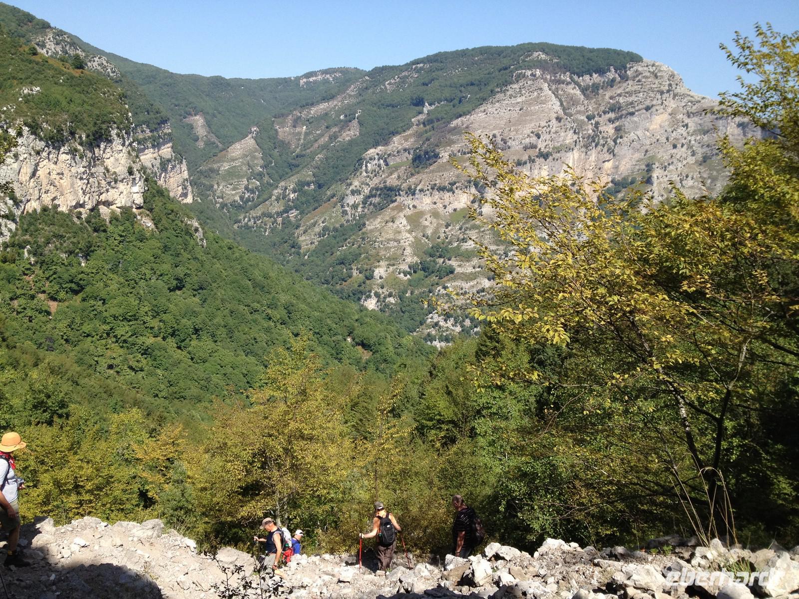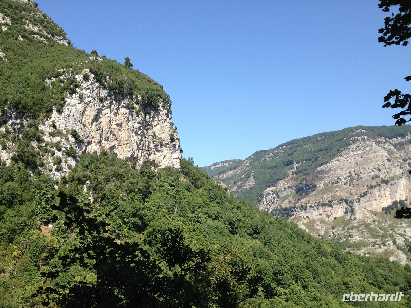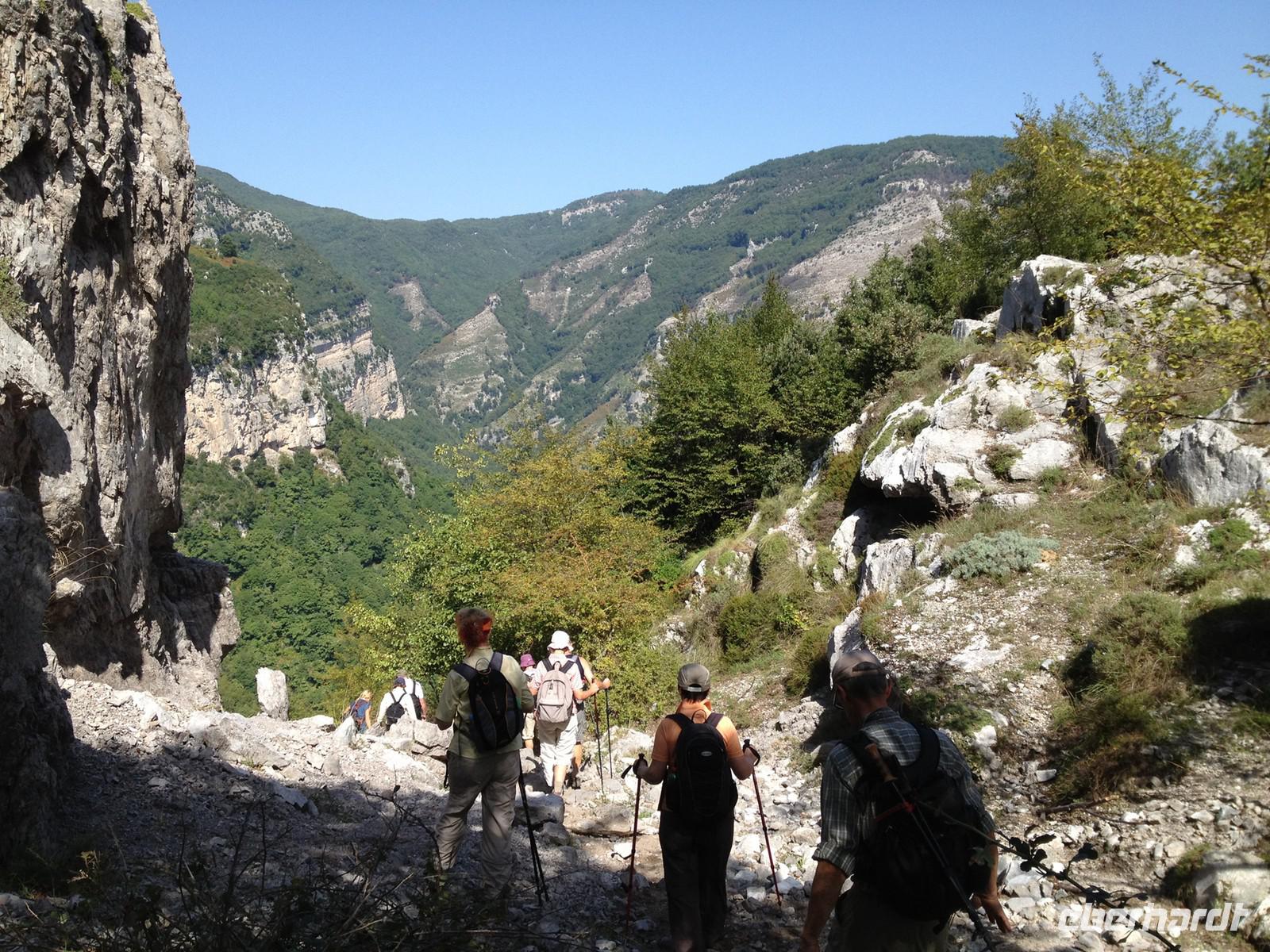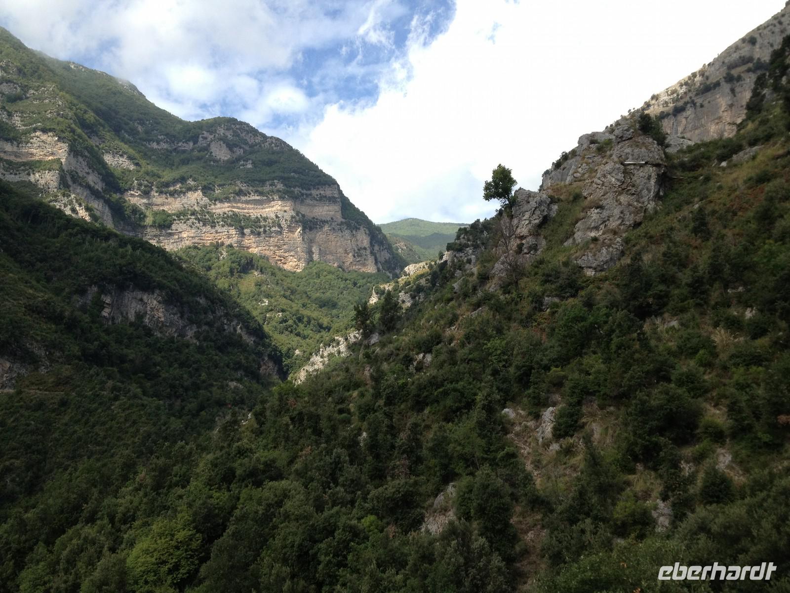 Kaum zu glaube, dass das winzige, malerische Amalfi einst das Zentrum einer alten und mächtigen Mittelmeerrepublik Italiens war. Im 9. Jahrhundert dominierte dieser kleine Hafen den Handel mit dem Orient, was den maurischen Einfluss auf den Dom Sant'Andrea erklärt. Zunächst schlenderten wir durch das Gewirr der Gässchen bis zum Dom. Anschließend verließen wir die von Touristen überfüllte Stadt und wanderten gemütlich in das Hinterland. Die Touristen wurden weniger, wir waren bald ganz allein. Im Schatten spendenden Wald des wild-romantischen Mühlentals wanderten wir vorbei an alten Papiermühlen. Jetzt waren wir in der freien Natur. Das kleine Flüsschen Canneto zeigte sich in seiner vollen Pracht und ein Wasserfall folgte dem anderen. Der Weg führte uns hoch zum Dorf Pontone, in dem wir die kleine Mittagspause einlegten. Über Minuta erreichten wir die Ortschaft Scala, die in einer Höhe von 360 Metern direkt gegenüber von Ravello liegt. Die Blütezeit des Ortes war im Mittelalter, als es noch ein Teil der mächtigen Seerepublik von Amalfi war. Aus Scala stammt Fra Gerardo Sasso, der um 1100 in Jerusalem den Johanniterorden zur Pflege kranker Kreuzfahrer und Reisender gründete. Aus ihm ging später der souveräne Malteserorden hervor. Auf dem kleinen Hauptplatz rasteten wir und unser Hotelier Stefano lies als kleine Entschädigung für die misslungenen Lunchpakete eine Runde selbstgebackenen Apfelkuchen springen.