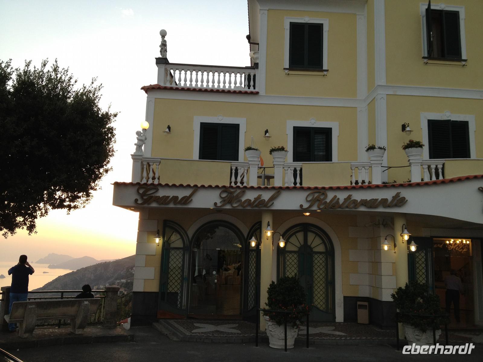 Der zuverlässige Haustür-Transfer-Service brachte alle Wanderfreunde zum Flughafen Berlin-Schönefeld. Gut gelaunt und voller Vorfreude auf eine tolle Wanderwoche checkten wir bei der easyJet ein und gaben unser Gepäck ab. Nach einer kleinen Stärkung im Marché-Restaurant verlief die Sicherheitskontrolle reibungslos und schon saßen wir im Flieger nach Bella Italia. Neapel (oder auch Napoli) war unser Ziel. In knapp zwei Stunden flogen wir in die süditalienische Hauptstadt der Region Kampanien. Vincenzo holte uns vom Flughafen ab und brachte uns zum Hotel hoch über der Amalfiküste. Schon die Fahrt vorbei am Monte Vesuvio, Pompeji und durch die Monti Lattari (die Milchberge) war ein tolles Erlebnis und die erste Begegnung mit dem italienischen Fahrstil. Im Hotel angekommen, begrüßte uns Stefano, der Hotelchef, im typisch neapolitanischen Temperament. Wir bezogen die Zimmer und bekamen noch ein tolles Abendmenü serviert, bevor wir ins Bett fielen und auf den ersten „Wandertag" gespant waren.