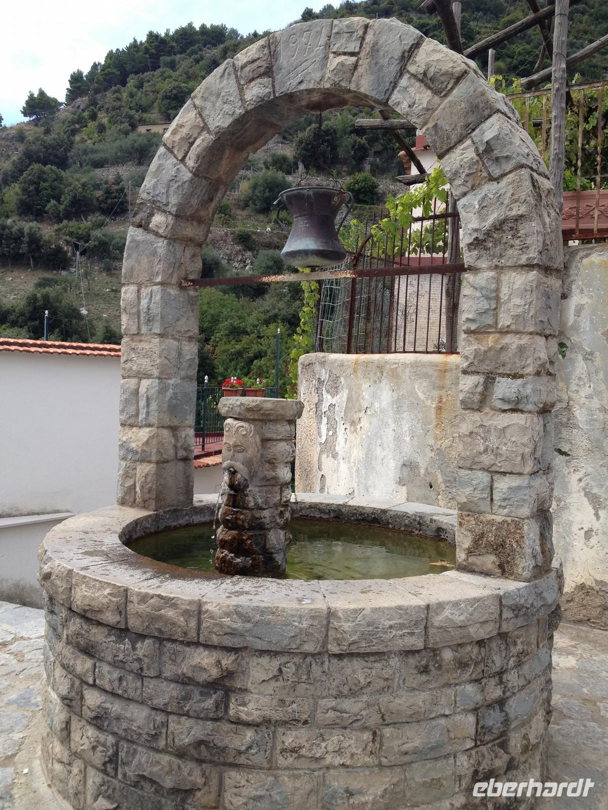 Die heutige Wanderung führte uns auf DEM Wanderweg der Amalfiküste schlechthin entlang. Mit dem Bus fuhren wir nur wenige Minuten von unserem Hotel bis zum Dorf Bomerano. Auf dem Hauptplatz füllten wir unsere Wasserflaschen mit gutem Quellwasser auf und starteten unsere Wanderung. Zu Beginn positionierten wir uns alle für das erste gemeinsame Gruppenfoto.