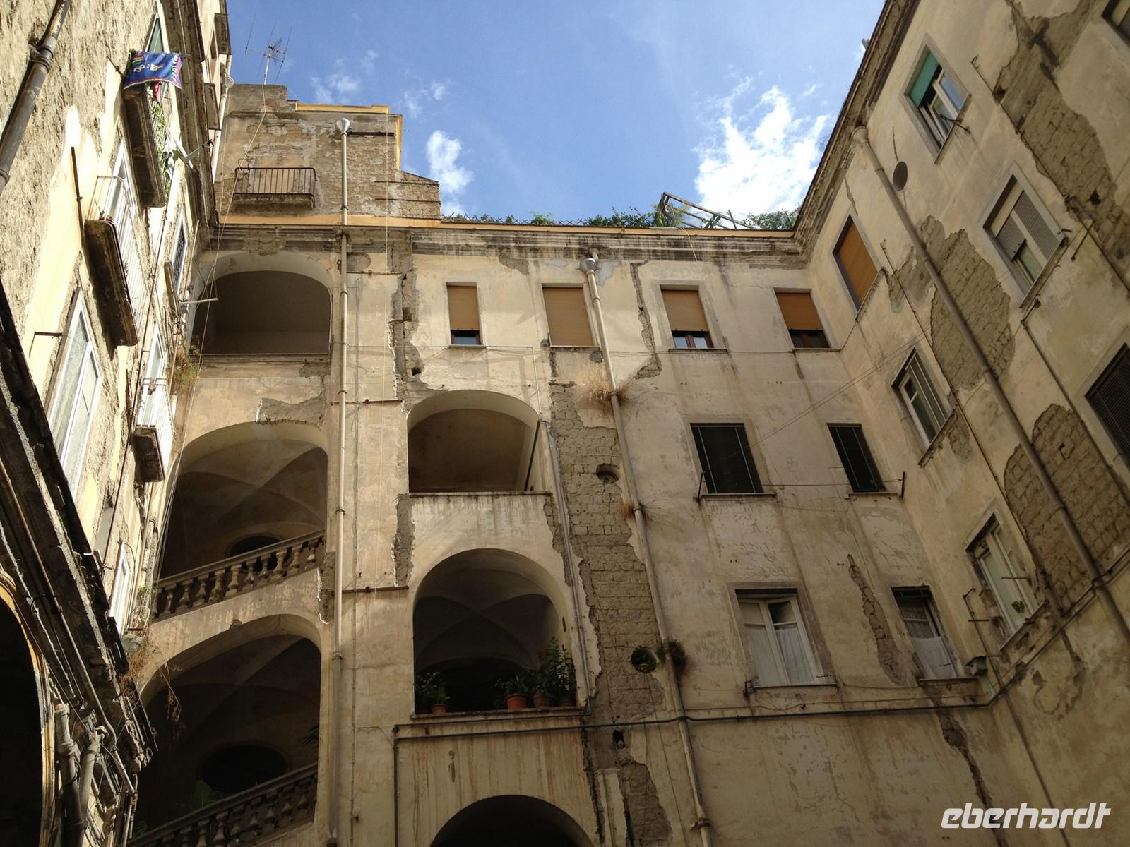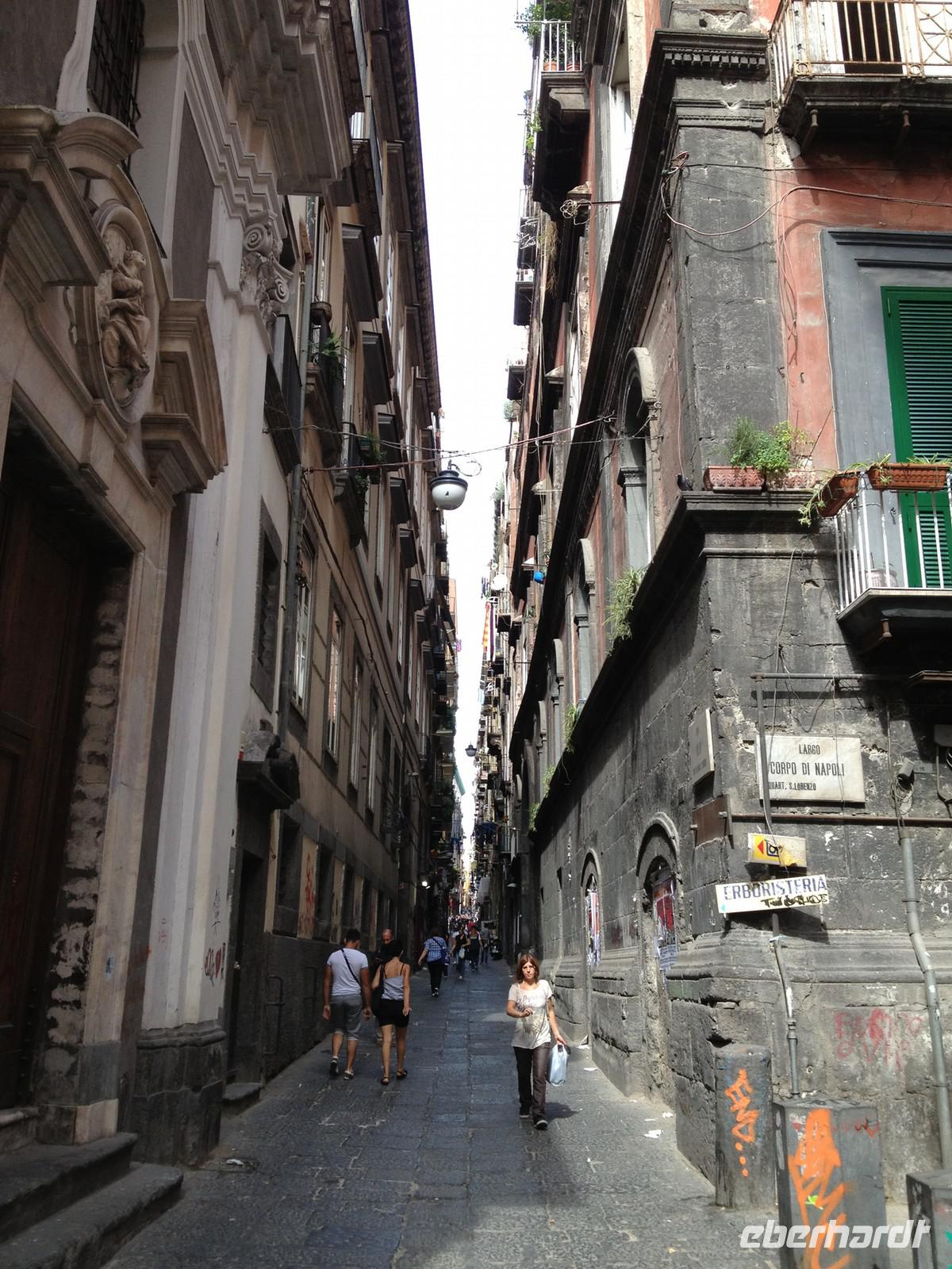 Den letzten Tag auf italienischem Boden verbrachten wir in der Metropole Neapel. Durch die Medien hat Napoli einen negativen Eindruck bei vielen Leuten. Doch Viktoria überzeugte uns vom Gegenteil. Neapel „sehen und sterben" zu wollen, scheint für alle, die noch nicht da waren, zumindest leicht übertrieben. Aber wenngleich die Stadt unter dem mächtigen Monte Vesuvio von ihrem früheren Glanz etwas verlor, heute gegen den Verfall und sozialen Notstand kämpft, präsentierte sich uns die Millionenstadt in ihrem historischen Zentrum als Schönheit des Südens! Als ein „Paradies bewohnt von Teufeln" wurde die einst größte Stadt Europas von den Einwohnern der Toskana bezeichnet.