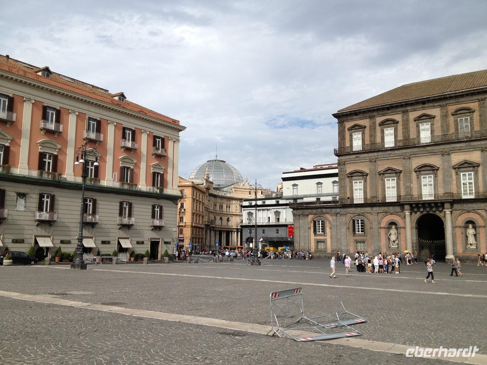 Nach einem sehr interessanten Rundgang im monumentalen Zentrum gönnten wir uns auf der Piazza vor der Chiesa del Gesu Nuovo eine echte Pizza Margherita. Als Abschlussessen in Bella Italia ein Traum! Hier überreichte ich Viktoria im Namen der ganzen Wandergruppe das Geburtstagsgeschenk zum 40. Geburtstag. Wir bummelten anschließend noch etwas durch die Straßen und genehmigten uns in einem Jugendstilcafé in der Nähe des Teatro San Carlo einen leckeren Café alle noccialo (Espresso mit Mandelcréme). Einen weiteren Einblick in die schöne Hafenstadt erhielten wir bei einer Rundfahrt bevor wir unsere liebe Viktoria am Hafen verabschiedeten und zum Flughafen fuhren. Gegen 23 Uhr waren wir wieder in Berlin und wurden von unseren Chauffeuren schon erwartet.