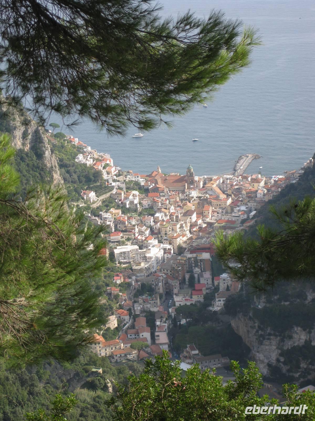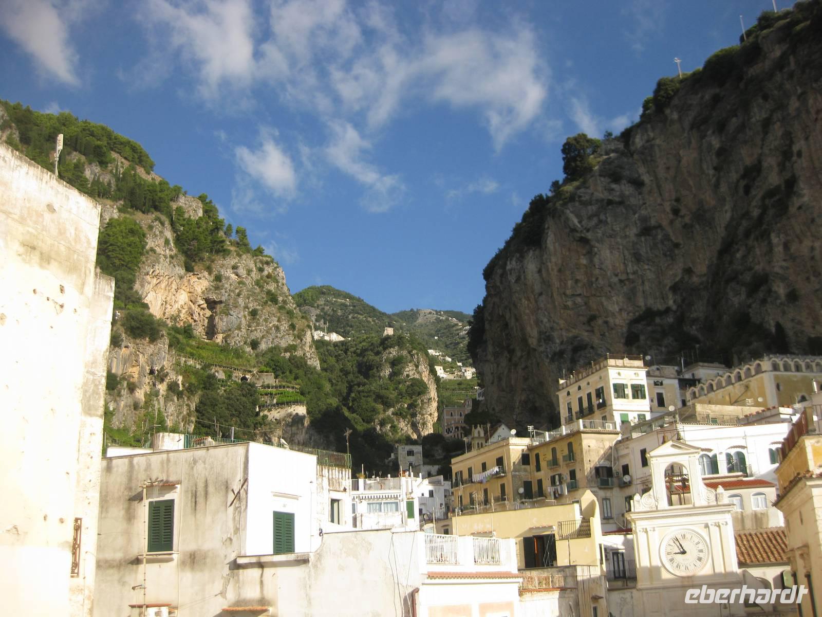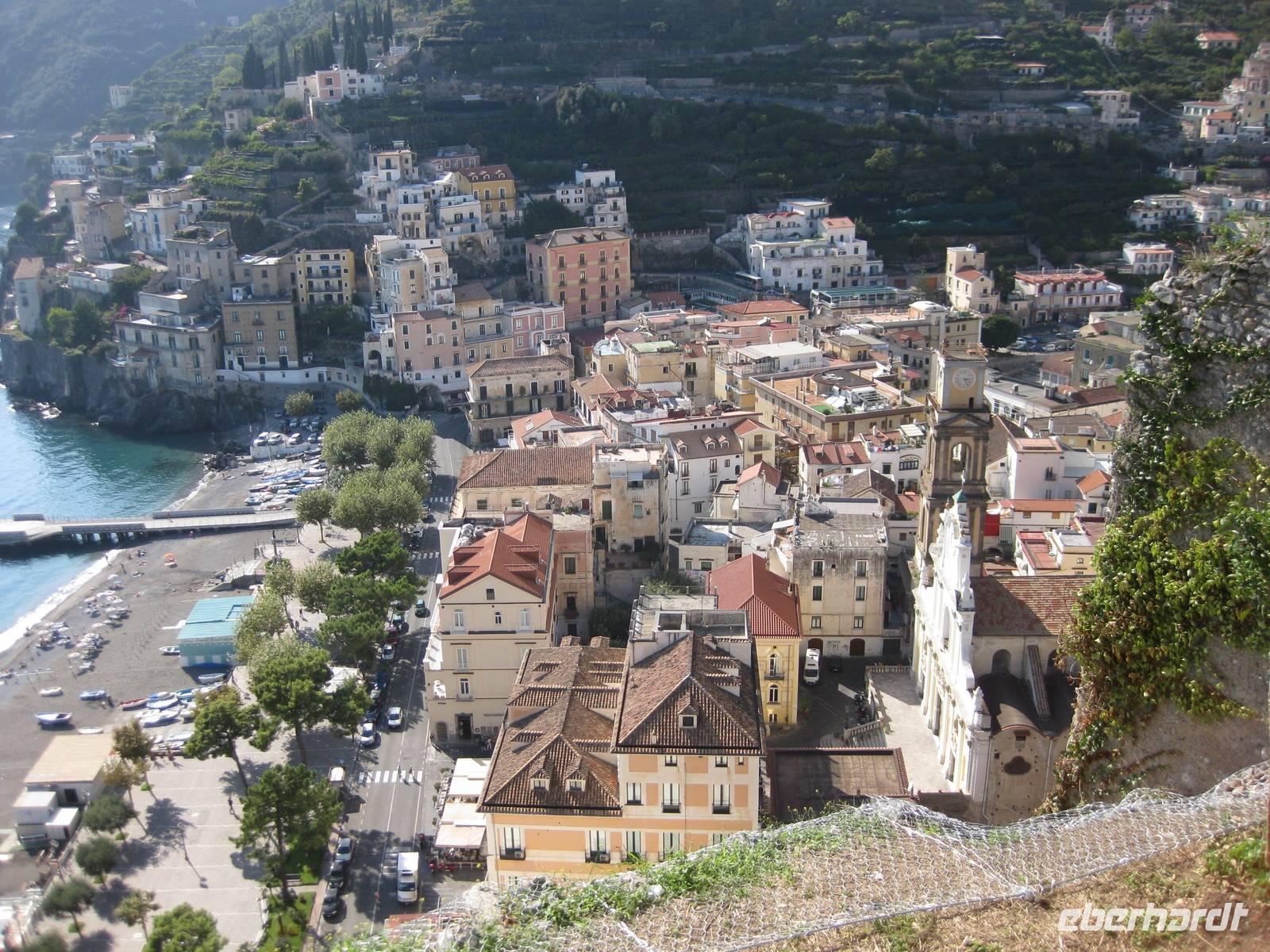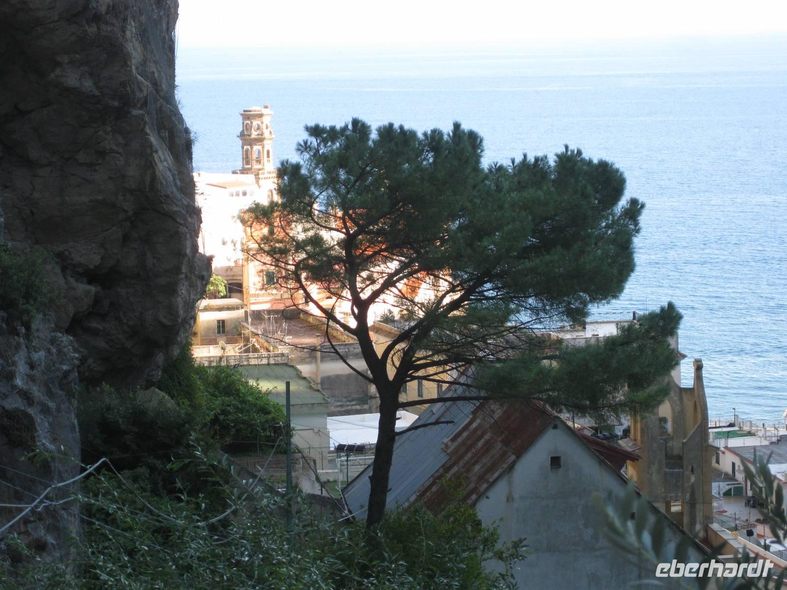 Nachdem wir ein Weilchen gerastet haben, nehmen wir den Abstieg nach Atrani, dem kleinsten Ort Italiens in Angriff. Der Abstieg ist gemäßigt. Am Nachmittag so gegen halb Fünf Uhr erreichen wir Atrani. Unser Bus holt uns ab und wir fahren zurück nach Minori.
