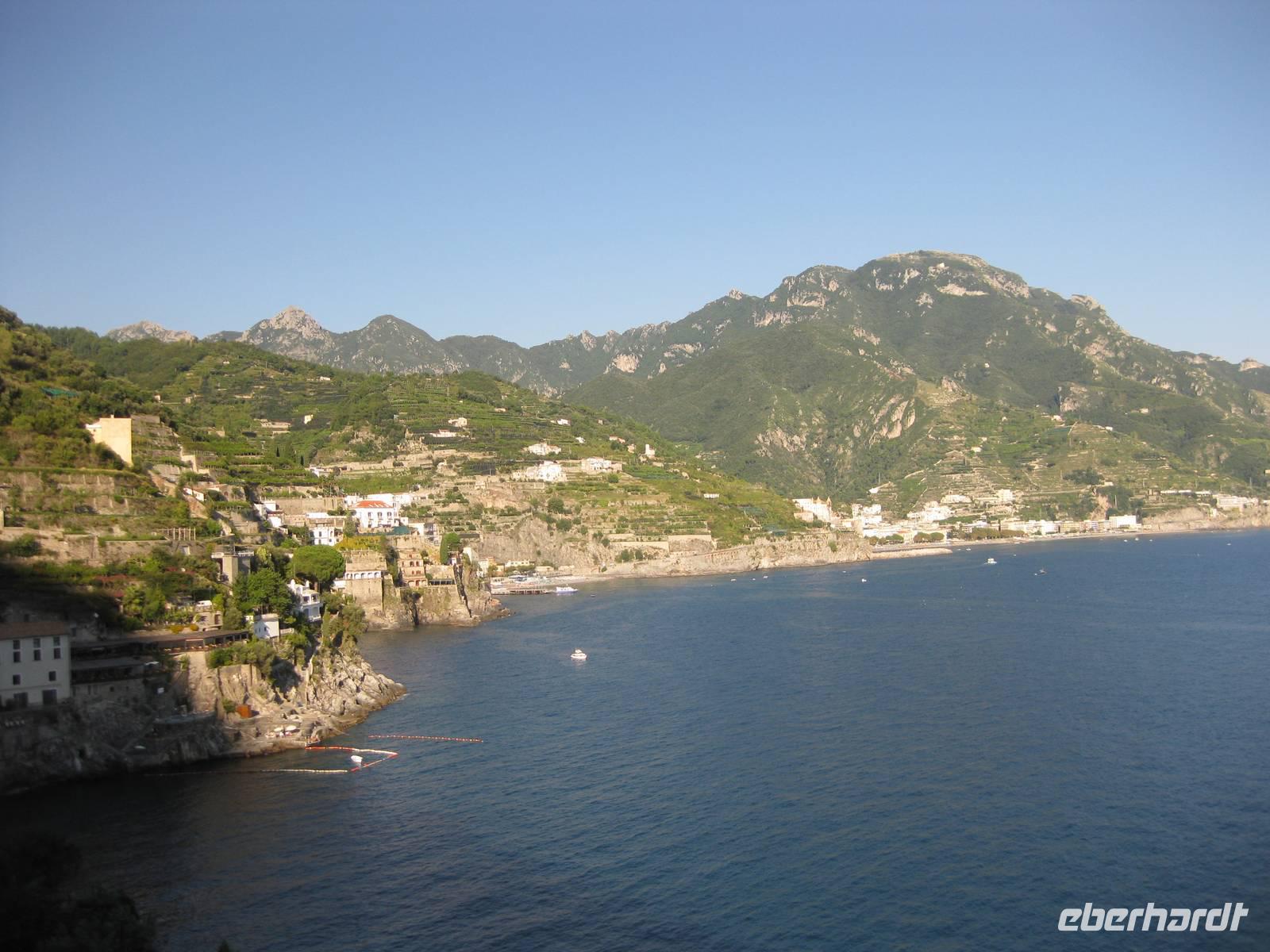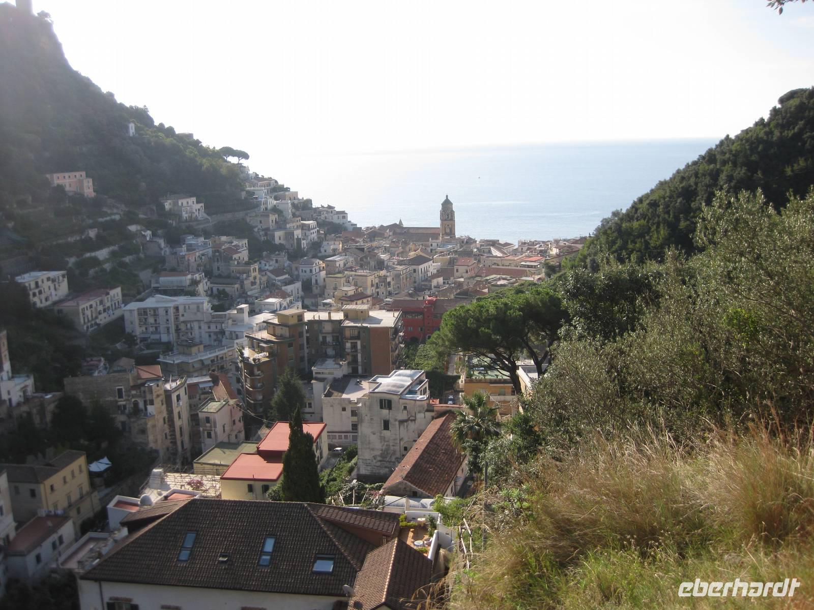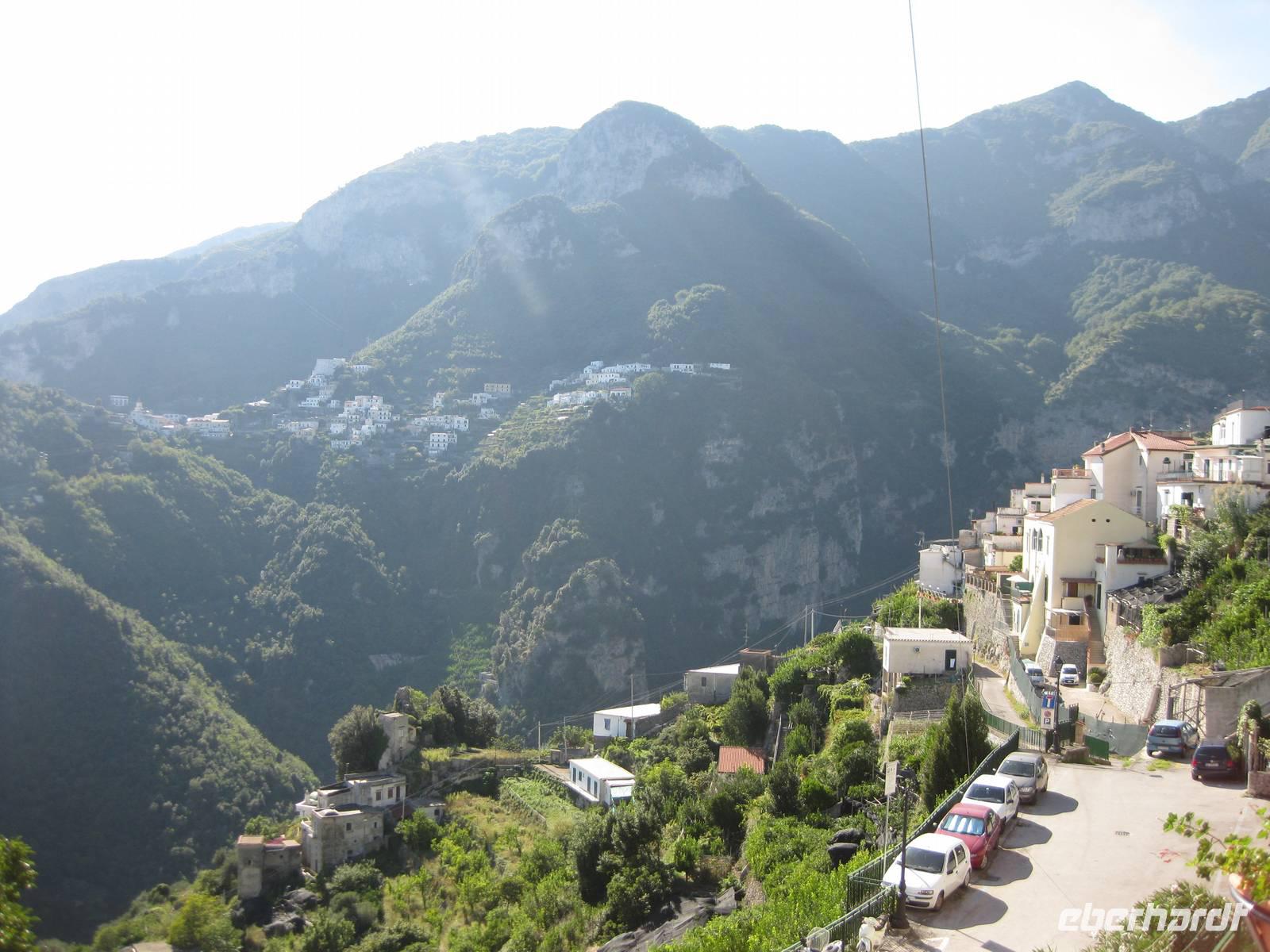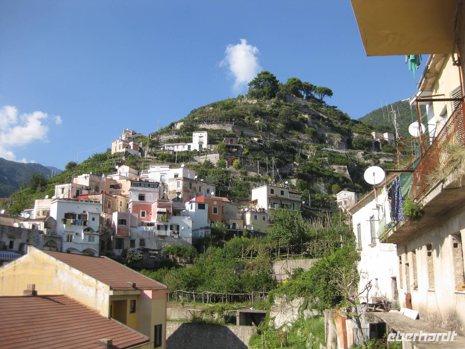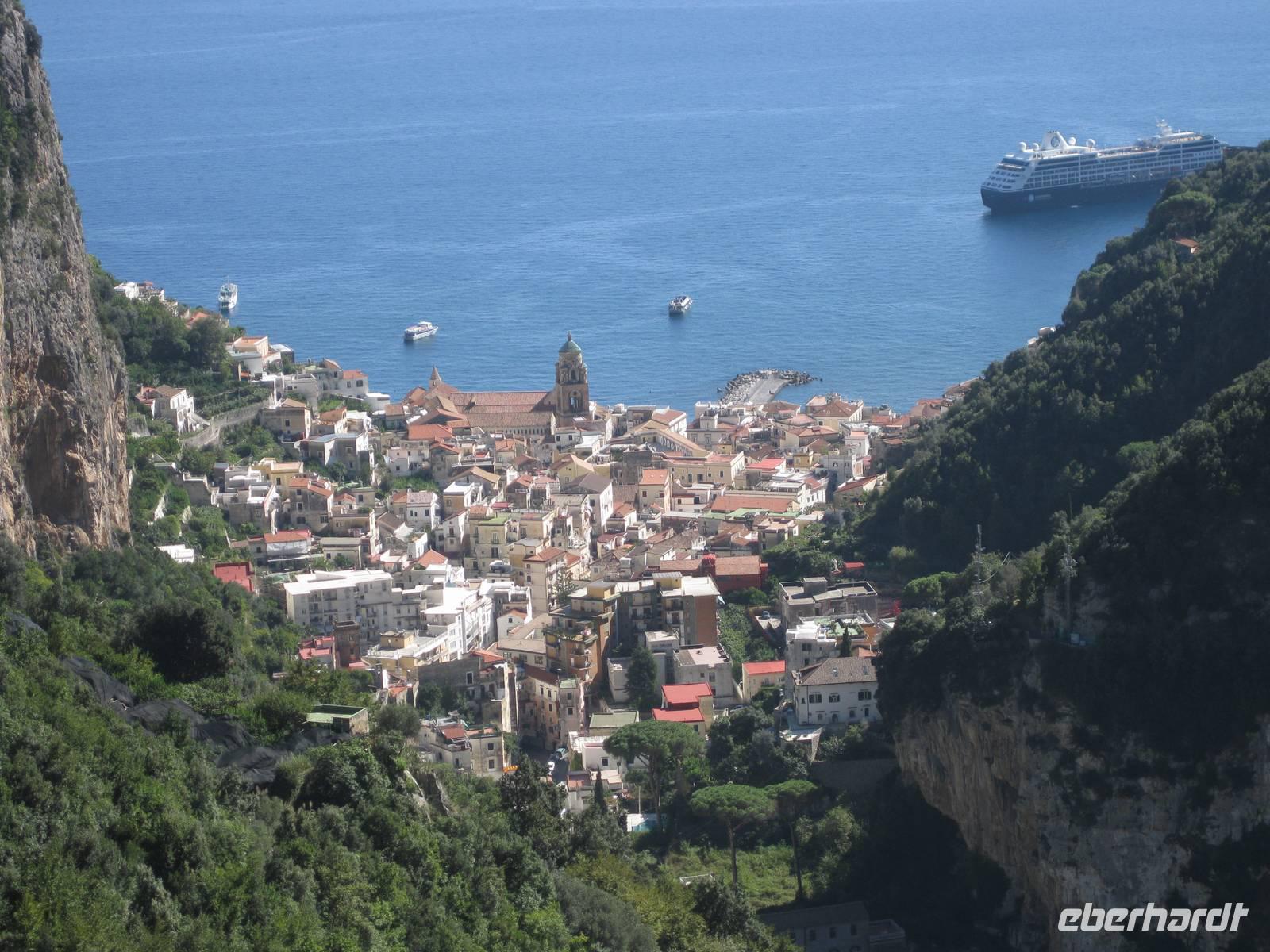 Nachdem wir ein Weilchen gerastet haben, nehmen wir den Abstieg nach Atrani, dem kleinsten Ort Italiens in Angriff. Der Abstieg ist gemäßigt. Am Nachmittag so gegen halb Fünf Uhr erreichen wir Atrani. Unser Bus holt uns ab und wir fahren zurück nach Minori.