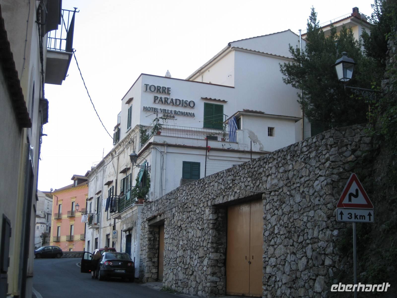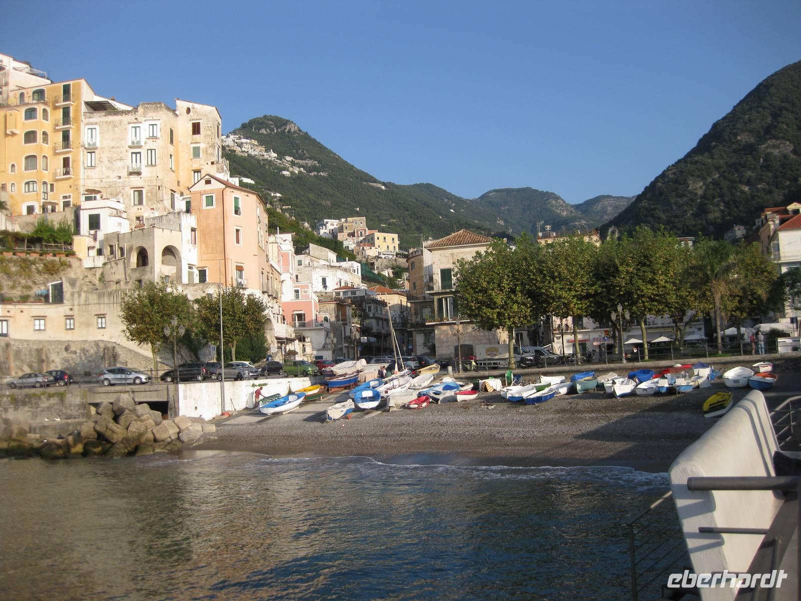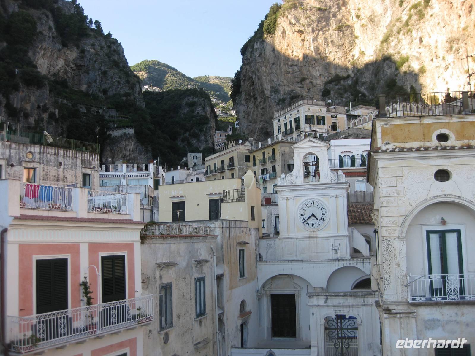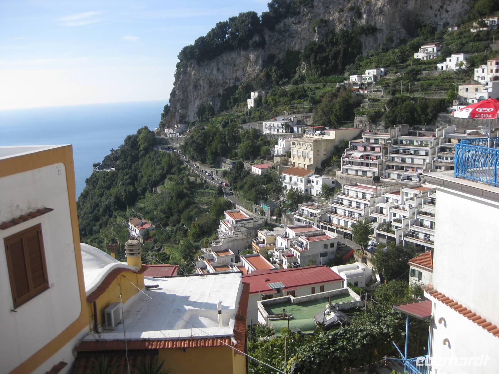Nachdem wir ein Weilchen gerastet haben, nehmen wir den Abstieg nach Atrani, dem kleinsten Ort Italiens in Angriff. Der Abstieg ist gemäßigt. Am Nachmittag so gegen halb Fünf Uhr erreichen wir Atrani. Unser Bus holt uns ab und wir fahren zurück nach Minori.