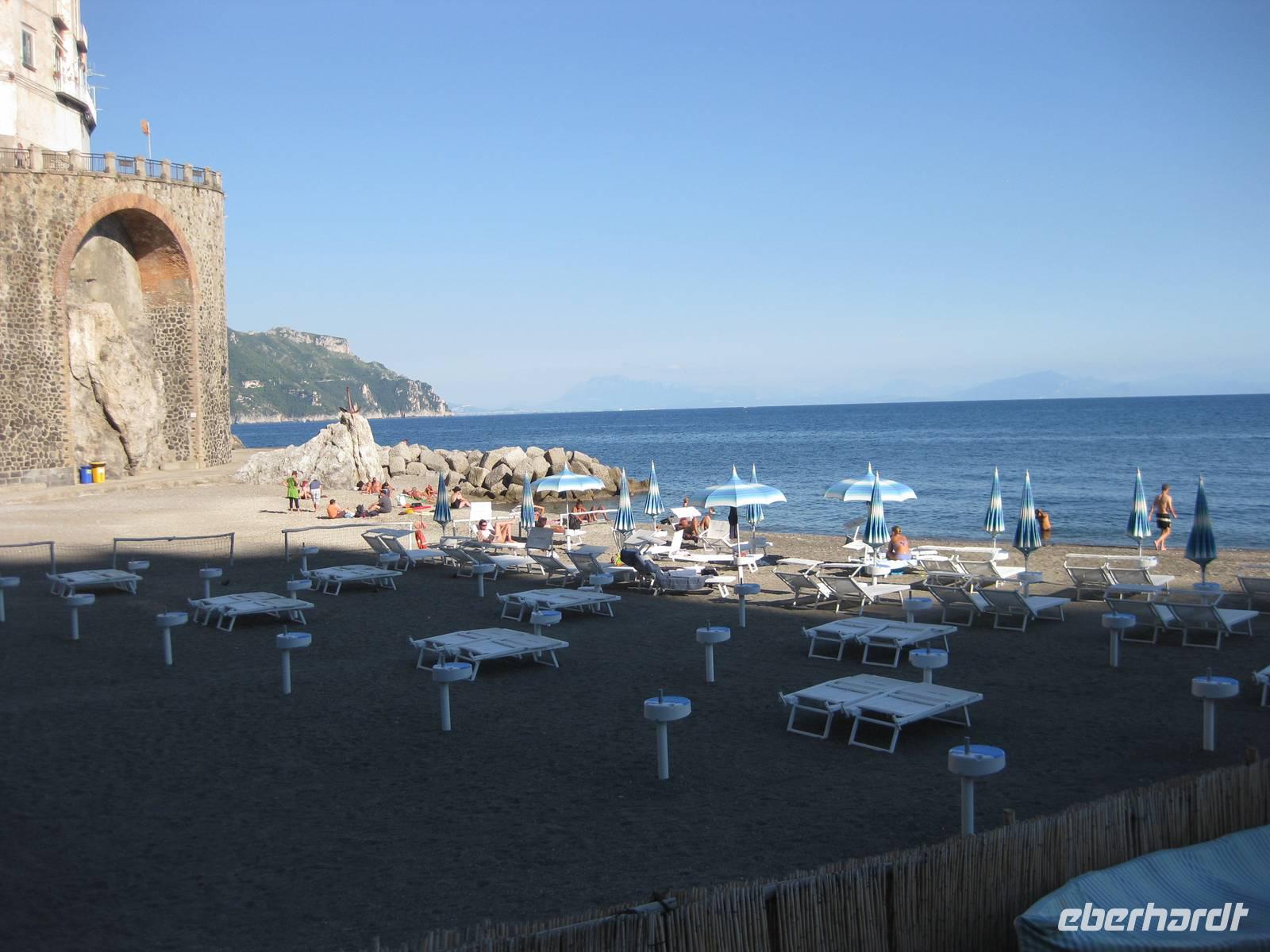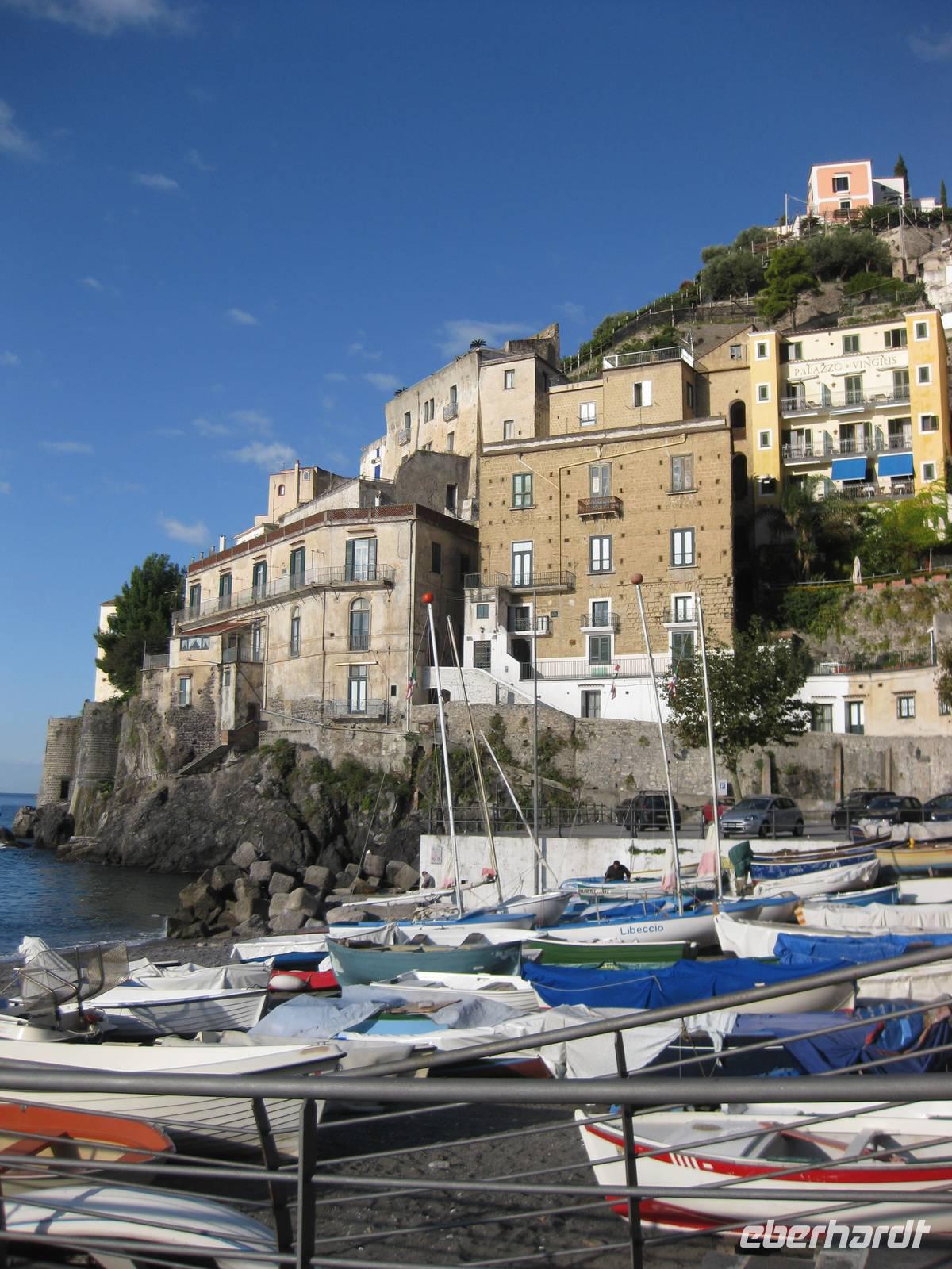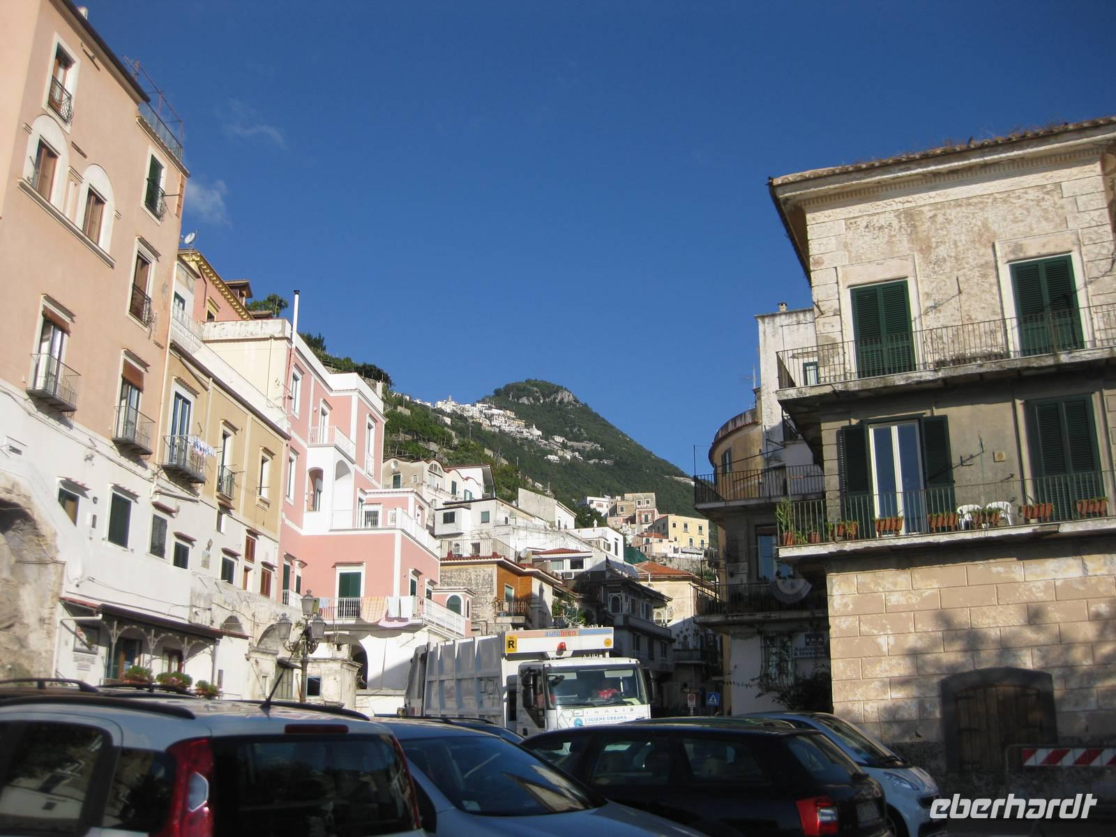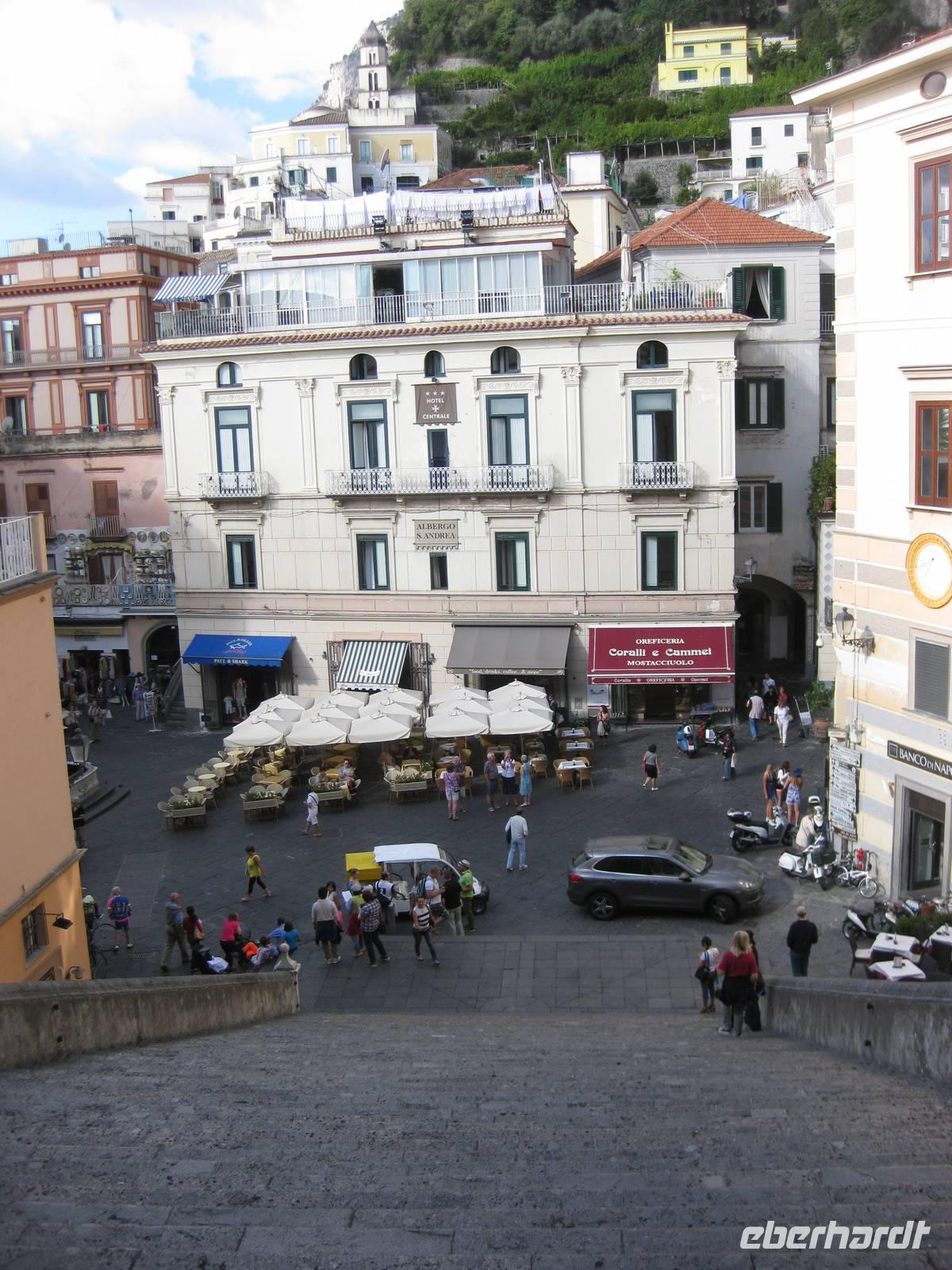 Nachdem wir ein Weilchen gerastet haben, nehmen wir den Abstieg nach Atrani, dem kleinsten Ort Italiens in Angriff. Der Abstieg ist gemäßigt. Am Nachmittag so gegen halb Fünf Uhr erreichen wir Atrani. Unser Bus holt uns ab und wir fahren zurück nach Minori.
