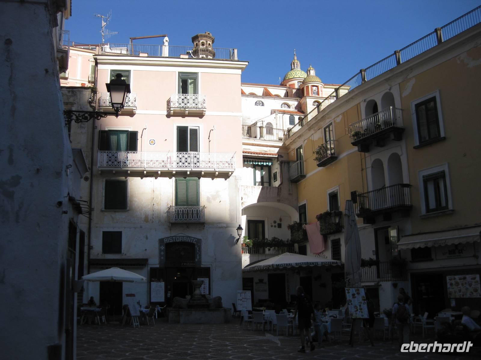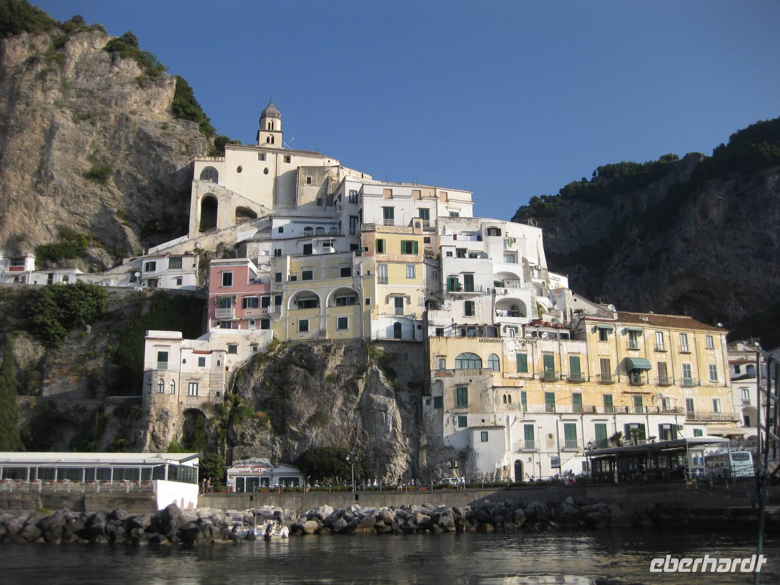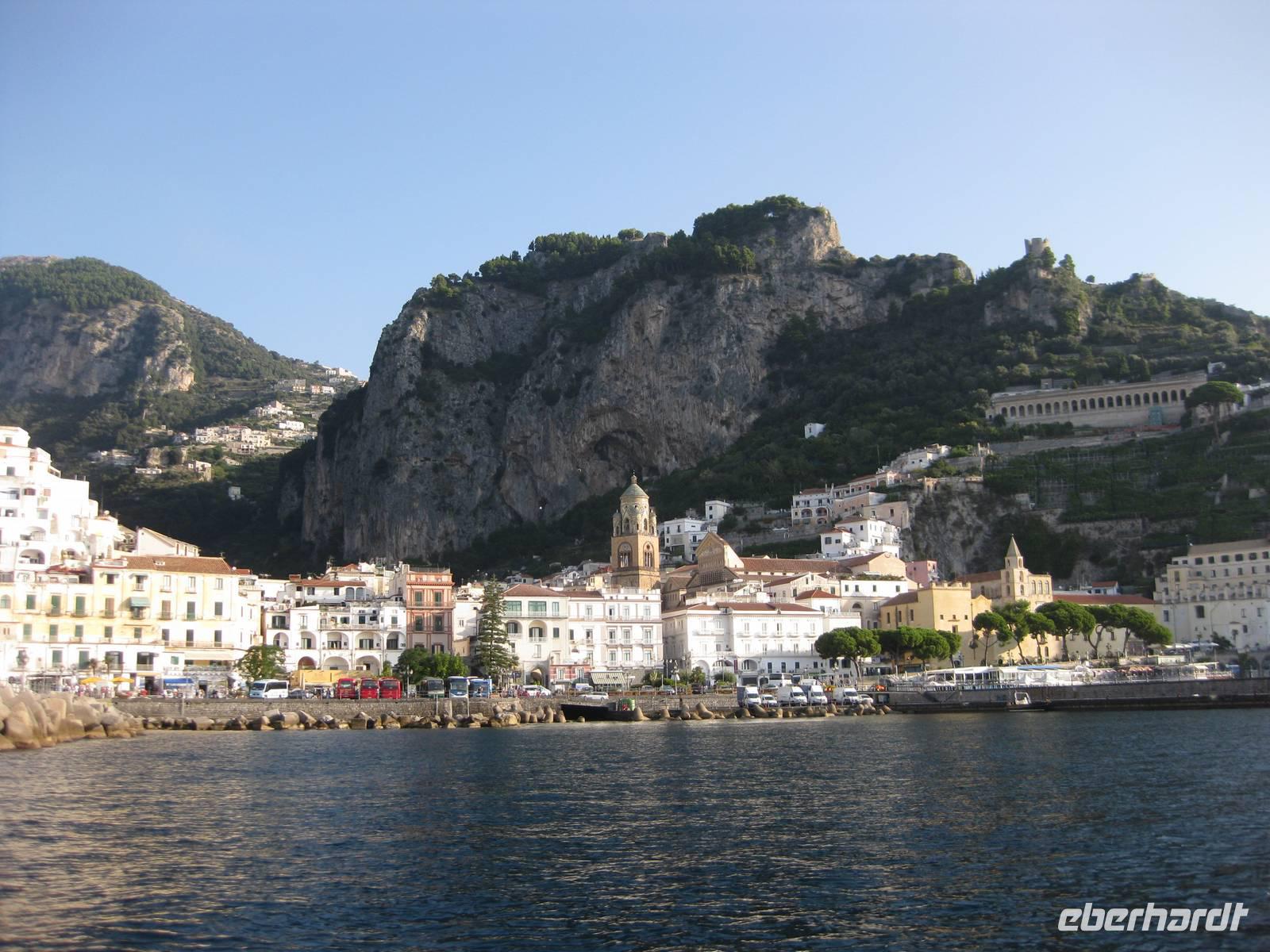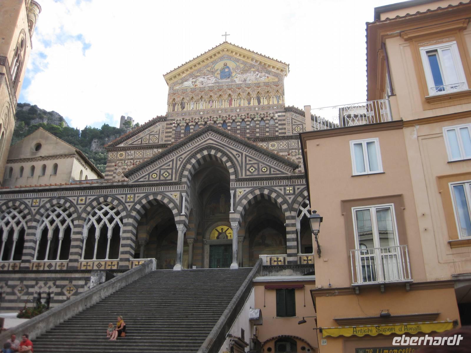 8.30 Uhr holt uns der Bus in Minori ab. Bei schönstem Wetter fahren wir auf der "Amalfitana", der berühmten Küstenstraße bis nach Amalfi. Dort verlassen wir den Bus. Wir werden ihn erst am Nachmittag wieder treffen. Wir machen einen Spaziergang durch das Städtchen. Amalfi ist der Hauptort des nach ihm benannten Küstenstreifen. Am Hauptplatz des Städtchens, der Piazza Duomo, beginnen wir unsere Besichtigung. Über eine große Freitreppe gelangen wir hinauf zum Dom, der im 9. Jahrhundert erbaut wurde. Der Dom ist ein Zeugnis der ruhmreichen Vergangenheit Amalfis. Im Dom besichtigen wir den Paradieskreuzgang, die Kruzifixbasilika, die Krypta,wo die Gebeine des hl. Andreas aufbewahrt werden und die Kathedrale dieses imposanten Bauwerkes. Dann schreiten wir über die Freitreppe wieder hinab zur Piazza Duomo und setzen unseren Spaziergang fort. Der Weg führt uns an zahlreichen Geschäften, die einheimische Produkte anbieten vorbei. Auch gibt es viele Möglichkeiten, Lebensmittel und Delikatessen der Region zu kosten.