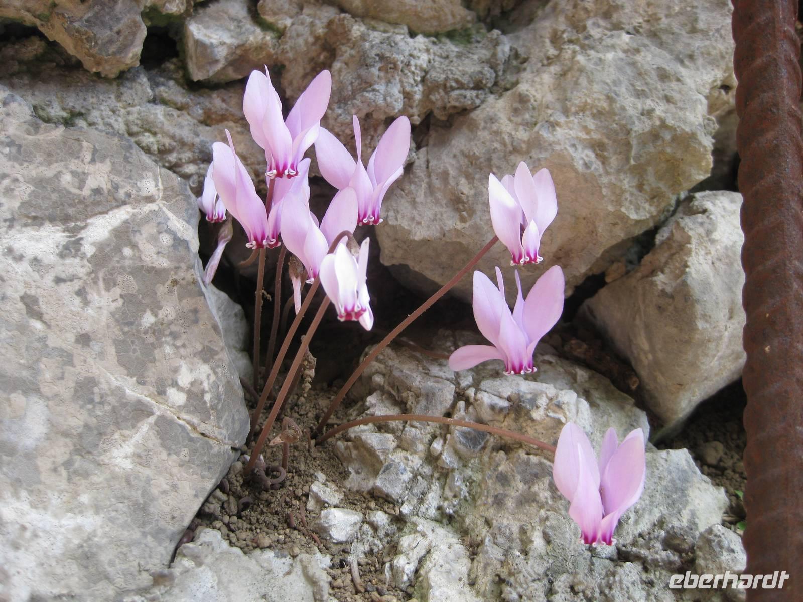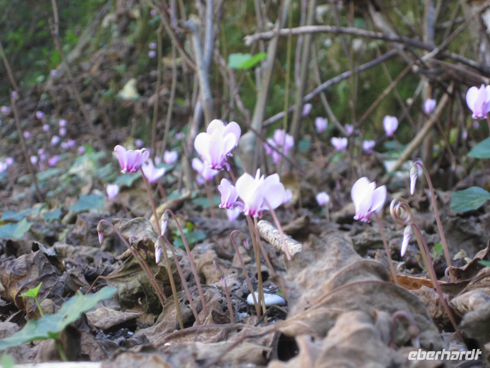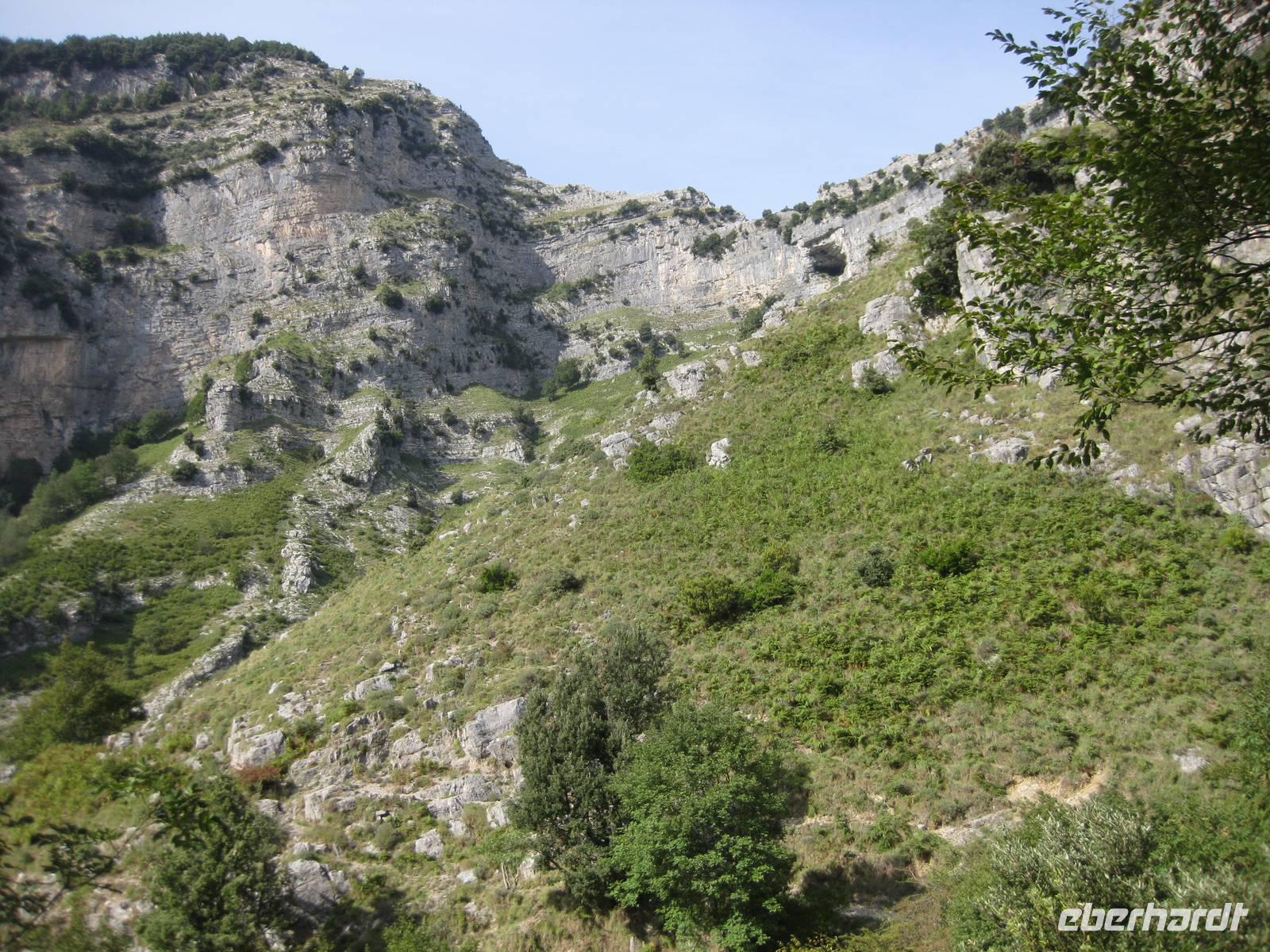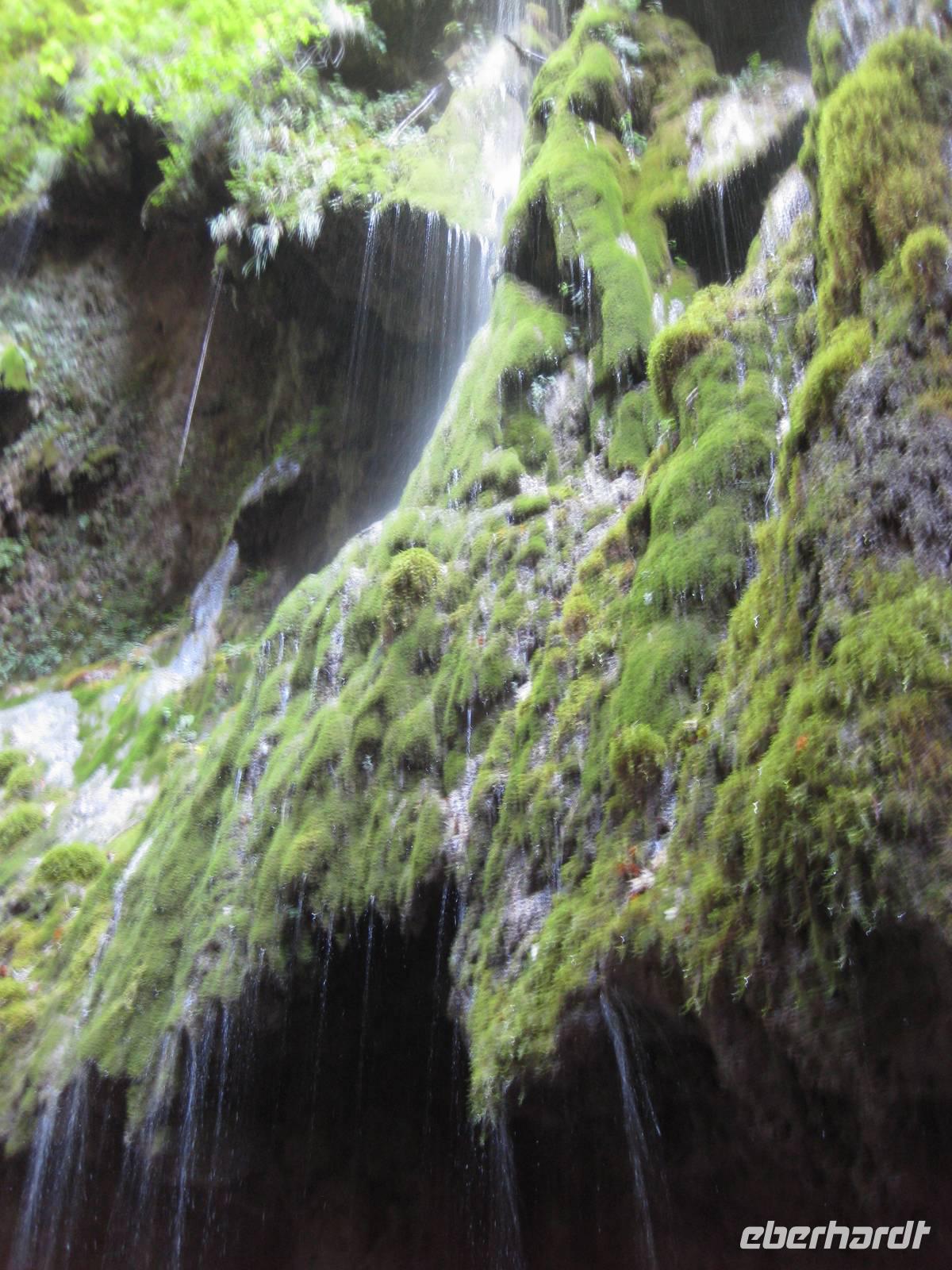 Nach dem Besuch des Papiermuseums starten wir nun unsere Wanderung durch das Mühlental. Es ist der untere Teil des Eisenhüttentals, in dem auch Amalfi liegt. Der Weg führt uns erst einmal oberhalb von Zitronenplantagen bis in's Tal. Dort geht der Weg unter Bäumen direkt am Flüsschen Canneto entlang, immer ganz leicht bergauf. Am Wegesrand können wir kleine Alpenveilchen bewundern. Am Ende des Tales erreichen wir ein Naturreservat mit vielen Wasserfällen. Hier ist es angenehm kühl. Und es gibt hier auch ein Farnkraut aus der Steinzeit zu bewundern.