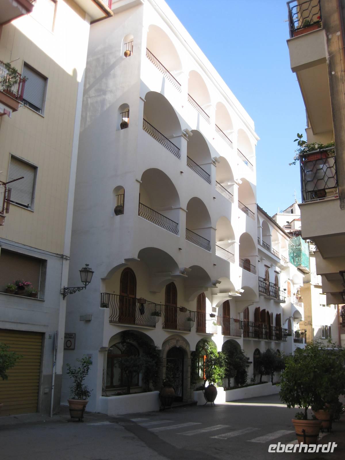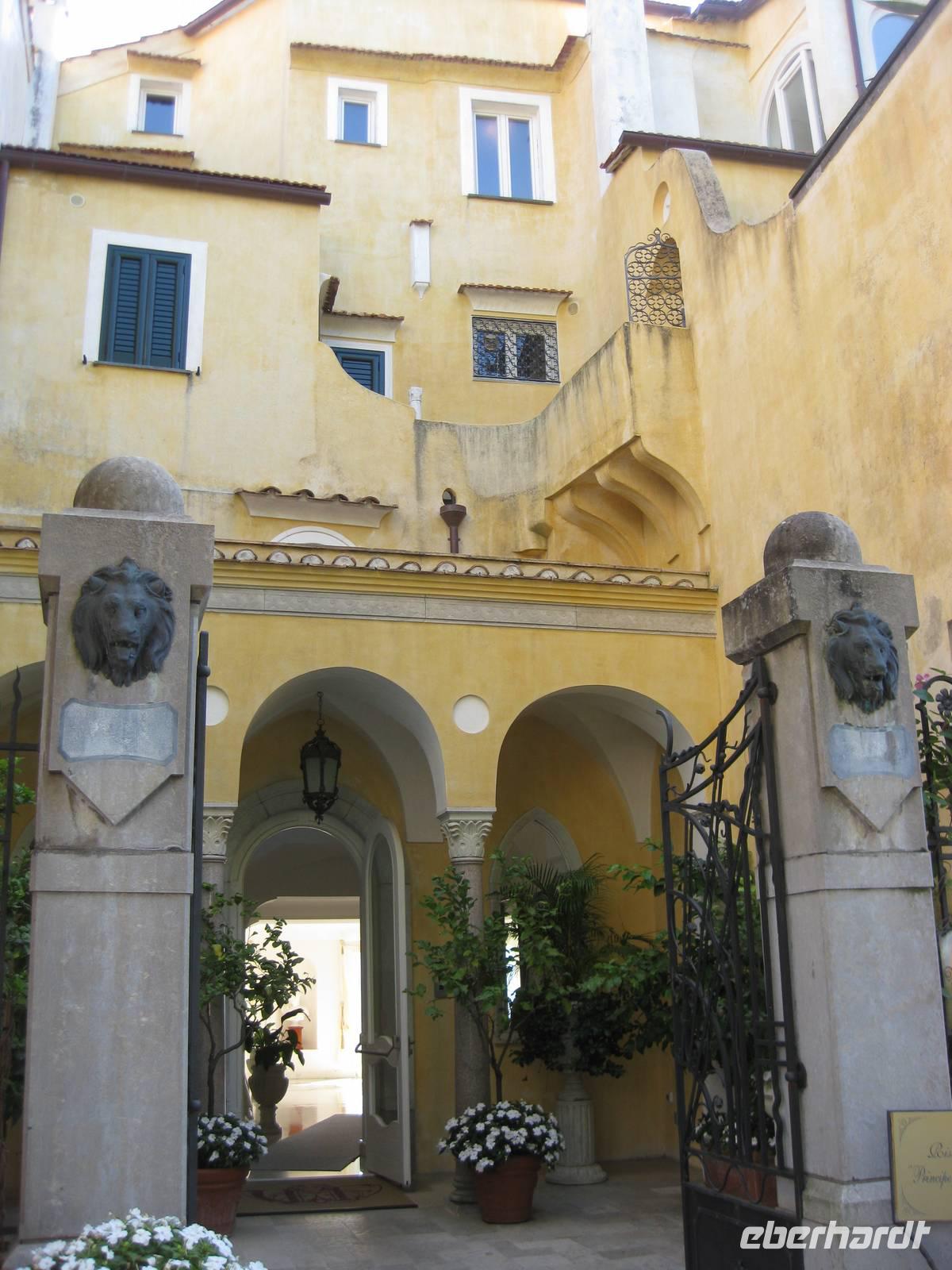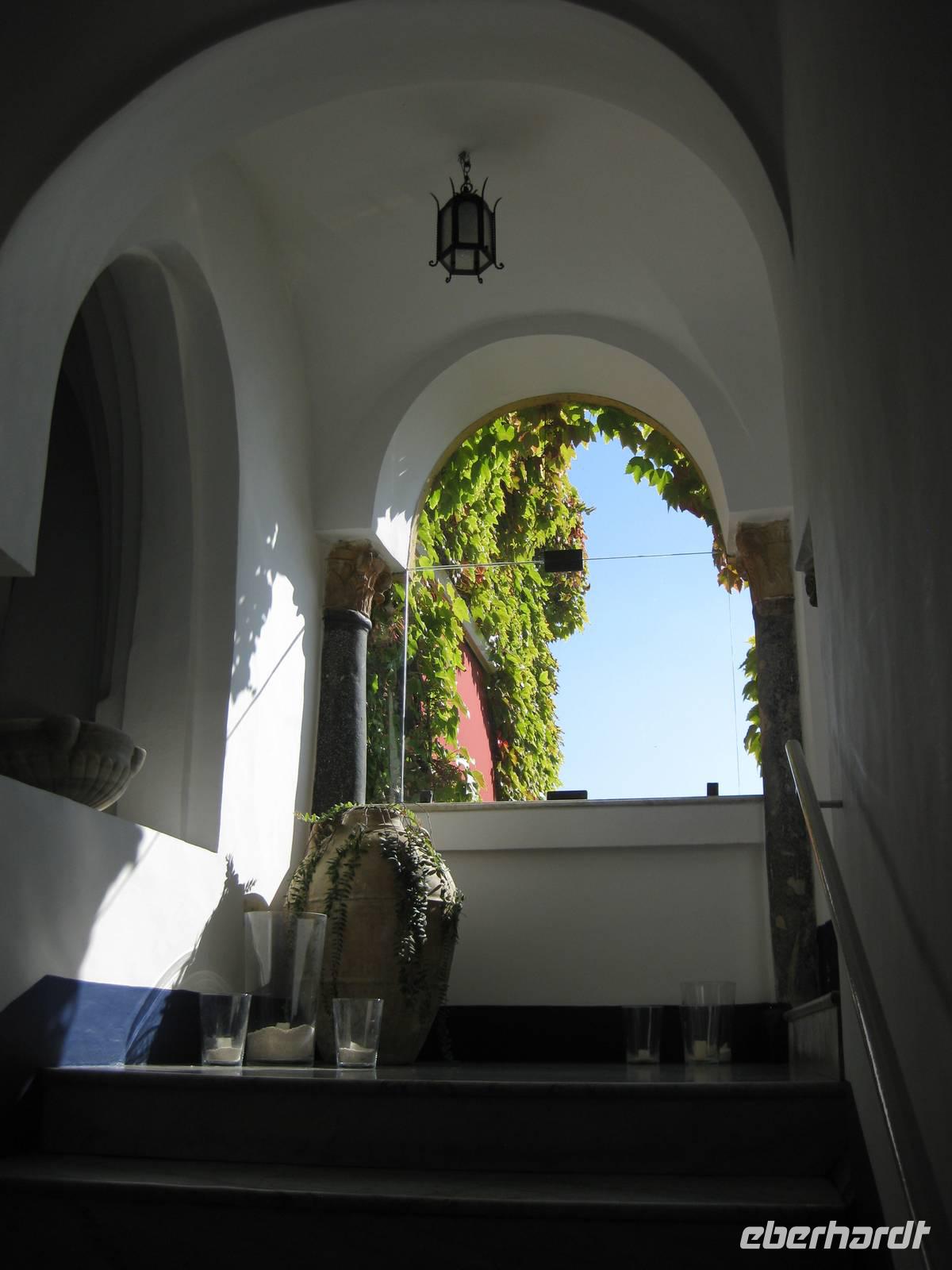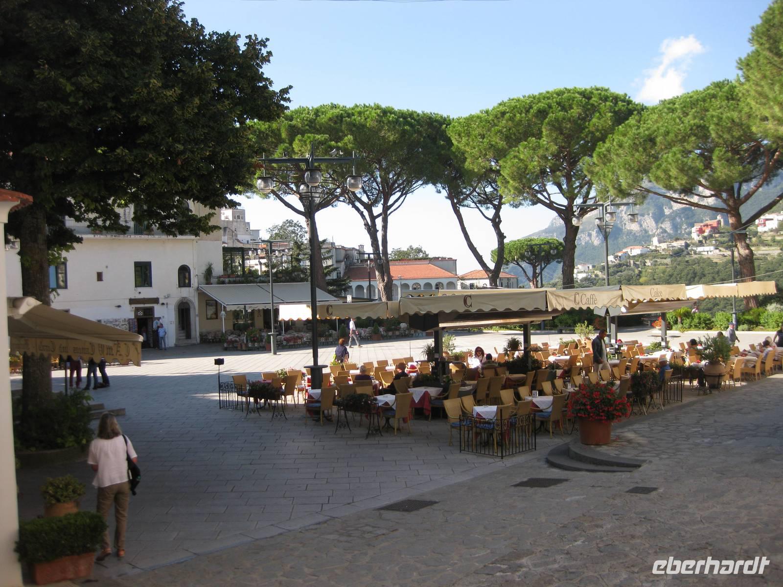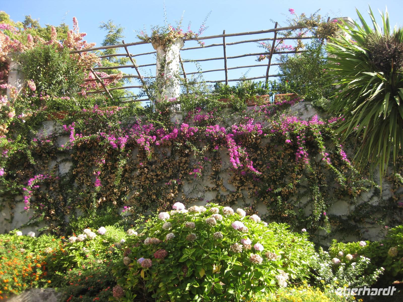 Auch heute holt uns der Bus nach dem Frühstück in Minori ab. Es ist wieder bestes Wanderwetter. Wir fahren erst ein Stück auf der "Amalfitana" bis kurz vor Atrani, wo wir nach rechts abbiegen und hinauf nach Ravello fahren. Das Städtchen Ravello liegt in luftiger Höhe am Monte Cerreto. Früher war Ravello eine reiche Handelsstadt und heute ist es ein Ort mit vielen Luxushotels, in denen es an nichts fehlt. Highlights in Ravello sind der Dom San Pantaloene und die Villa Rufolo. Beiden statten wir einen Besuch ab. In der Villa Rufolo weilte auch Richard Wagner und komponierte hier den zweiten Akt seine Oper "Parsifal". Heute finden deshalb hier jedes Jahr im Juni die "Wagner-Fstspiele" statt, ein grandioses Spektakel unter freiem Himmel zu dem berühmte Künstler, Orchester und Gäste aus aller Welt kommen. Besonders beeindruckend ist der Garten der Villa Rufolo. Von der Terrasse aus bietet sich ein traumhafter Blick über die Amalfiküste. Und der Palast der Villa Rufolo ist eine Schatzkammer maurischer Architektur.