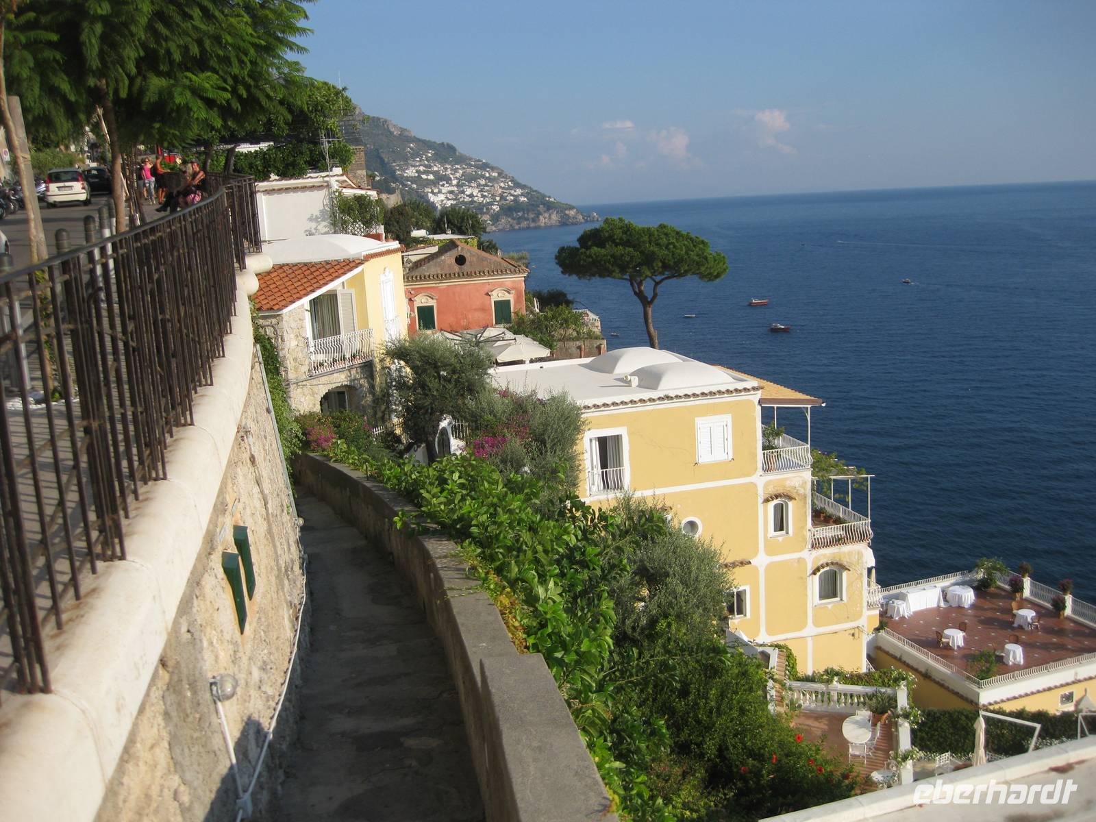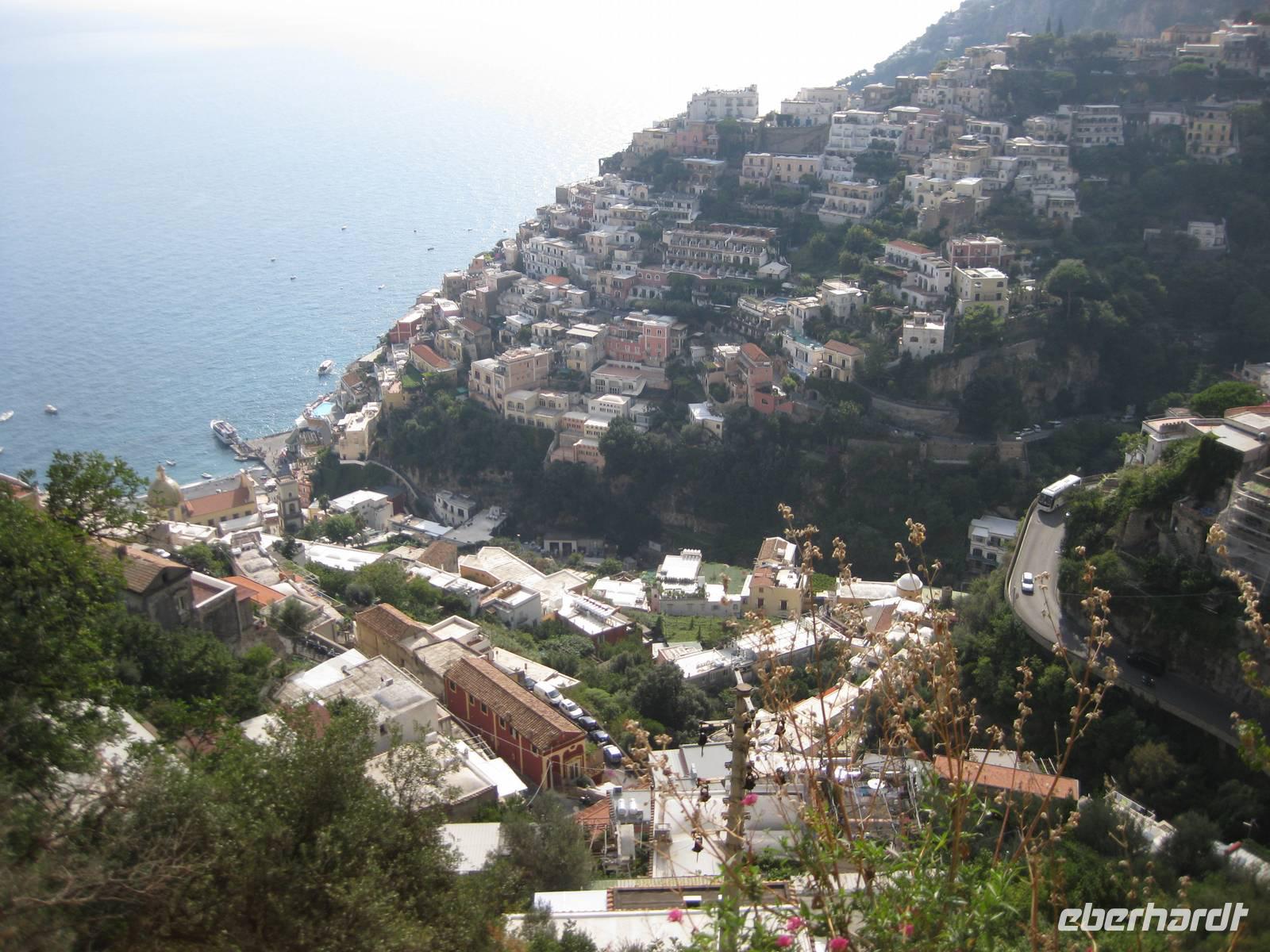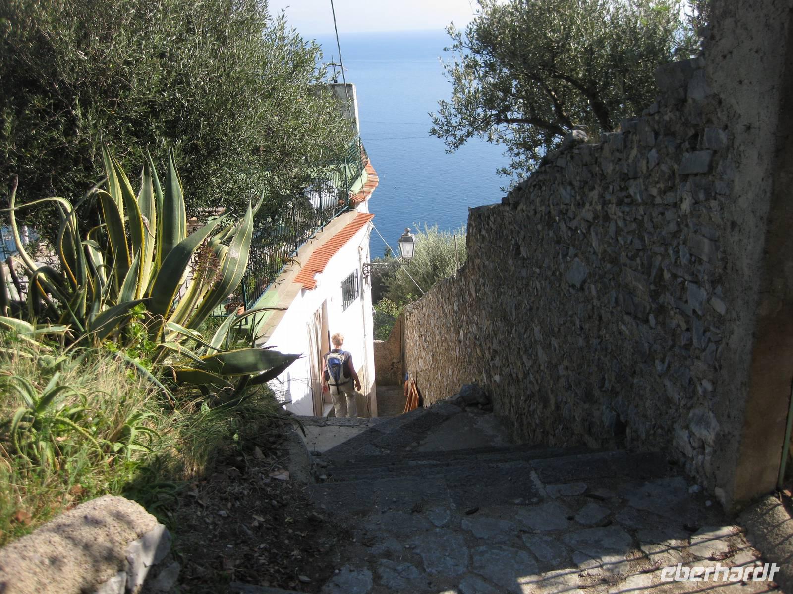 Gestärkt setzen wir unsere Wanderung in Richtung Positano fort. Langsam beginnt der Abstieg. Der Weg geht zumTeil auch wieder über viele Stufen bis hinunter nach Positano. Unten in der Stadt angekommen, zeigt uns Annette wo wir auf unseren Bus treffen und sie führt uns noch ein Stück bis in das Städtchen. Wir verabschieden uns von ihr und bedanken uns für die tolle Wanderung.