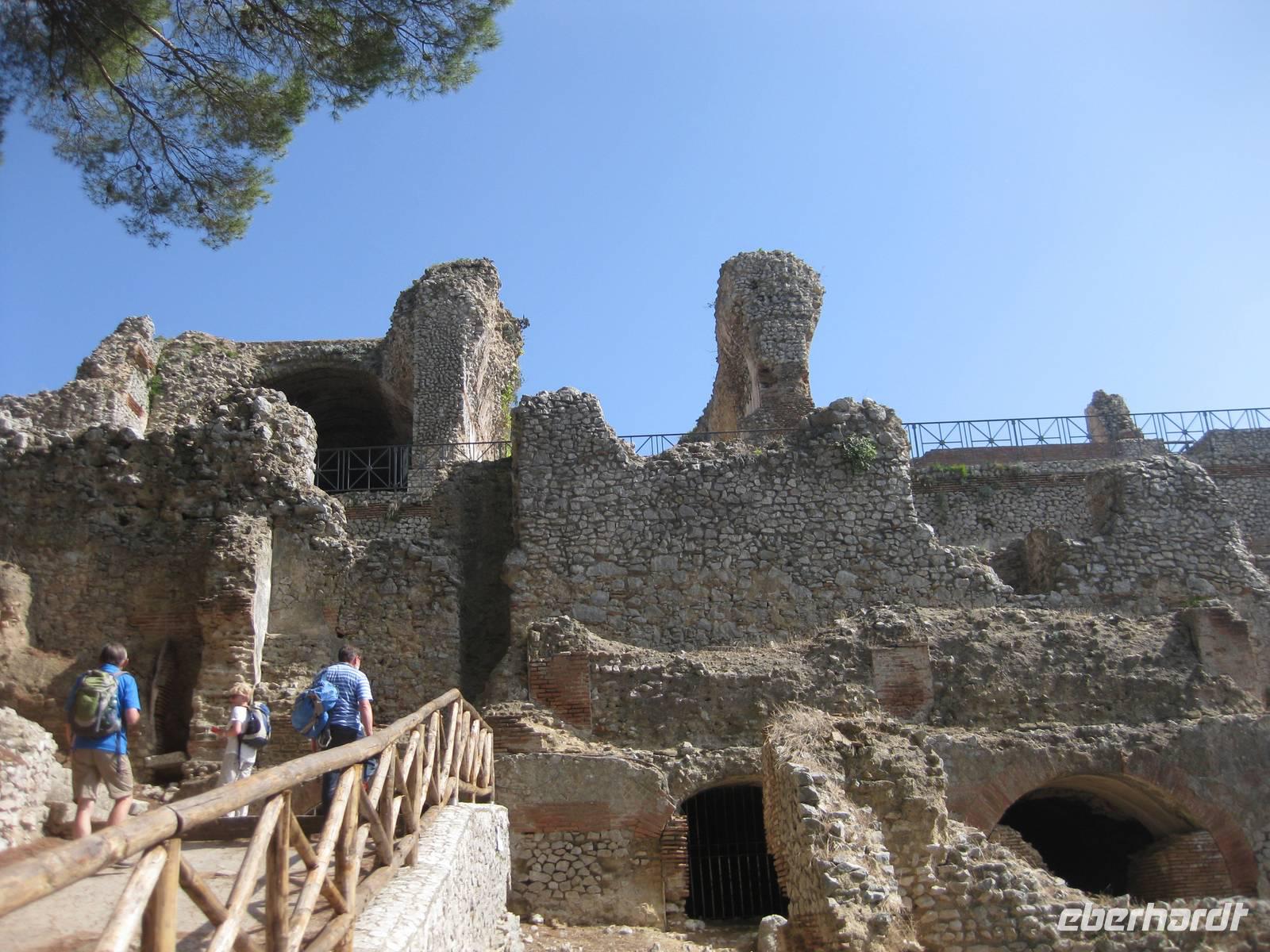 Bei der Besichtigung der antiken Stadt werden wir in die Welt vor 2000 Jahren zurück versetzt. Die Stadt war für die damalige Zeit recht modern. Wir bestaunen die prächtigen Häuser der Bewohner, die gesellschaftlichen und kulturellen Einrichtungen wie eine große Badeanlage, mehrere Theater, die Hauptgeschäftsstraße .... Für Zerstreung war auch gesorgt, es gab mehrere Freudenhäuser in der Stadt, die wir zu unserer großen Freude besichtigen konnten. Durch die lebhaften Schilderungen unserer Reiseleiterin Daniela wurde unsere Fantasie geweckt und wir konnten uns das Leben von damals gut vorstellen. Nach einem ausgibigen Rundgang verlassen wir die antike Stadt.
