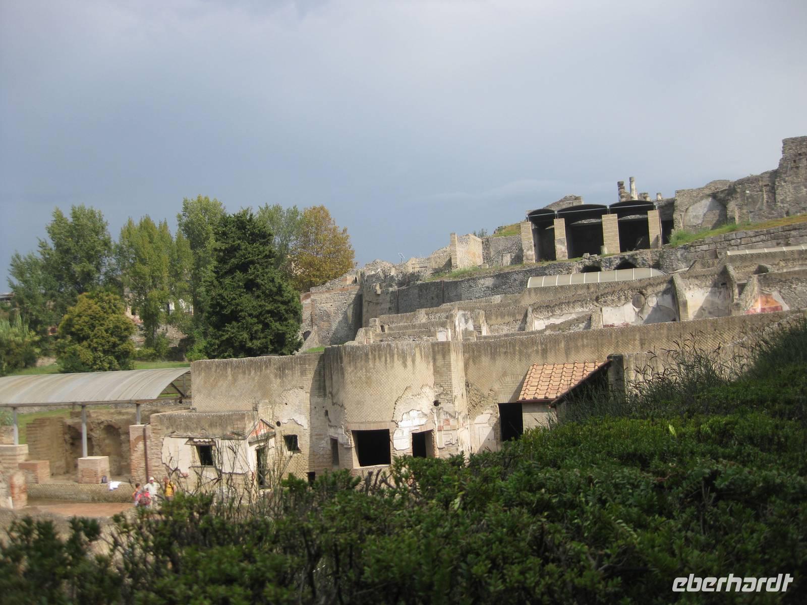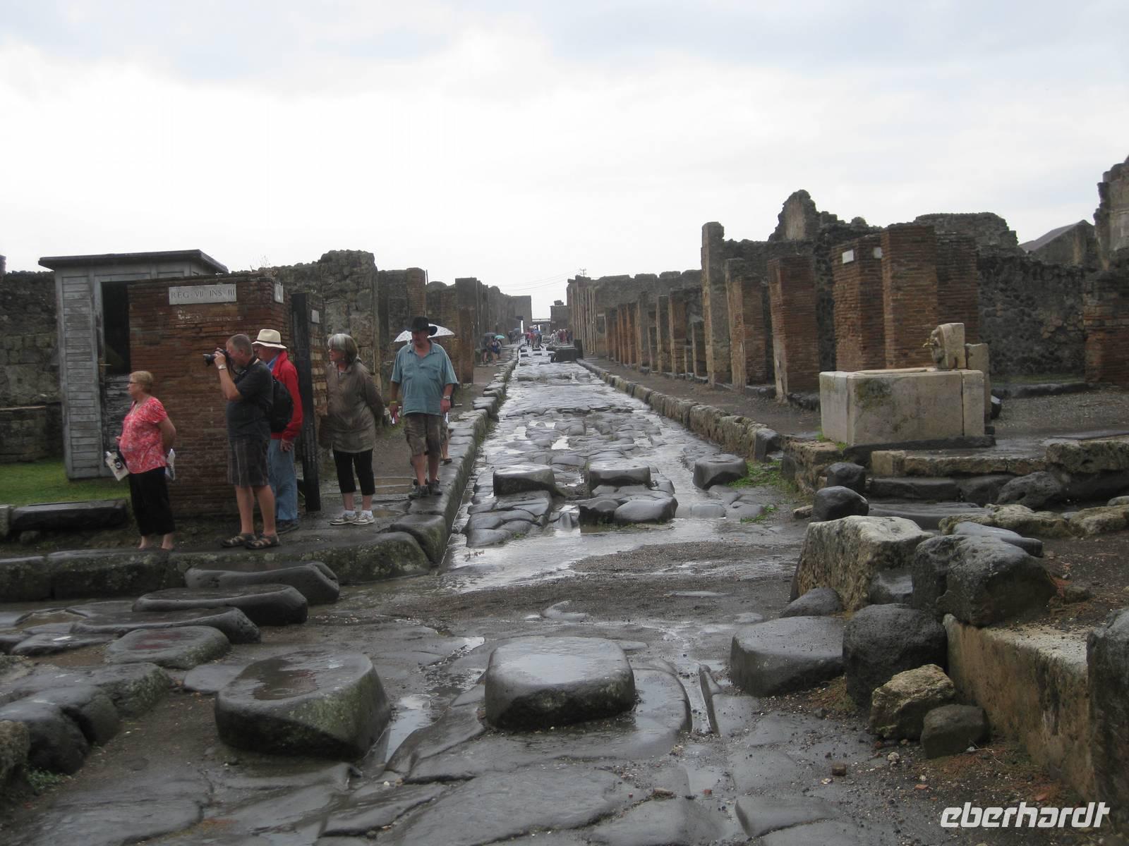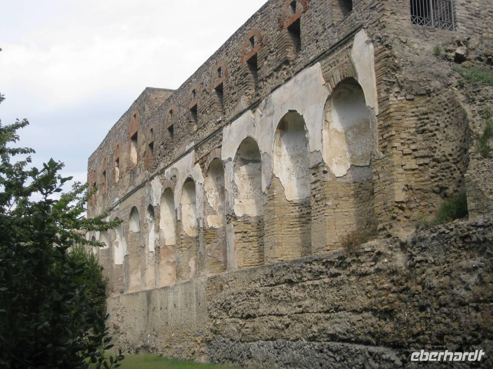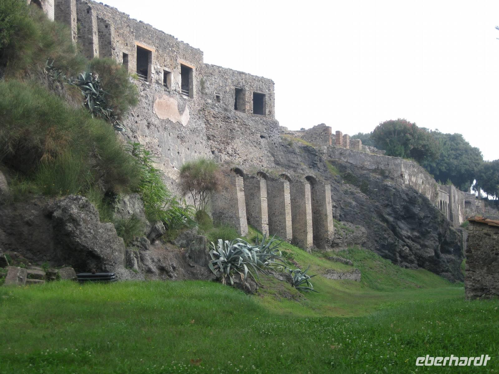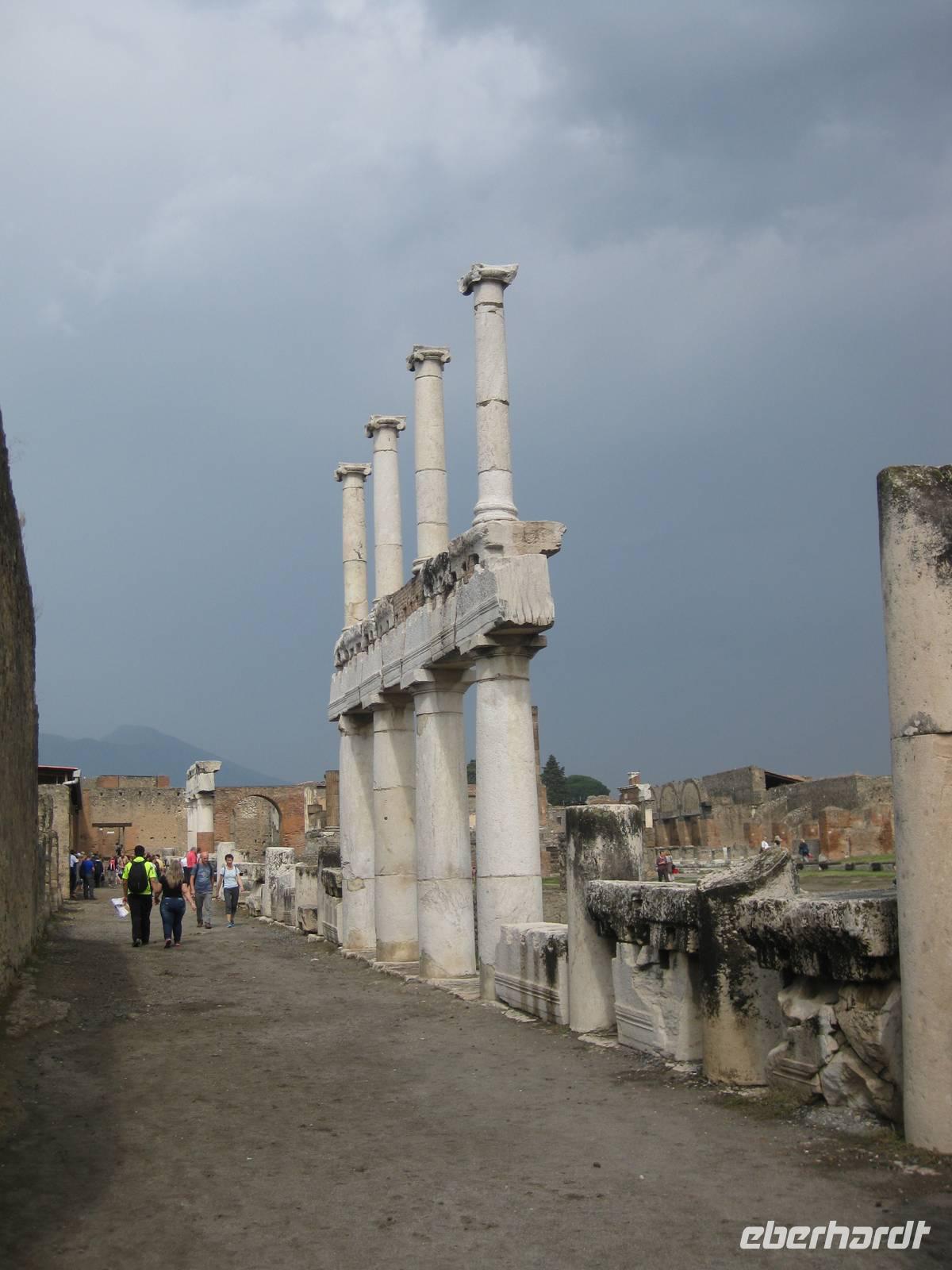 Im Jahr 79 n.Chr. brach der Vulkan Vesuv aus und überschüttete in nur drei Stunden die Stadt Pompeji und die umliegenden Orte mit einer vier Meter dicken Schicht aus Asche, Lava und Schlamm und erstickte alles. Die Struktur des Vulkans änderte sich völlig bei diesem Vulkanausbruch und die Küstenlinie verschob sich in's Meer hinaus. Im Jahr 1748 begannen die Ausgrabungsarbeiten. Ungefähr zwei Drittel der ursprünglichen antiken Stadt können heute besichtigt werden. Und es wird noch weiter ausgegraben. Pompeji gehört seit 1997 zum UNESCO-Weltkulturerbe.