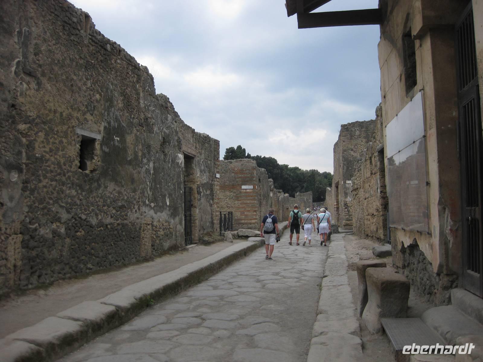 Wir frühstücken im Hotel und um 8.30 Uhr fahren wir mit dem Bus in Richtung Pompeji. Wir fahren auf der "Amalfitana" in Richtung Salerno. Auch dieser Teil der Küstenstraße ist sehr interessant. In Salerno verlassen wir die Küstenstraße und fahren über die Autostrada bis nach Pompeji. Dort kommen wir kurz vor 10.00 Uhr an. Wir leihen uns den Reiseleiter-Funk aus, so dass wir Danielas Ausführungen besser hören können und nicht alle immer dicht beieinander stehen müssen. Dadurch wird die Führung viel entspannter.