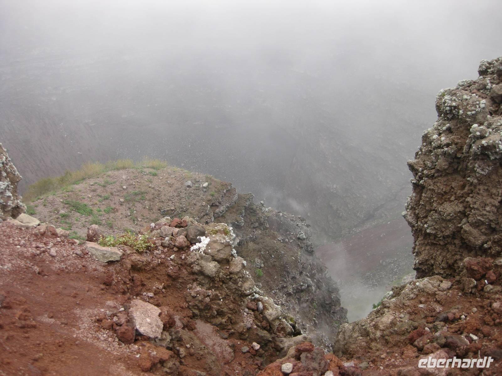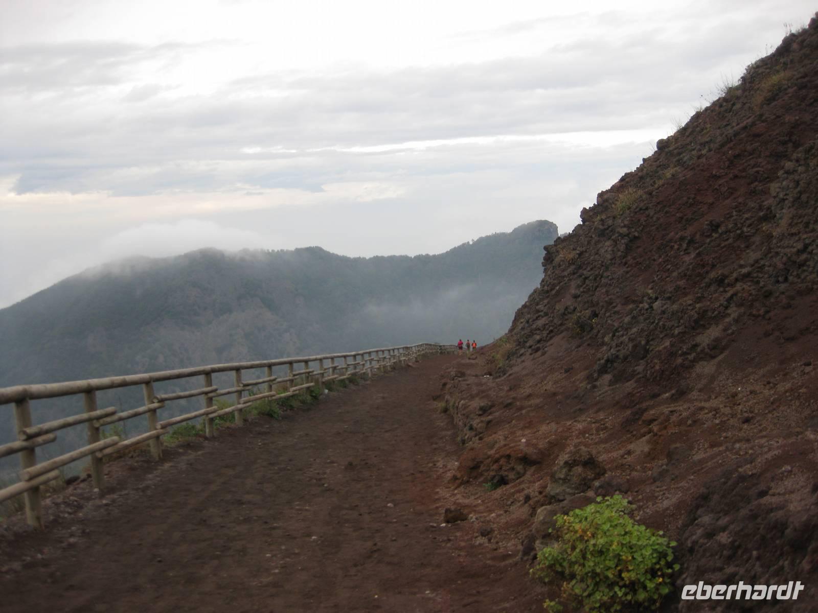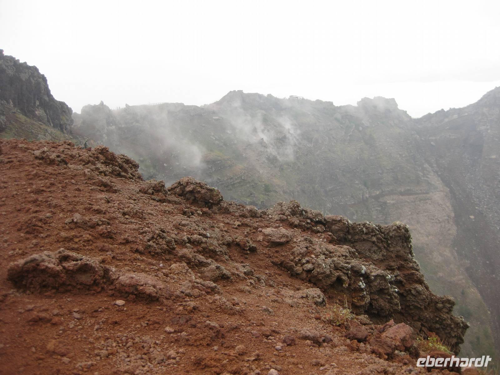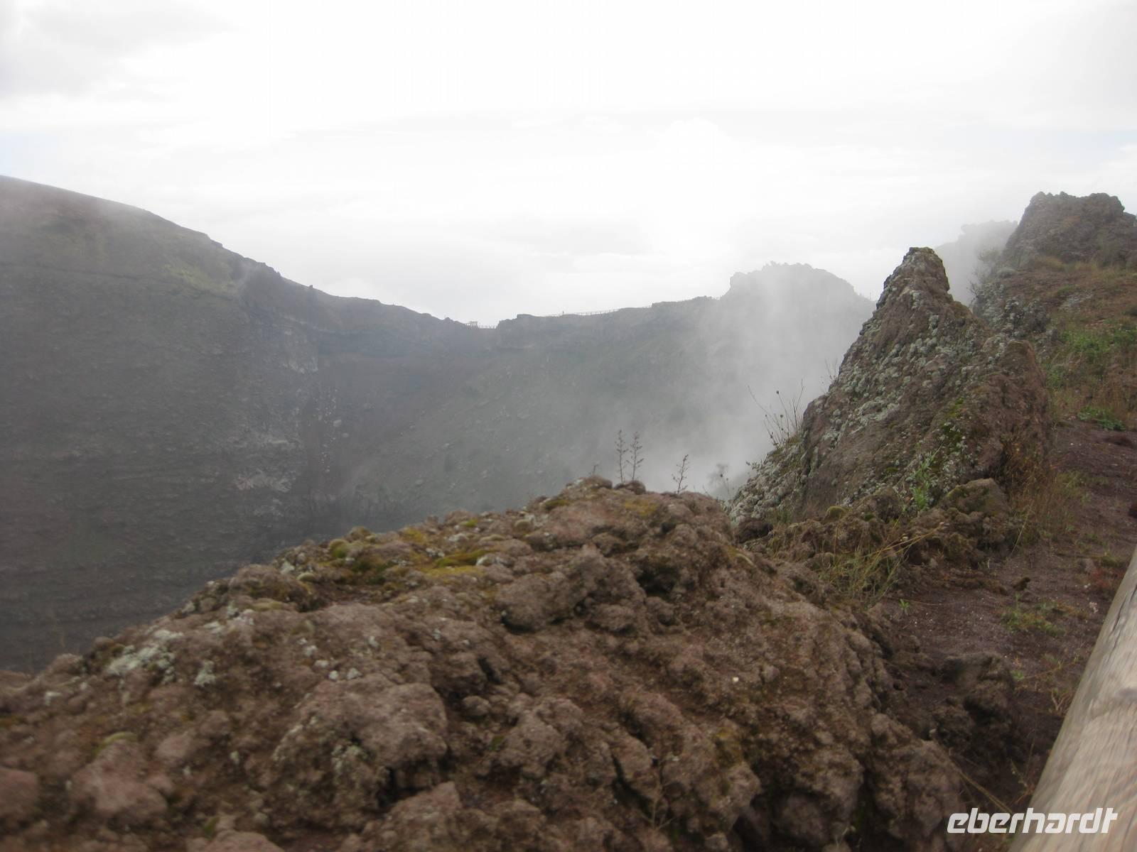 Im Anschluss daran fahren wir weiter zum Vesuv. Wir besteigen den Vesuv und können auf dem Kraterrand ein ganzes Stück entlang laufen. Leider hat sich der Himmel zugezogen und der Vesuv versteckt sich in den Wolken. So können wir nicht allzuviel sehen. Doch dann lichten sich die Wolken und wir können über den Krater hinweg und auch in den Krater hinein schauen - sehr beeindruckend und im Moment unvorstellbar, dass der Vulkan ausbrechen könnte. Dann steigen wir wieder hinab und fahren zurück nach Minori zu unserem Hotel.