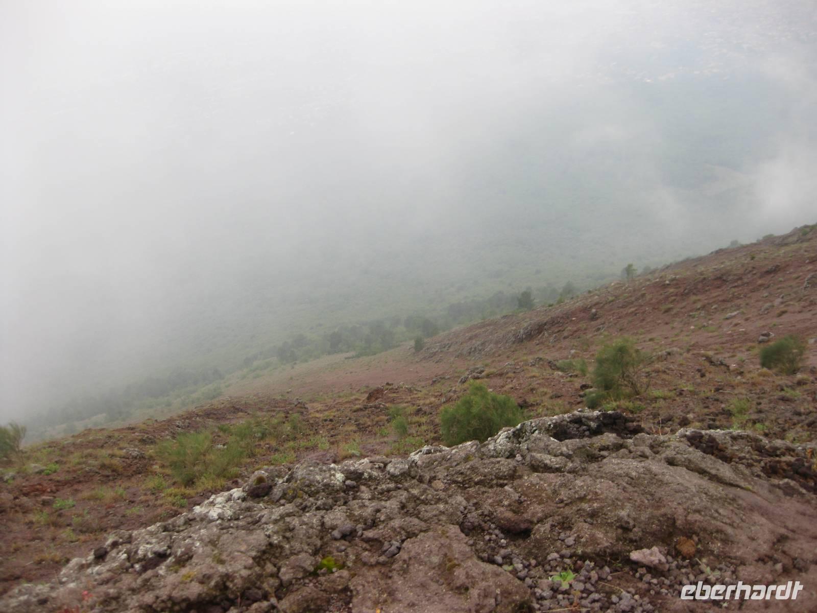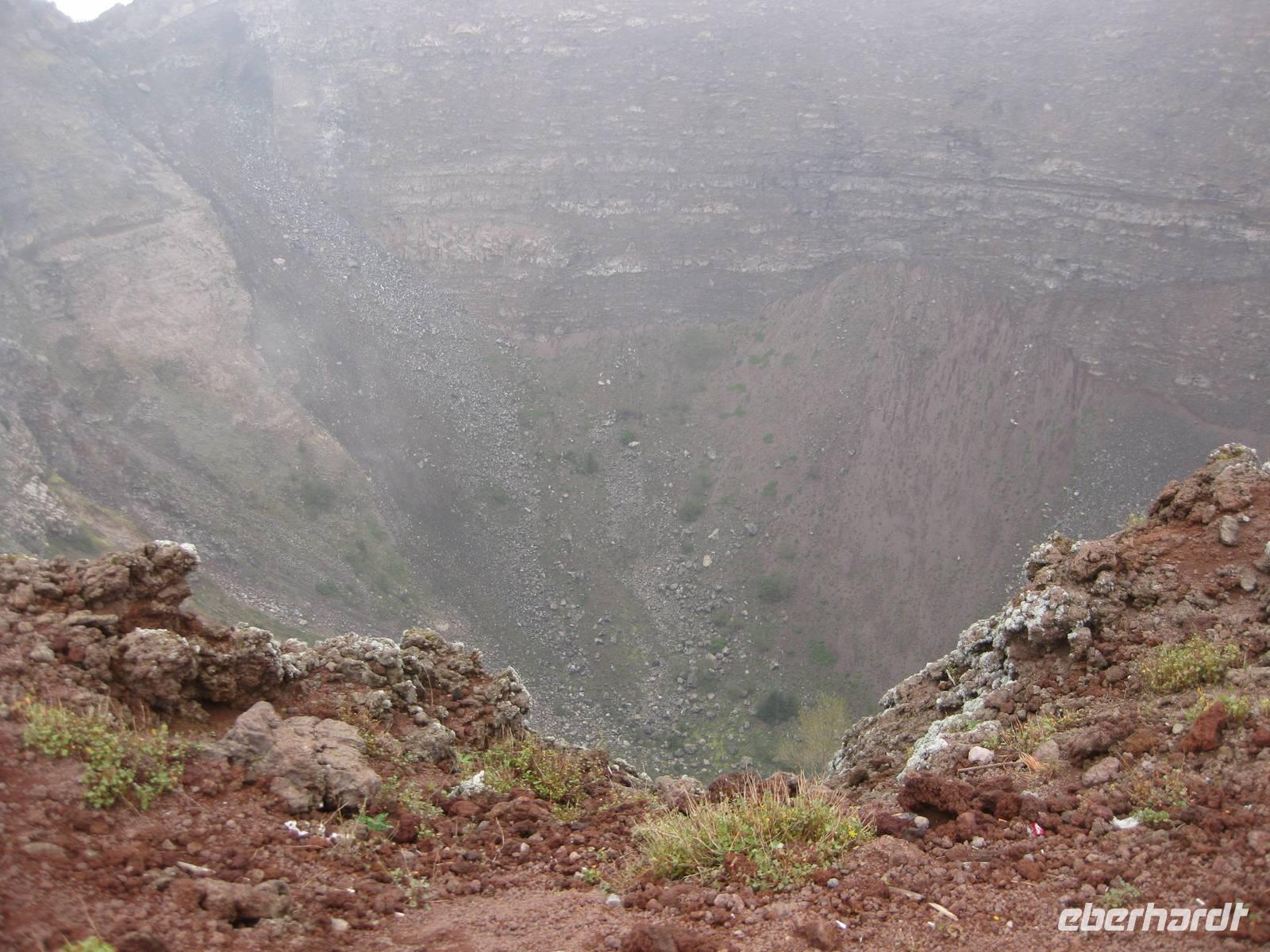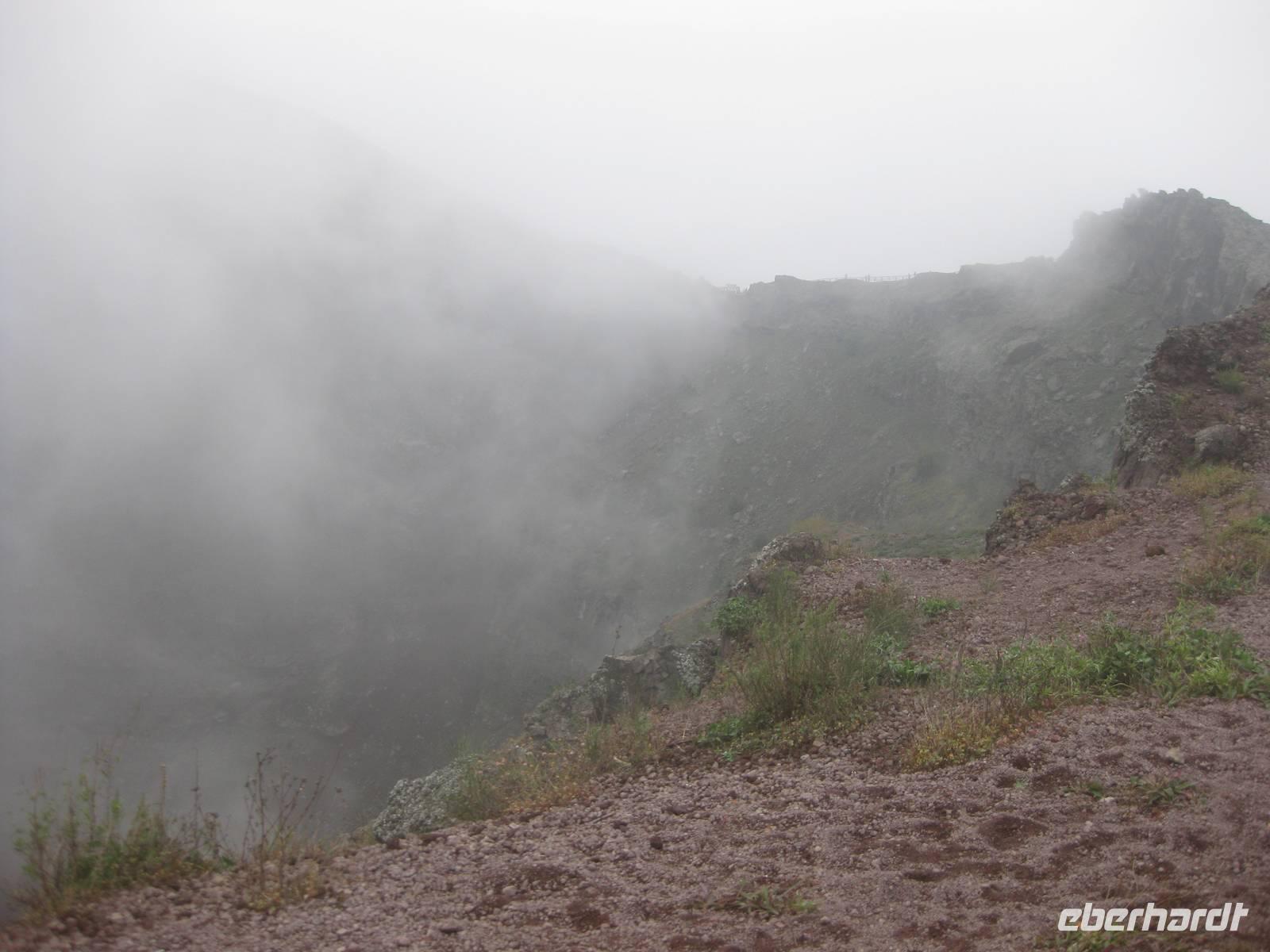 Im Anschluss daran fahren wir weiter zum Vesuv. Wir besteigen den Vesuv und können auf dem Kraterrand ein ganzes Stück entlang laufen. Leider hat sich der Himmel zugezogen und der Vesuv versteckt sich in den Wolken. So können wir nicht allzuviel sehen. Doch dann lichten sich die Wolken und wir können über den Krater hinweg und auch in den Krater hinein schauen - sehr beeindruckend und im Moment unvorstellbar, dass der Vulkan ausbrechen könnte. Dann steigen wir wieder hinab und fahren zurück nach Minori zu unserem Hotel.