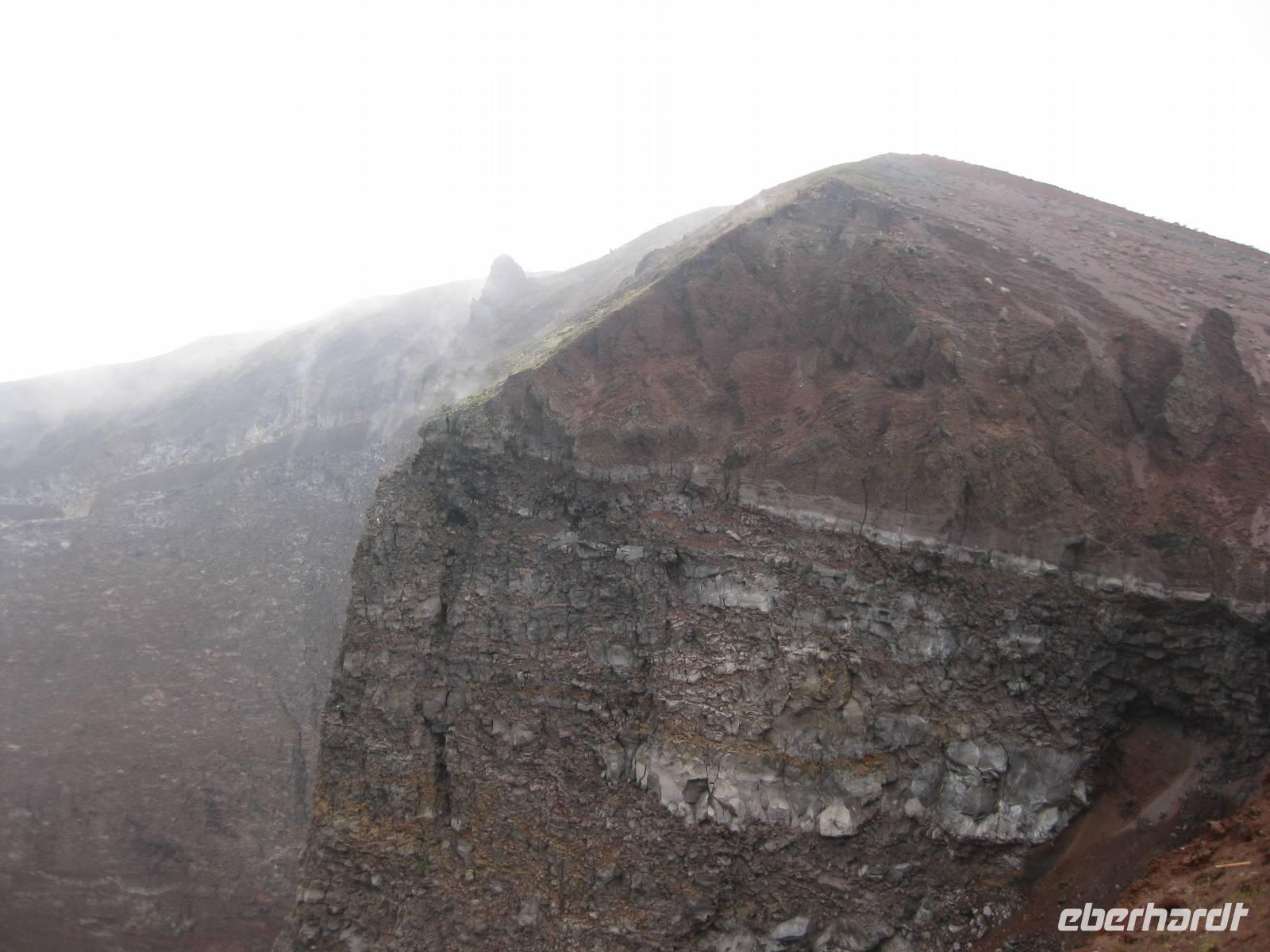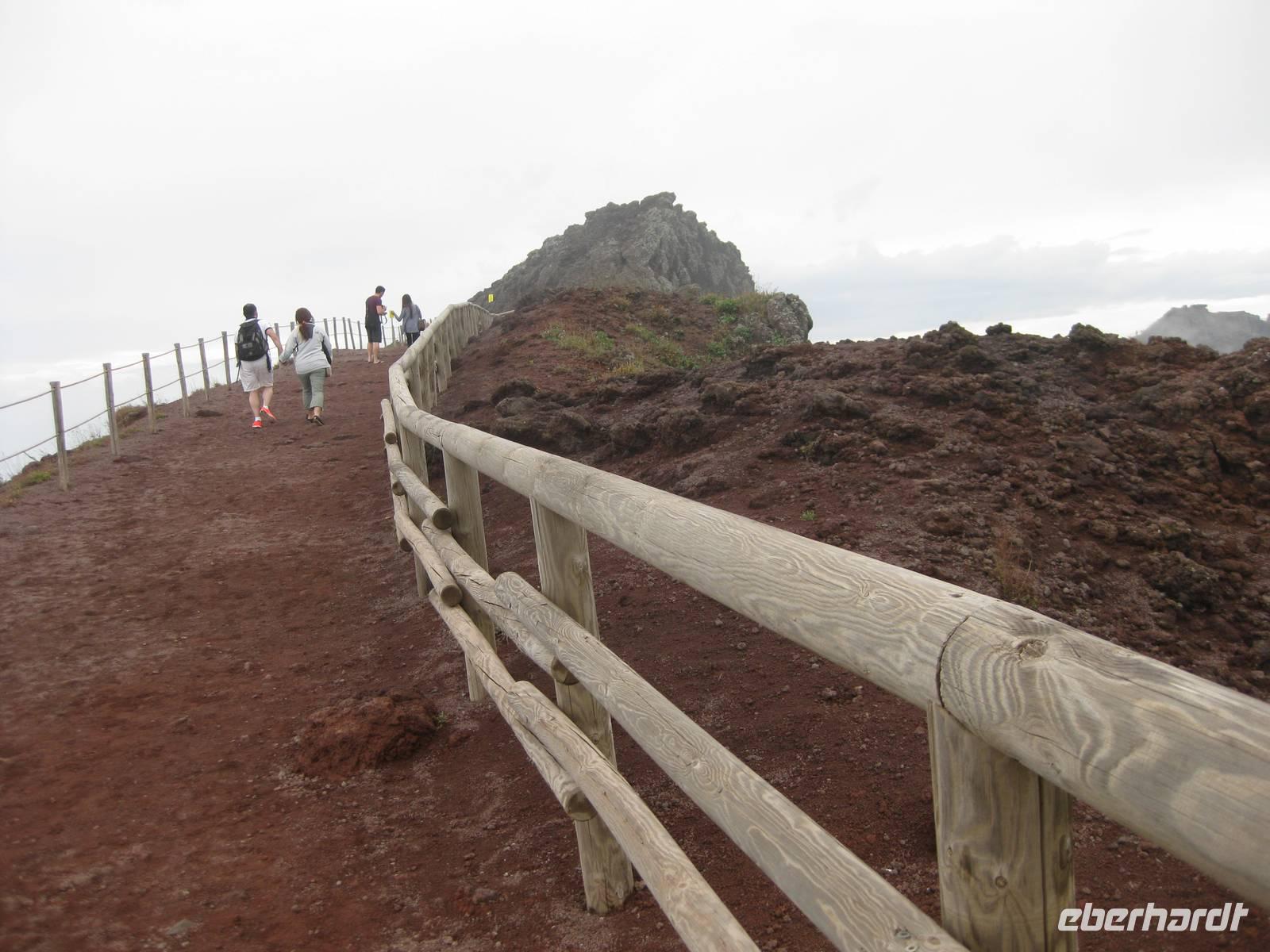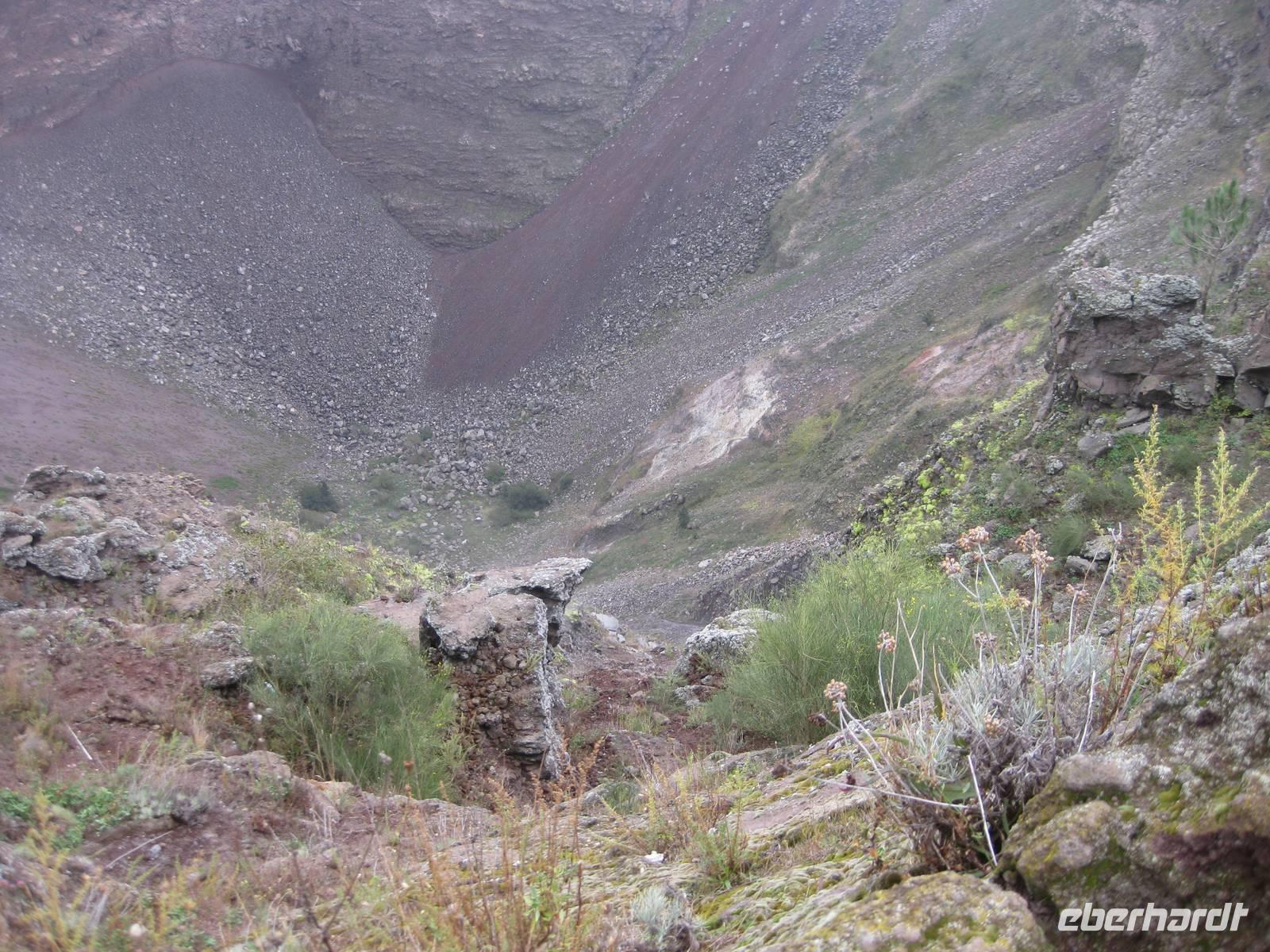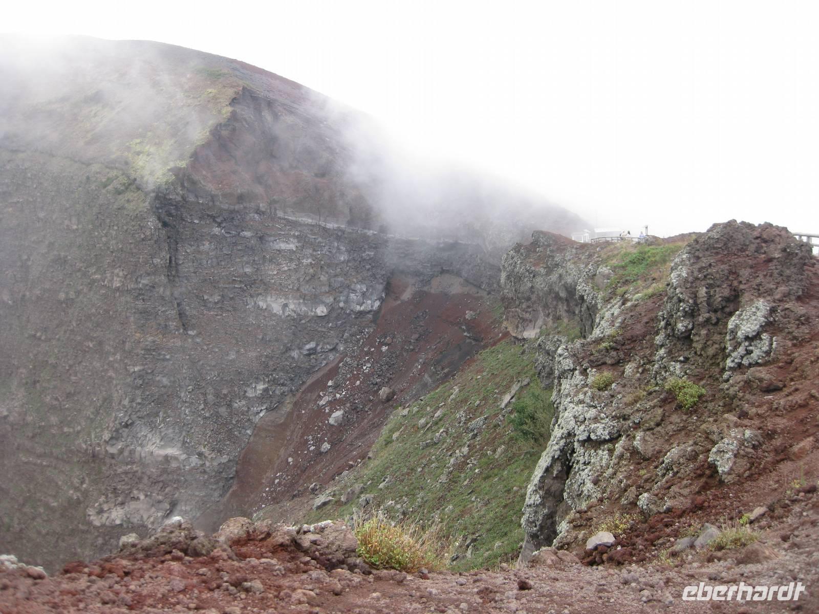 Im Anschluss daran fahren wir weiter zum Vesuv. Wir besteigen den Vesuv und können auf dem Kraterrand ein ganzes Stück entlang laufen. Leider hat sich der Himmel zugezogen und der Vesuv versteckt sich in den Wolken. So können wir nicht allzuviel sehen. Doch dann lichten sich die Wolken und wir können über den Krater hinweg und auch in den Krater hinein schauen - sehr beeindruckend und im Moment unvorstellbar, dass der Vulkan ausbrechen könnte. Dann steigen wir wieder hinab und fahren zurück nach Minori zu unserem Hotel.