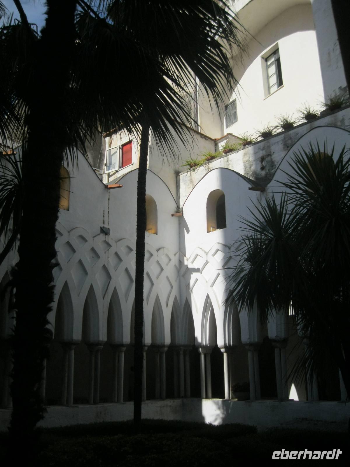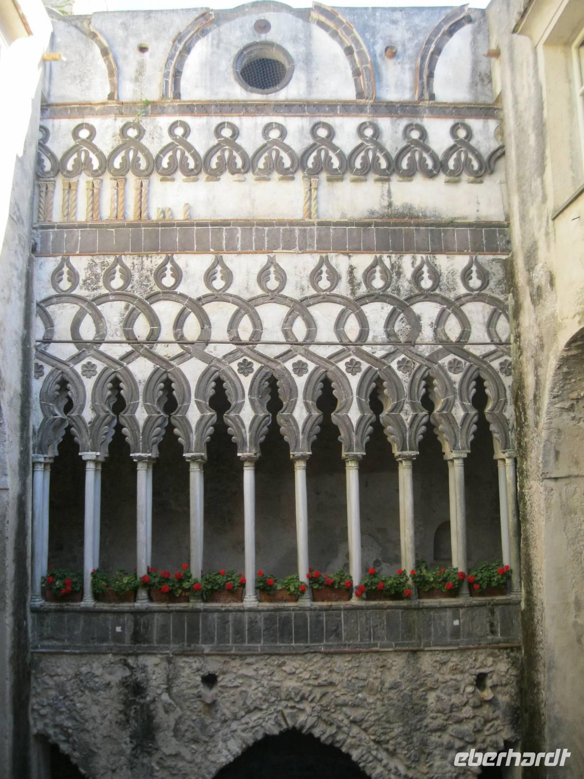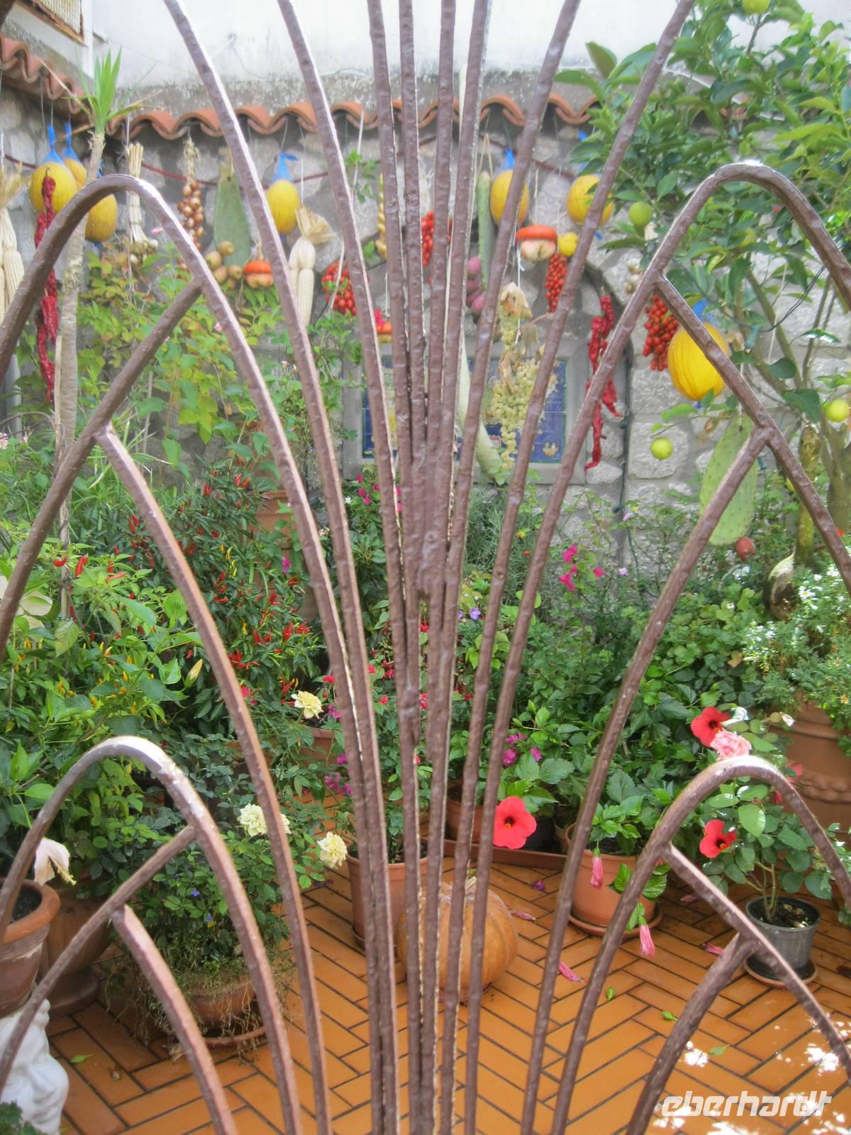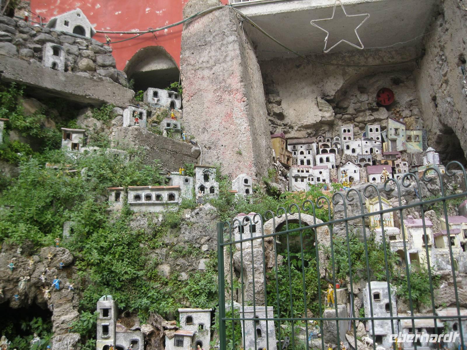 Der Bus brachte uns nach Ravello und setzte uns vor dem Stadttor ab. Von dort hatten wir einen schönen Blick auf das Auditorium, welches vom brasilianischen Stararchitekten Oscar Niemeyer entworfen wurde.(Kosten...nicht ganz billig !!!) Auf dem Piazza Duomo trafen wir Anna und besichtigten zuerst den Dom mit den beachtenswerten Bronzetüren, auf denen die Leidensgeschichte Christi nachgestellt wurde. In der Kapelle St.Pantaleon wird das Blut des Heiligen aufbewahrt. Danach besuchten wir die im sarazenischen Stil gestaltete Villa Rufolo. Der Ausblick auf die Küste, unser Städtchen Minori und den Golf von Salerno ist herrlich. In den Sommermonaten finden hier Konzerte statt. In den Gärten der Villa fand Richard Wagner 1880 die Inspiration für das Bühnenbild seiner Oper Parzival, den Garten Klingsors. Danach hatten wir Zeit, uns im romantischen Gebirgsstädtchen umzusehen. Über die Treppen ging es hinunter in Richtung Minori. Immer wieder hatten wir einen tollen Blick auf die Küste. Bei einem Weinbauern wurden wir zu einem "Probier - Schluck" eingeladen. Es war ein Rosé und schmeckte recht frisch. Anna erzählte viel über Umgebung, Früchte und Natur. Endlich erreichten wir unser Agriturismo "Villa Maria"oberhalb von Minori aber wir mussten noch einen steilen Wiesenweganstieg überwinden. Von der Veranda aus hatten wir eine herrliche Aussicht auf das Mittelmeer und Minori. Belohnt wurden wir auch mit einem tollen Essen. Unser Wanderfreund Wolfgang dankte im Namen der Gruppe mit einer Widmung für die Gastfreundschaft ins Gästebuch. Wir mussten natürlich die vielen Treppen wieder hinunter, um ins Hotel zu gelangen.