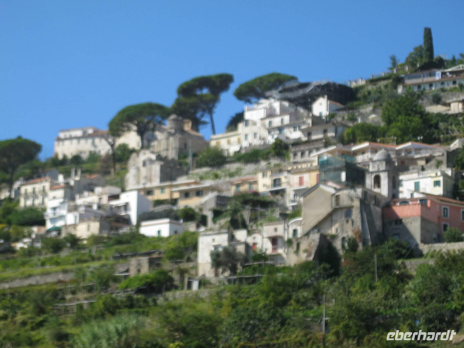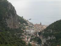 Der Himmel war wie blank geputzt, es sollte ein schöner Tag werden. Wir fuhren bis Pianillo und liefen über viele Treppen und leider auch Straßen nach Pogerola. Kerstin erklärte Ernesto, dass dies nicht der richtige Wanderweg sei. Trotzdem ließ er sich nicht beeinflussen. Wir nehmen an, dass er die Wanderkarte mit der Straßenkarte verwechselte. Im Ristorante "La Carcara" wurden wir wieder mit einer köstlichen, frischen Pizza verwöhnt. Während des Essens ging ein heftiger Regenschauer nieder und wir überlegten, ob uns der Bus gleich hier abholen sollte. Petrus hatte ein Einsehen mit uns und ließ die Sonne wieder raus. So konnten wir wenigstens von hier aus, den Wanderweg nach Amalfi gehen. Wir bestellten den Bus und verbrachten den Restnachmittag in Minori.