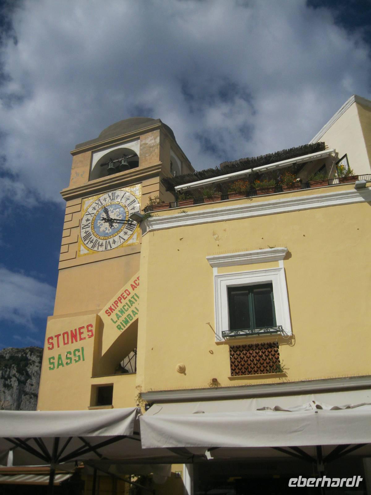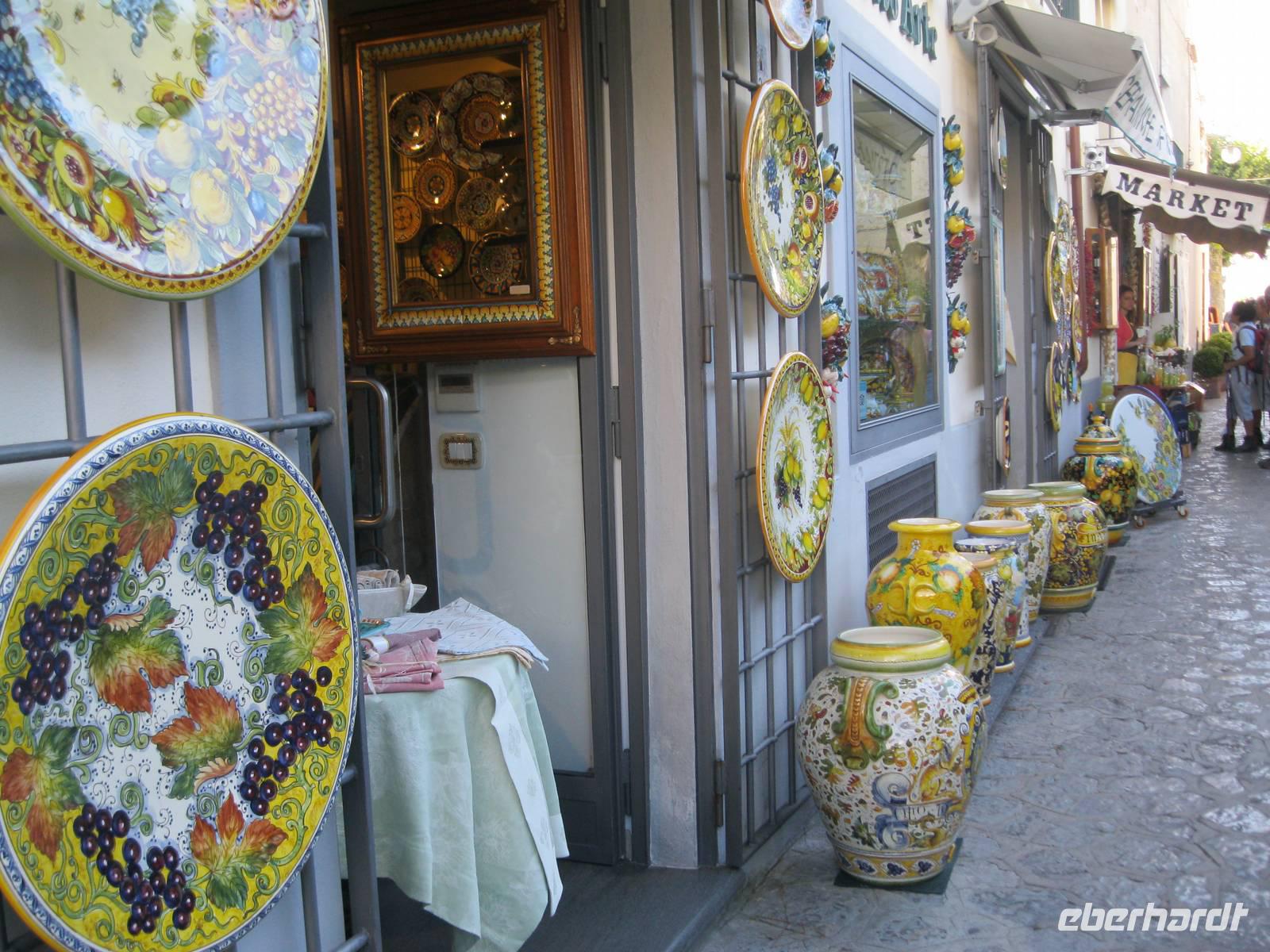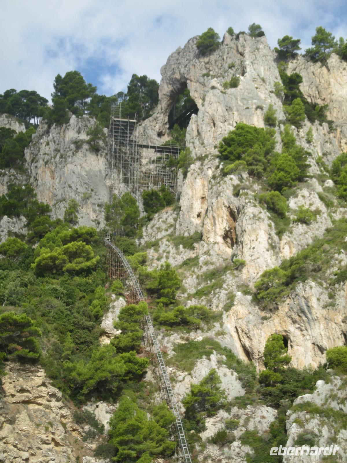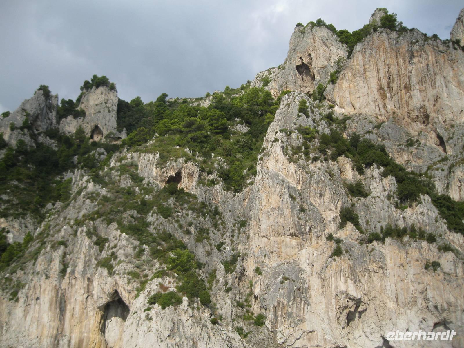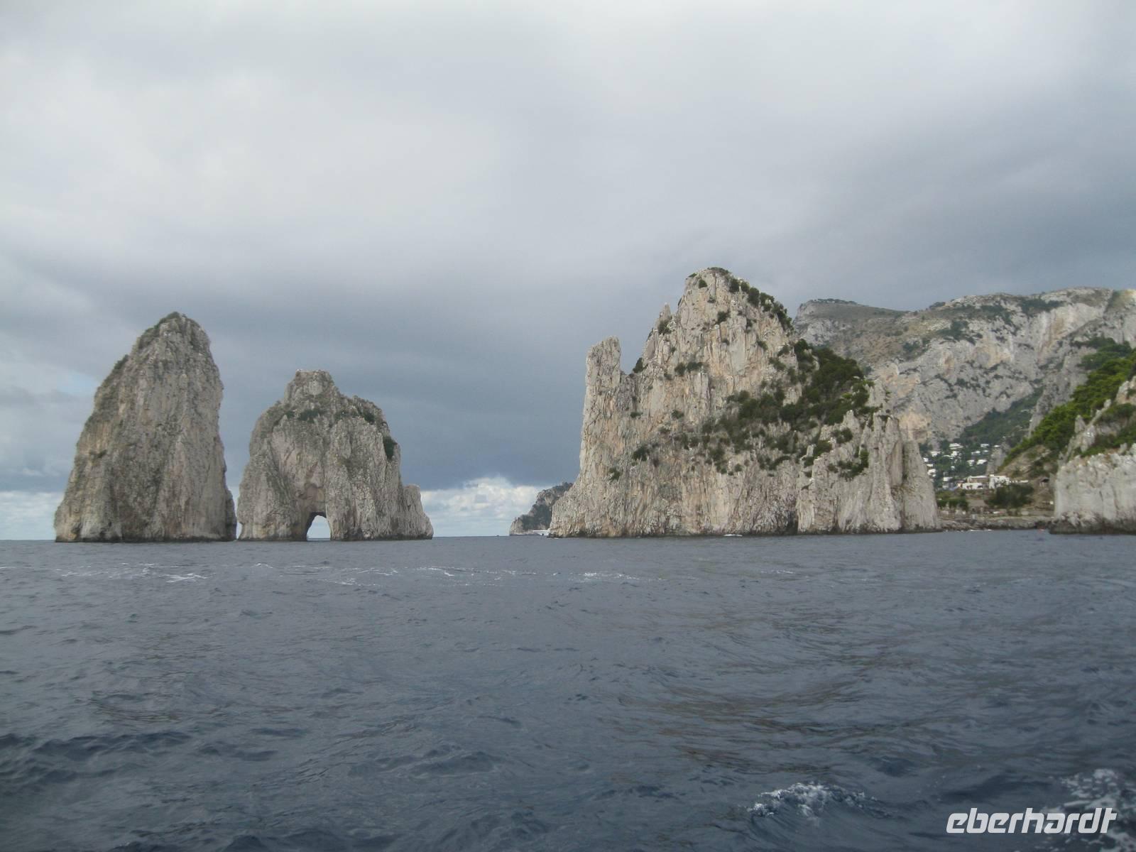Auch heute nutzten wir den Seeweg. Mit einem Privatboot fuhren wir direkt nach Capri und legten im Hafen "Marina Grande"an. Eigentlich wollten wir mit der Funicolare hinauf nach Capri-Stadt. Aufgrund der Menschenmassen, die wohl das Gleiche vorhatten, entschlossen wir uns zu laufen (wir waren doch eine Wandergruppe). Nach einer kleinen Erkundung, wobei Anna Erläuterungen gab, setzten wir unseren Weg Richtung Villa Jovis fort. Unterwegs leisteten wir uns einen Espresso und genossen das Flair Capris. Nach dem Rundgang durch das Areal der Villa Jovis, picknickten wir auf diesem Gelände. Die dort lebenden Ziegen hatten nur darauf gewartet und belagerten uns sofort. Wir setzten unsere Wanderung zur Felsformation "Arco Naturale" fort. Später liefen wir auch die Treppen zum Hafen wieder hinunter und beobachteten dort das bunte Treiben der Touristen. Mit dem Boot ging es auch wieder zurück nach Minori. Hier verabschiedeten wir uns herzlich von Anna.