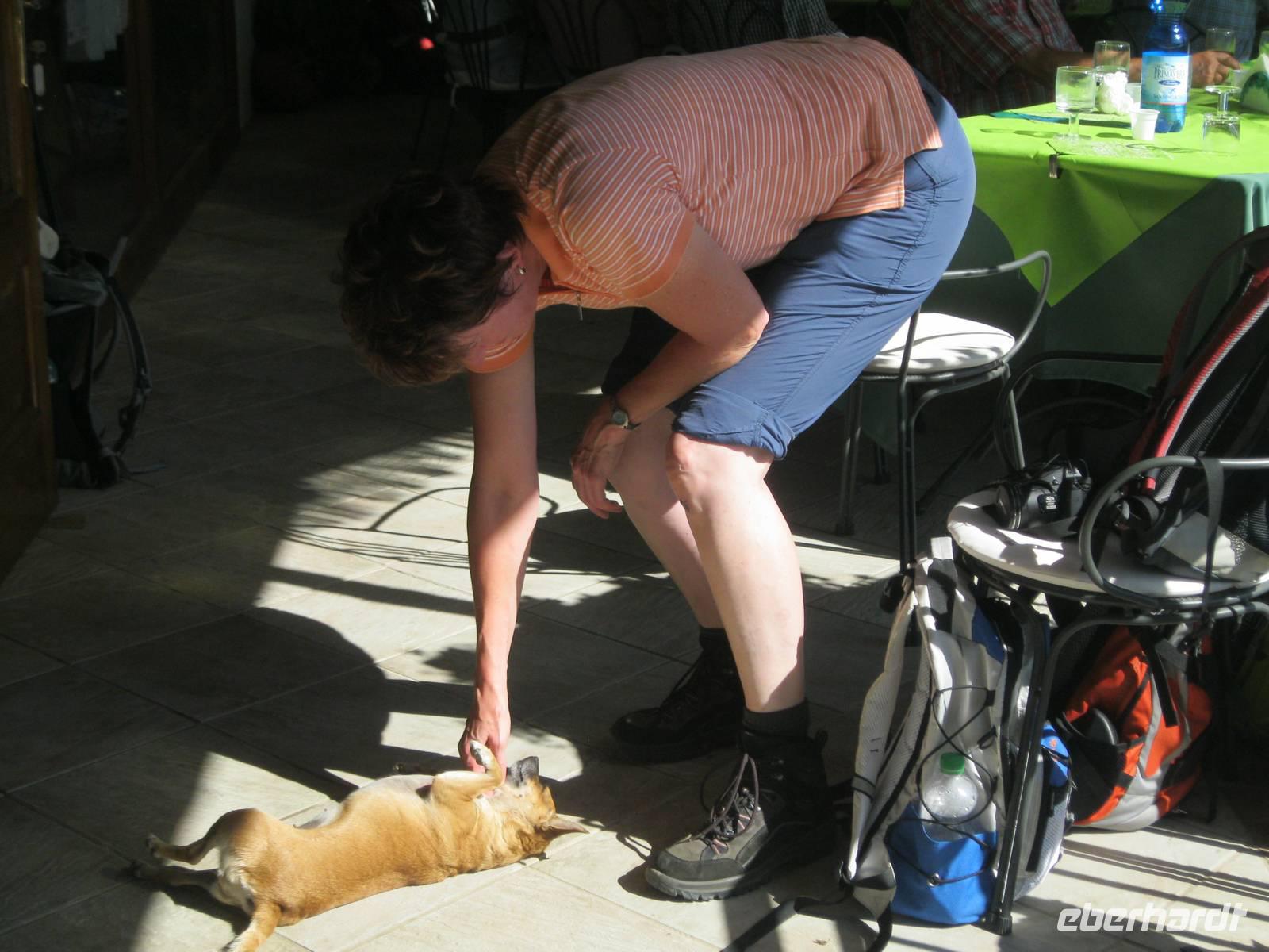 Heute holte uns ein Kleinbus und ein Taxi ab. Es hatte auf der Strecke einen Erdrutsch gegeben und mit dem Bus hätten wir eine große Umleitung fahren müssen. In Bomerano erwartete uns Anna und wir stiegen ersteinmal bergan. Es sollte eine anstrengende aber landschaftlich schöne Tour werden. Der Weg wechselte sich mit Steigungen und Gefälle immer ab. Unterwegs trafen wir auf einen Bauern mit seinem Hund. Er bot uns frisch geerntetes Oregano (zum Schnuppern) und Feigen (zum Essen) an. Wir machten an schönen Aussichten Rast und als wir die drei Inseln (La Galli) im Meer erblickten, erzählte uns Kerstin die Legende von den Sirenen und Odysseus. Am Ende der Wanderung erreichten wir Nocelle, wo schon eine kleine Tafel für uns eingedeckt war. Wir ließen uns die einheimischen Produkte schmecken und es wurde sogar dabei gesungen. Anschließend war es Zeit aufzubrechen, da wir doch unser Schiff in Positano erreichen wollten. Der Abstieg ging über 1500 Stufen. Nur 5 Wanderer waren tapfer und liefen. Der Rest fuhr mit Kerstin und dem Bus hinunter.(Wir wollten doch noch Zeit in Positano zum Bummeln haben !). Der "Seeweg" zurück nach Minori war an diesem Tag teuflisch gewählt. An der Straße gab es einen Waldbrand und deshalb war alles wegen Löscharbeiten gesperrt. In Amalfi mussten wir das Boot wechseln und fuhren zunächst an Minori vorbei. Nach Nachfrage gab der Schiffsführer zu verstehen, dass auf der Rückfahrt Halt gemacht wird. Daraufhin waren alle beruhigt. Es ging wieder ein sehr abwechslungsreicher Tag (fast) zu Ende.