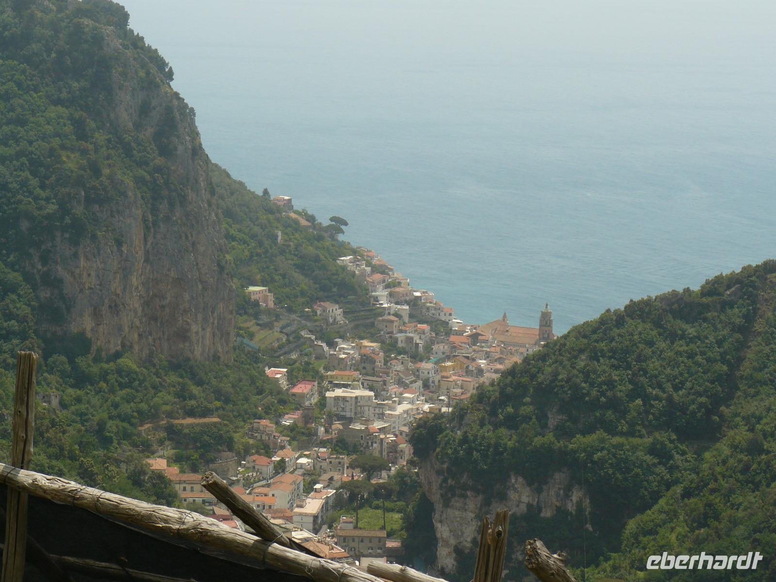 Am Nachmittag wanderten wir an weiteren Zitronenplantagen vorbei hinab ins hübsche Atrani. Dort gönnten wir uns ein wohlverdientes Eis, bevor wir nach Amalfi zurückkehrten. Noch vor unserem Ziel lachte uns ein paar Wanderstiefel mit breitem, geöffneten Rachen an - da hatte sich doch glatt ein Teil der Sohle verselbstständigt. Wir hatten Glück, denn in Amalfi fanden wir bequemen Ersatz für das ausgediente Stiefelpaar. Am Abend erreichten wir wieder unser angenehmes Hotel in Minori und ließen uns ein weiteres leckeres Abendessen munden.