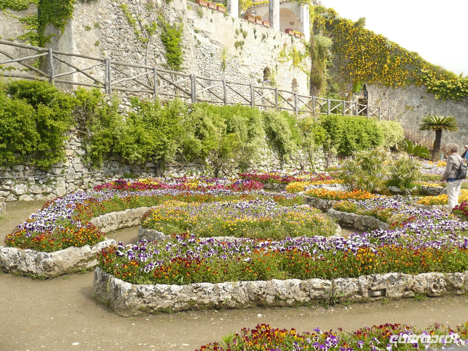 Ausgeschlafen mit gut gefülltem Magen überstanden nun alle unbeschadet die Serpentinenfahrt nach Ravello. Dort erfreuten wir uns der Blumen, der Aussicht und der alten Gemäuer der Villa Rufolo. Aus den Büschen erklang Musik von Richard Wagner - überall waren Lautsprecher zwischen Blumen und Sträuchern plaziert. Danach wanderten wir los nach Sambuco, weckten alle dort schlafenden Hunde auf und verließen den bellenden Ort auf einem alten Pflasterweg, der uns durch Esskastanienhaine hoch zum aussichtsreichen Klösterchen San Nicola führte. Lange leben hier oben schon keine Mönche mehr, dafür aber sehr viele Eidechsen mit grünem Rücken. Viele, viele Stufen, die unsere Kondition einer strengen Prüfung unterzogen, führten uns abwärts zum Agrituismo Villa Maria. Die Wolken rückten näher und 5 Minuten vor unserem Ziel bekamen wir eine unfreiwillige heftige Dusche ab. Mitten in einem Zitronenhain mit herrlicher Aussicht aufs Meer liegt die Villa Maria. Auf der Terrasse konnten wir unsere nassen Regenumhänge und Schirme trocknen, denn kaum waren wir angekommen, war der Schauer auch schon wieder vorüber. Anni, der Haushund lag in der Sonne und wartete auf Streicheleinheiten. Anni ist Genießerin und weiß die Gäste ihres Herrchens zu schätzen, räkelte und streckte sich und nahm jede Art von Streicheleinheiten dankbar entgegen.