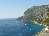 Wir wollten eigentlich oberhalb der Faraglioni-Inseln an einer aussichtsreichen Stelle unsere Picknickpause machen, aber heute hatten wir doch glatt 24 Grad und viel Sonne. So verlegten wir unser Picknick auf ein schattiges Mäuerchen am Hang. Auch dieses Mal war unser Mahl sättigend und lecker. Wer in Capri ausführlich bummeln und relaxen wollte, ging nun wieder direkt nach Capri zurück. Die anderen wanderten an der Villa Malaparte und an der Felsengrotte Matermania vorüber und erst dann zurück nach Capri. Hier trennten wir uns und jeder hatte noch genügend Zeit den Ort Capri für sich selbst zu genießen. Einige Gäste gingen zu Fuß zum Hafen hinunter, andere zogen es vor mit der Funicolare abwärts zu fahren. Am Hafen von Marina Grande trafen sich alle wieder und zum Abschluss besorgte ich noch Eis für alle. Das Wetter war herrlich und das Meer ruhig. Wir waren zwar nicht alleine auf dem Boot, genossen aber trotzdem mal wieder die Abendstimmung auf dem Wasser. In Minori angekommen verabschiedeten wir uns nun von unserer liebenswerten Danièlle und machten uns auf den Heimweg zum Hotel. Dann verabschiedeten wir die Langschläfer, denn die Berliner mussten zur Heimreise mal wieder früh aufstehen.