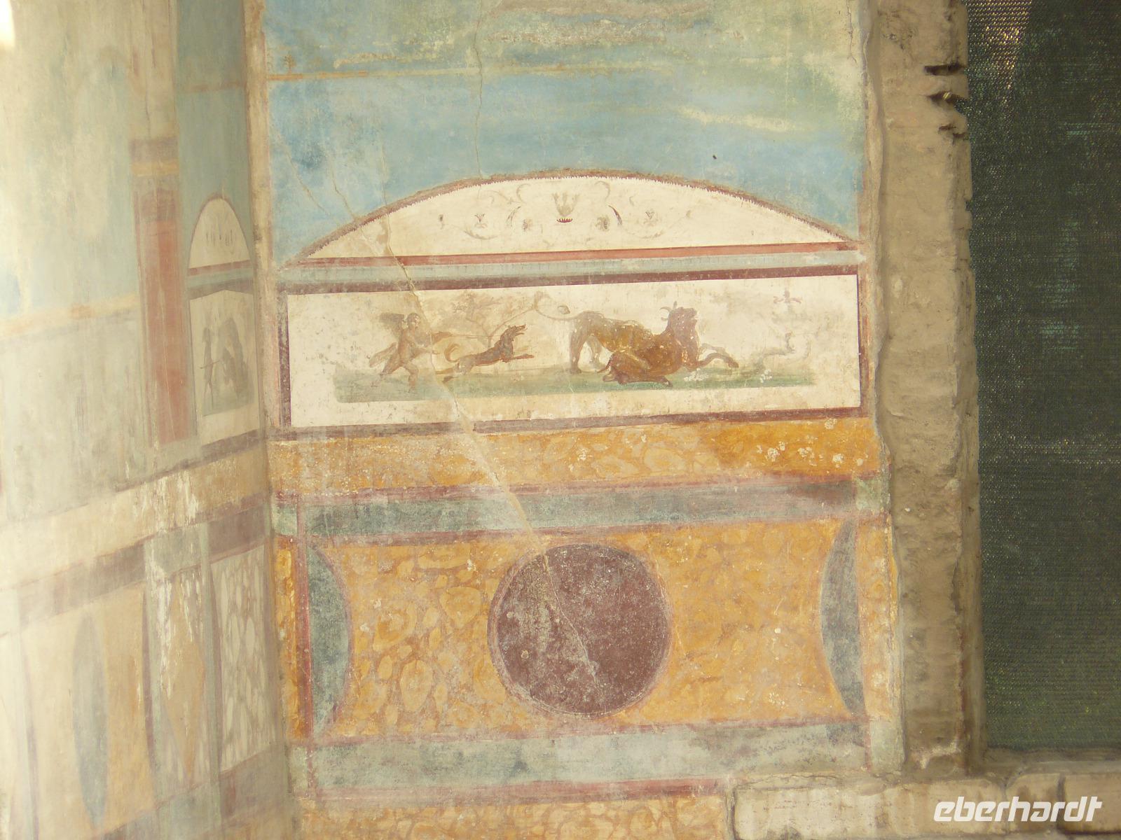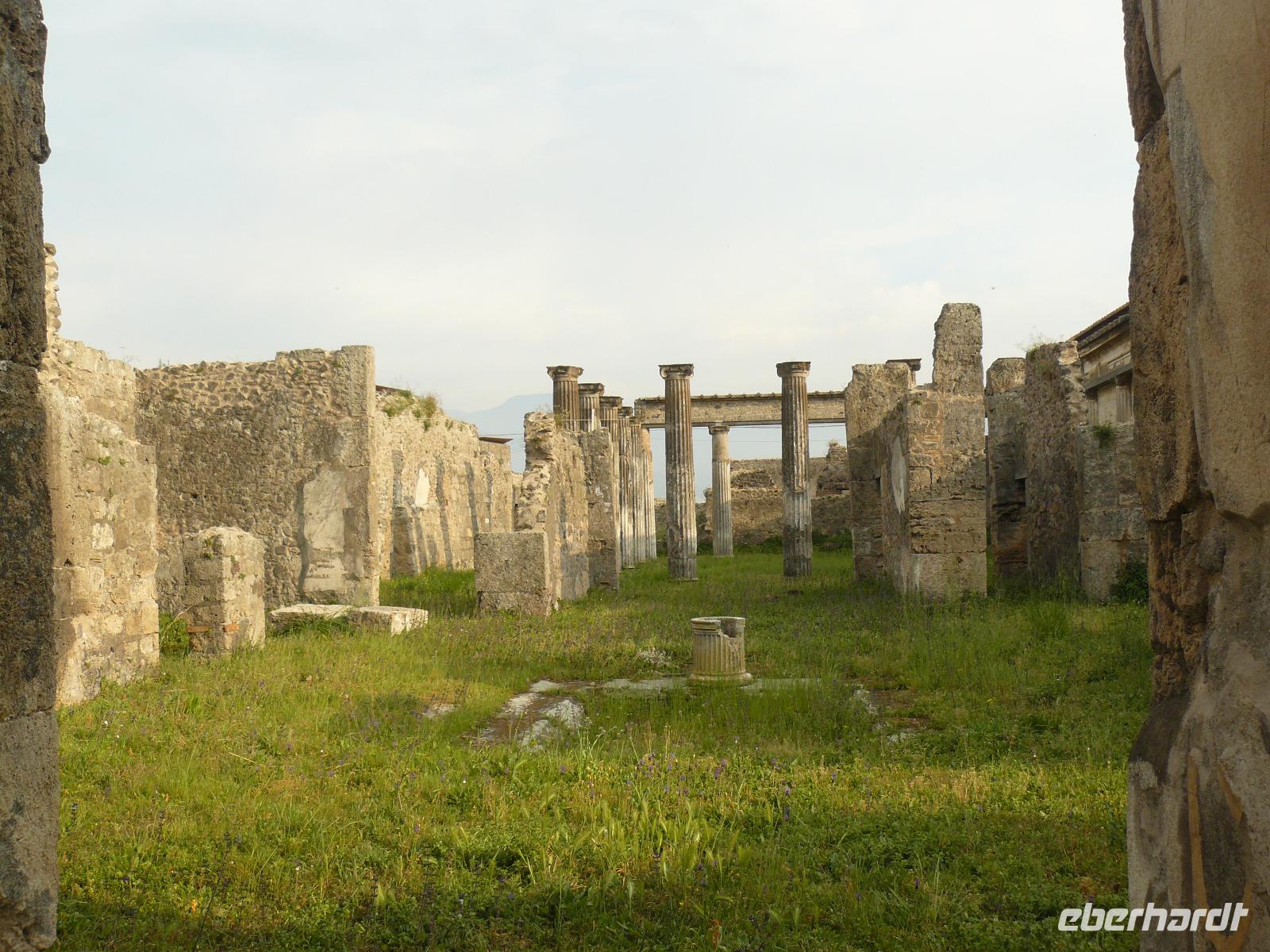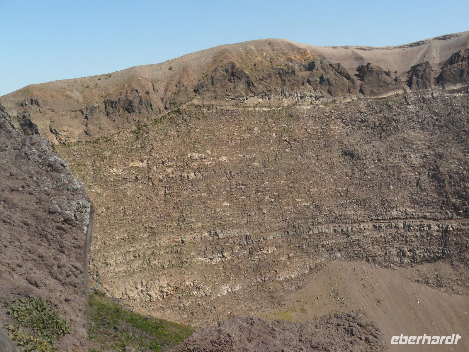 Regen war vorhergesagt für den Nachmittag. Das kannten wir noch gar nicht, denn während in Deutschland der Regen in dieser Woche unaufhörlich prasselte, waren wir bisher immer in der Sonne unterwegs gewesen. Am Morgen erwartete uns - allen Unkenrufen zum Trotz - blitzblauer Himmel . Fröhlich starteten wir in Richtung Neapel. Bei Torre del Greco verließen wir die Autobahn und wenig später schon quälte sich der Bus zwischen erstarrter Lava und Pinien aufwärts. Wir waren relativ früh aufgebrochen und so blieb uns aufwärts der große Gegenverkehr erspart. Unsere Suche nach dem passenden Örtchen gestaltete sich eher schwierig, aber auch hier fand sich eine Notlösung. Oben war es kühler als an der Küste. Wir waren gut gerüstet. Die Aussicht war herrlich. Uns zu Füßen erstreckte sich die Küstenebene von Neapel bis Pompeji, dahinter das Meer. Die Gipfel der Monte Latteri Berge ragten aus dem Dunst und erste Wölkchen tauchten auf. Italienische Schulklassen bevölkerten den Kraterrand, so dass wir manchmal Mühe hatten, dem interessanten Vortrag unserer Vesuvführung zu folgen. Ein letzter Blick, und es ging wieder abwärts. Nun fuhren wir um den Vulkan herum. Die alten Römer bauten überall Latrinen - ihre Nachkommen scheinen das wohl nicht nötig zu haben... Endlich - das passende Örtchen für jedermann war erreicht! Wir landeten mitten in den Weinbergen und vergnügten uns mit den Tränen Christi. Diese sind trinkbar und bestehen aus Wein. Und dazu gab es wieder etwas Leckeres zum Essen. Kaffee scheint hier allerdings ein wertvolles Gut zu sein. Am Nachmittag fuhren wir dann etwas beschwingt weiter in Richtung Pompeji. Dort erwartete uns Antonio und ließ uns an seinem großen Wissen über die Geschichte Pompejis teilhaben. Dass die Bewohner Pompejis einen flotten Lebenstil hatten, erfuhren wir und auch wie man sich bildlich über Sprachbarrieren hinweghalf. Wir folgten eindeutigen Wegweisern zu noch eindeutigeren Herbergen, besichtigten das Theater, Thermen, Villen und Märkte, ließen nebenher auch den leichten Regen, der uns viel schlimmer vorhergesagt worden war als er schließlich war, über uns ergehen und bestiegen schließlich voller neuer Eindrücke wieder den Bus, der uns dann südwärts zurück an die Amalfitana brachte, wo in unserem Hotel natürlich wieder ein sehr gutes Essen auf uns wartete, wie jeden Abend. Wir waren nun nicht mehr die einzige Gruppe im Hotel und die amerikanischen Hotelgäste sorgten jetzt dafür, dass Leben ins Hotel kam. Livemusik, viel Gelächter und lebendige Unterhaltungen am Nachbartisch und in den Fluren wurden uns von nun an reichlich geboten.