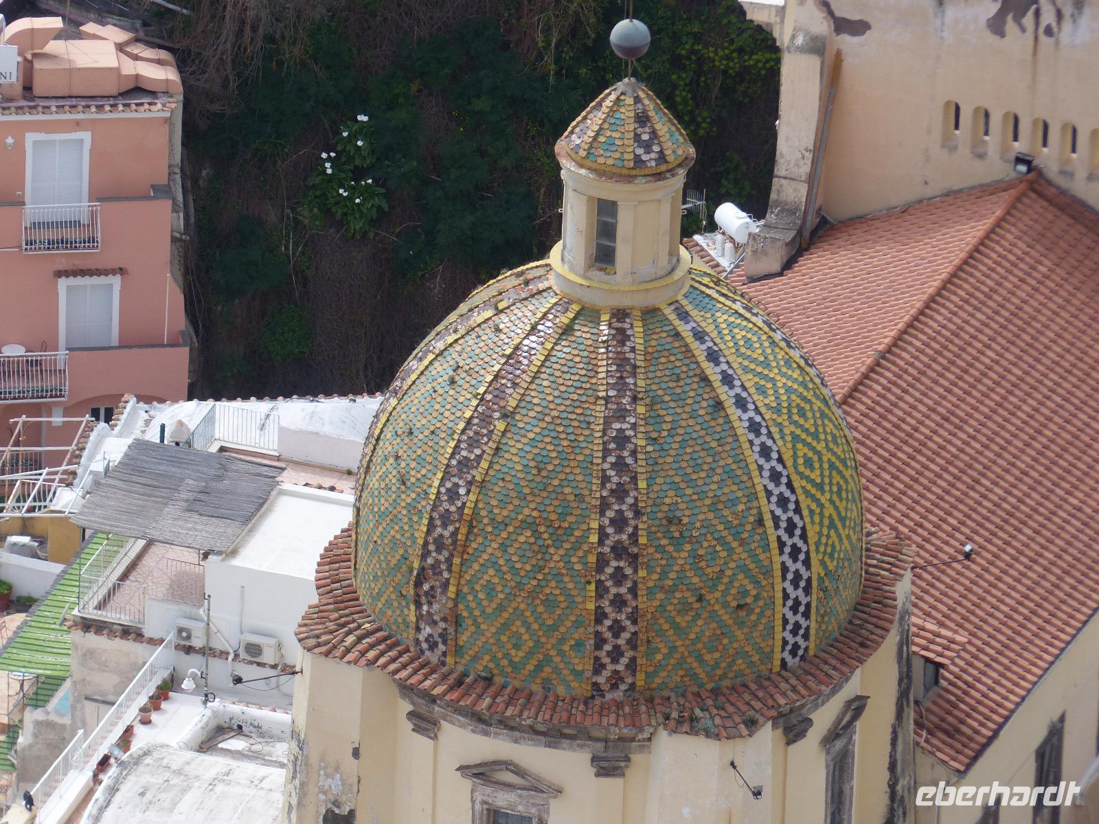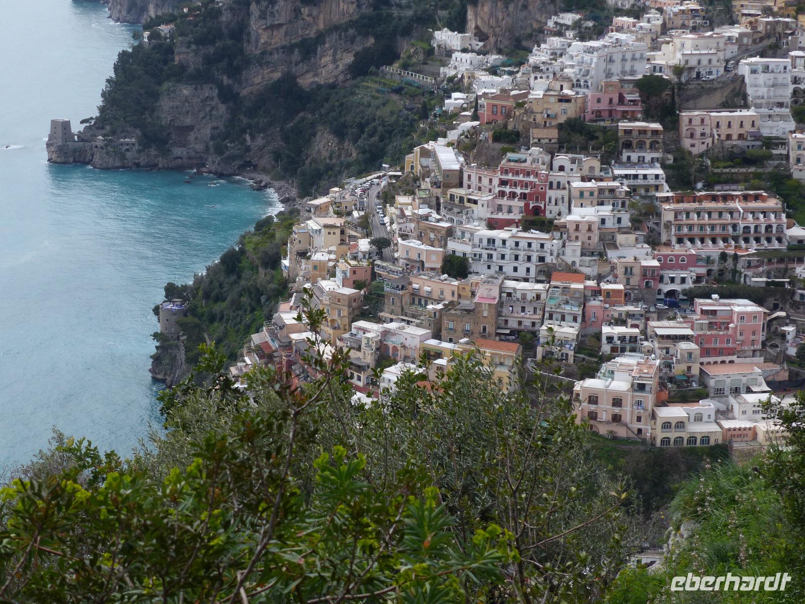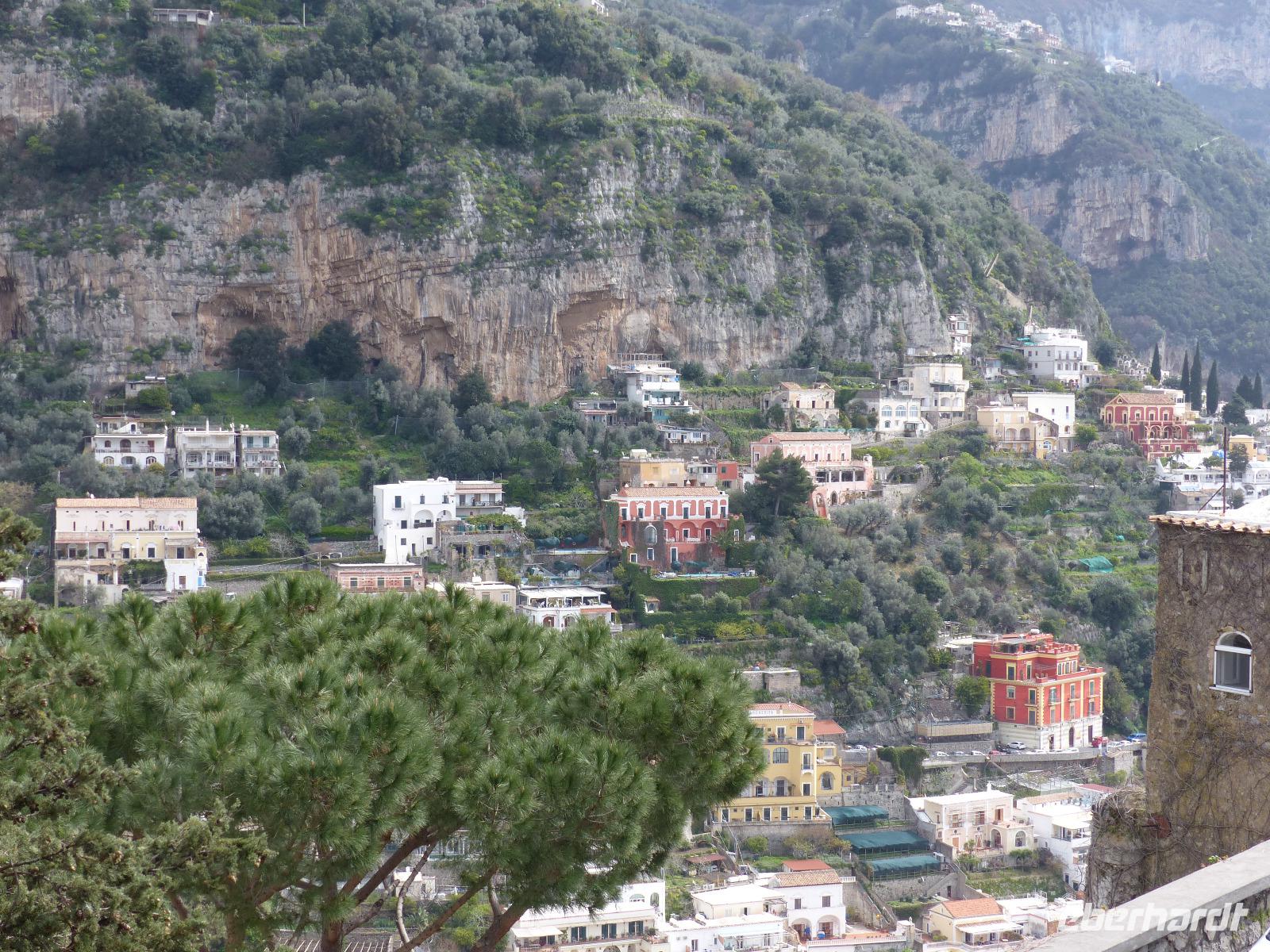 Eigentlich stand heute der Sentiero degli Dei - Der Wanderweg der Götter - auf unserem Programm. Aber (ich hatte es den Gästen schon vor der Reise mitgeteilt) ein Erdrutsch, der im Winter die Berge herunter kam, hatte dazu geführt, dass der Weg gesperrt wurde. Manche Mühlen mahlen langsam. Die Mühlen in den Gemeinden Positano und Praiano gehören da wohl dazu. Ostern. Hauptsaison. Aber keine offizielle Freigabe der Wanderung. Und ausgerechnet an diesem Tag hingen Wolken in den Bergen. Die Götter wollten keine Gesellschaft. Wir haben also umgeplant und starteten am östlichen Ortsrand von Positano. Hinab zum Hafen und wieder auf der Westseite hinauf. Herrliche Ausblicke aber viele Stufen und steiles Gelände. Positano ist gebaut wie ein Amphitheater. Unser Versuch ein Gruppenfoto zu machen brachte gewisse Schwierigkeiten mit sich, denn ein Fotograf sollte eigentlich in die richtige Richtung sehen. Soo zum Objekt hin... Der ältere Herr, der meine Kamera betrachtete wie eine eklige Spinne, hatte den gepflasterten Platz vor uns fest im Blick. Wir durften auch noch mit aufs Bild - am Rand. Aber man kann Bilder mit größerer Pixelanzahl ja zum Glück ausschneiden. Unsere Mittagspause verbrachten wir im verträumten Montepertuso. Eine herrliche Antipasti landete vor uns auf einem riesigen Teller. Und bald schon herrschte reger Andrang vor dem Damenklo. Wir bekamen sogar männlichen Geleitschutz - von Fenster des Damenklos hat man einfach die beste Aussicht weit und breit! Der gleiche Blick wie vom Sentiero degli Dei. Aber heute war das Wetter nun mal etwas schwieriger. Mausgrau. Und zu allem Überfluß klingelte dann auch noch mein Telefon - nein, heute fahren unsere kleinen Boote nicht. Die Wellen sind zu groß. Das große Linienschiff fährt aber.... oh je, ich werde doch so leicht seekrank, hörte ich es raunen. Alle haben diese Fahrt trotz Wellen gut überstanden und genossen am Abend wieder das leckere Essen im Hotel.