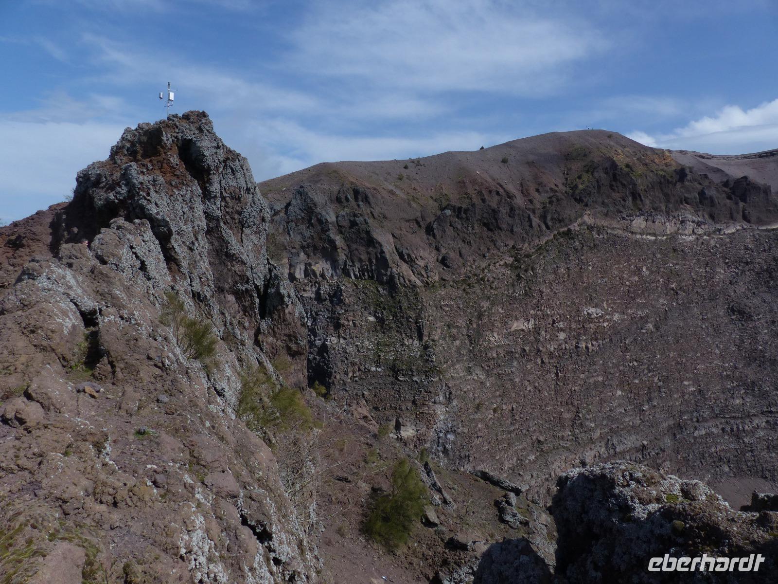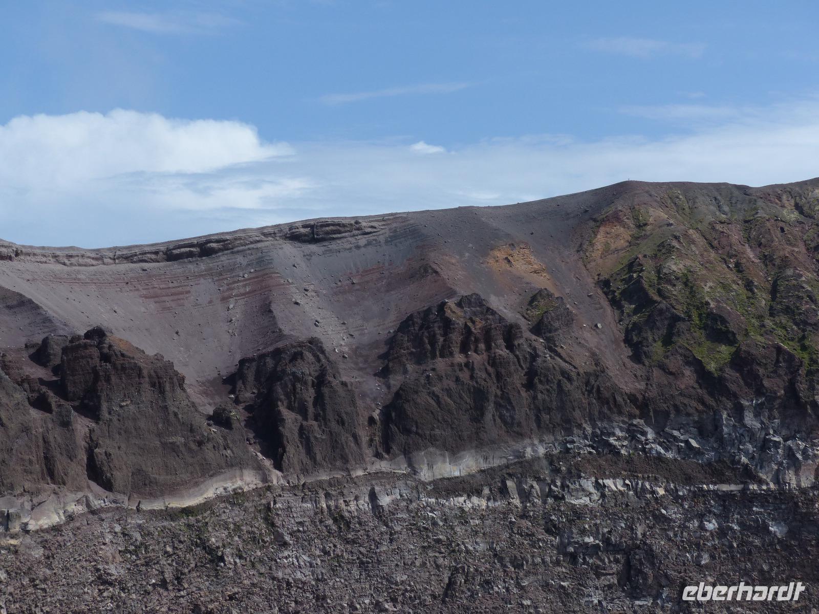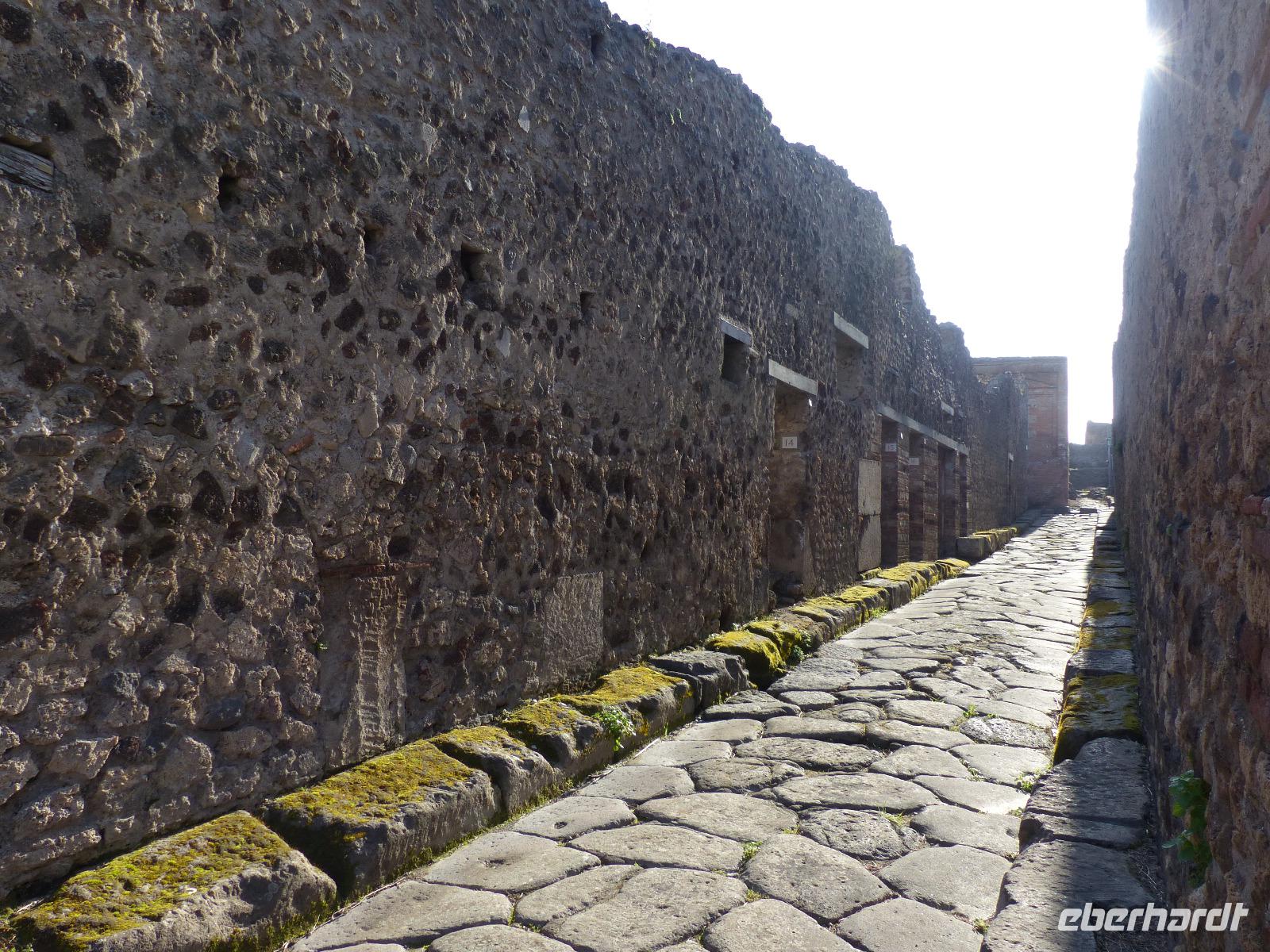 Regen war vorhergesagt für den Vormittag. Aber allen Unkenrufen zum Trotz war das Wetter an der Küste freundlich und wir starteten voller Erwartungen in Richtung Neapel. Bei Torre del Greco verließen wir die Autobahn und wenig später schon quälte sich der Bus zwischen erstarrter Lava und Pinien aufwärts. Die Spuren des Feuers aus dem letzten Sommer waren noch gut sichtbar, aber die Natur erobert sich ihr Territorium zurück. Und die Brandzone liegt weit weg von unserem Ziel, am Fuße des Berges. Oben war es kühler als an der Küste, aber lange nicht so kühl wie wir erwartet hatten. Ich hatte Handschuhe mitgebracht, die ich nun doch recht schnell im Rucksack verschwinden ließ. Wir hatten zunächst noch Aussicht bis nach Neapel hinunter. Dann tauchten Wolkenfetzen auf und es entstand eine mystische Stimmung. Der Vesuv wirkte wie ein riesiger Suppenkessel. Schulklassen bevölkerten den Kraterrand, so dass wir manchmal Mühe hatten, dem interessanten Vortrag unserer Vesuvführerin Julia zu folgen. Leopoldo, unser geduldiger Busfahrer, wurde nun gefordert, denn unsere Weinverkostung fand an Ende eines sehr schmalen Sträßchens statt. Wir landeten in einem kleinen Weinberg, verborgen hinter hohen Mauern und vergnügten uns mit den Tränen Christi. Diese sind trinkbar und bestehen aus Wein. Und dazu gab es wieder etwas Leckeres zu Essen. Und eine herzliche Dame, die uns sehr gut verköstigte, führte uns auch durch die Kelterei und erklärte uns wie man Weinstöcke verjüngt. Manch einer nahm die Tränen von Christus sorgfältig verpackt im Koffer mit nach Hause. Am Nachmittag fuhren wir dann etwas beschwingt weiter in Richtung Pompei. Dort erwartete uns Alphonso. Dass die Bewohner Pompeis einen flotten Lebenstil hatten, erfuhren wir und auch wie man sich bildlich über Sprachbarrieren hinweghalf. Wir folgten eindeutigen Wegweisern zu noch eindeutigeren Herbergen, besichtigten Tempel, Märkte und das Theater, und sangen mit einer amerikanischen Reisegruppe um die Wette.