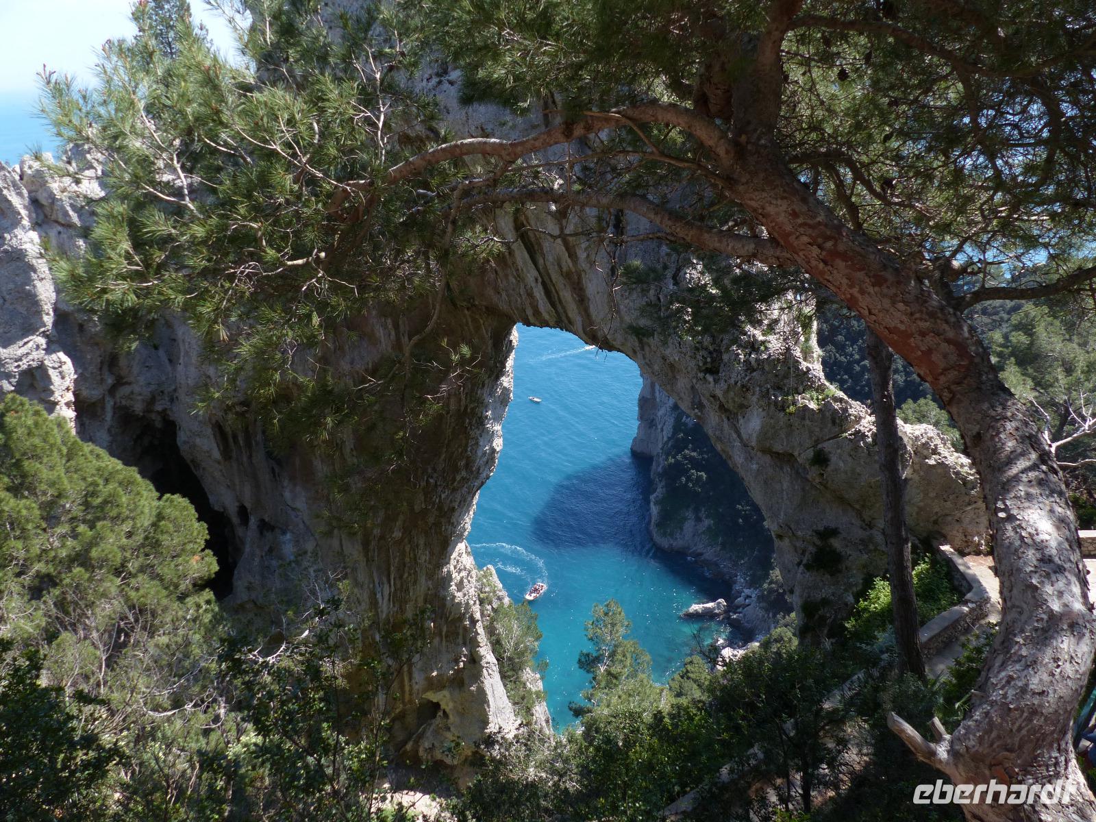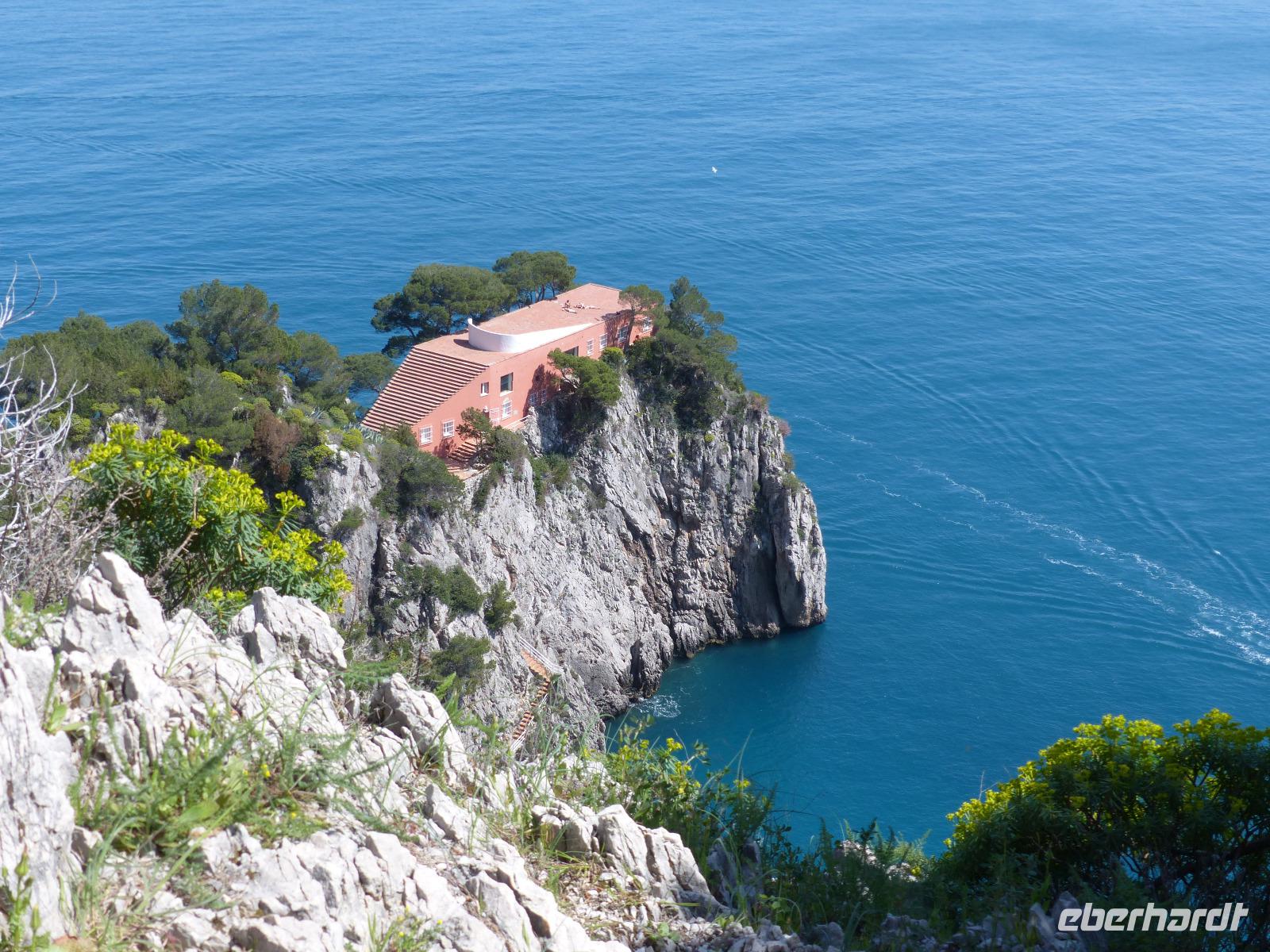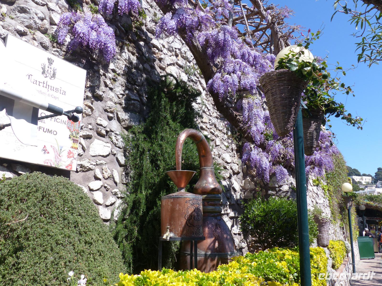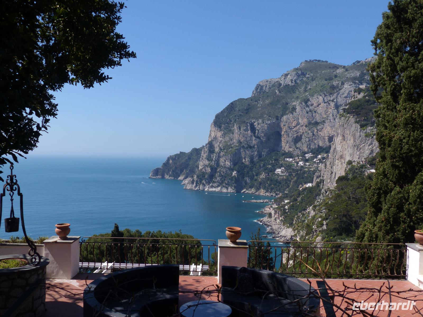 "Ich war schon mal auf Capri und freue mich heute mal Zeit für mich selbst zu haben". Aber nur 2 Gäste blieben zurück, alle anderen kamen mit. Unser Bus zum Schiff fuhr schon vor 8 Uhr, denn der Pier in Minori hielt noch Winterschlaf und daher legten hier keine Schiffe an. Wir waren die ersten Gäste an Bord in Maiori und konnten uns die Plätze aussuchen. Dann fuhren wir über Amalfi und Positano nach Capri. Dort fuhren wir an der Südküste entlang, bekammen die Weiße Grotte gezeigt und sahen hinauf zur Villa Malapartes. Dann näherten wir uns den berühmten Faraglioni-Inseln. Und nun bekamen wir gleich noch eine Inselrundfahrt per Schiff geboten. Das Boot umrundete Capri. Auf dem Schiff hatte ich erfahren, dass die Funicolare-Bahn wegen Reparaturarbeiten außer Betrieb und die Busse total überfüllt wären. In Marina Grande besorgte ich ein Picknick und ab ging's dann eben zu Fuß hoch auf den Hauptplatz von Capri. Wir spazierten über den Bergrücken zu den Augustusgärten und genossen den Ausblick auf die Via Krupp, die sich im wahrsten Sinne des Wortes nach Marina Piccola den Hang hinunter schlängelt. Dann starteten wir mit unserer Wanderung. Nun lachte für uns die Sonne und das Meer schimmerte in türkisblauen Tönen. „Ach was sind diese Paninis doch lecker!" Auch dieses Mal war unser Mahl sehr gut. Dann wanderten wir an der Villa Malaparte vorüber, stiegen hoch zur Grotte Matermania und machten einen Abstecher zum Felsentor Arco Naturale. Uff - so viele Stufen! Sie lagen zwar im Schatten aber heute war es wirklich warm. Die Sonnencreme floss in Strömen. Dann wanderten wir zurück nach Capri. Hier trennten wir uns, denn einige Gäste wollten den Nachmittag etwas ruhiger angehen. Die anderen wanderten noch weiter mit mir hoch zur Villa Jovis. Wir genossen die Aussicht auf die Küste und durchschritten das Zuhause von Kaiser Tiberius. Dann ging's abwärts, an herrlich blühenden Gärten vorüber zu Fuß zum Hafen hinunter. Am Hafen von Marina Grande trafen wir uns alle wieder und zum Abschluss besorgte ich noch Eis für alle. Das Meer war ruhig und wir genossen die Abendstimmung auf dem Wasser bei unserer Rückreise per Boot. Von Maiori aus ging es wieder per Bus nach Minori zurück. Was für ein schöner Tag war dies doch gewesen!