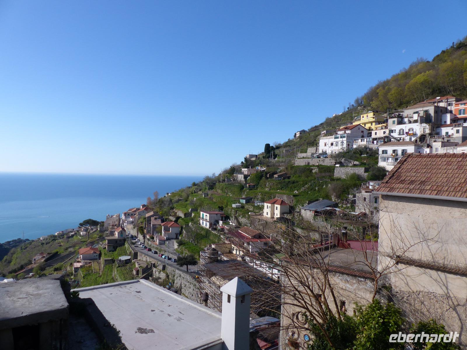 Schließlich bestiegen wir voller neuer Eindrücke wieder den Bus, der uns dann südwärts zurück an die Amalfitana brachte. Auf meinen Wunsch hin wählten wir die Bergroute über Tramonti mit herrlichem Blick auf die Küstenebene und den Vesuv. In unserem Hotel wartete natürlich am Abend wieder ein sehr gutes Essen auf uns.
