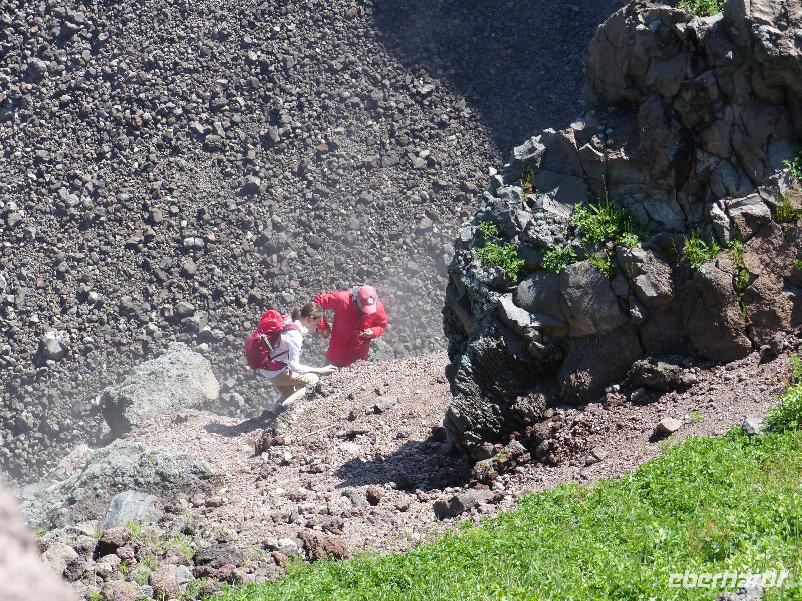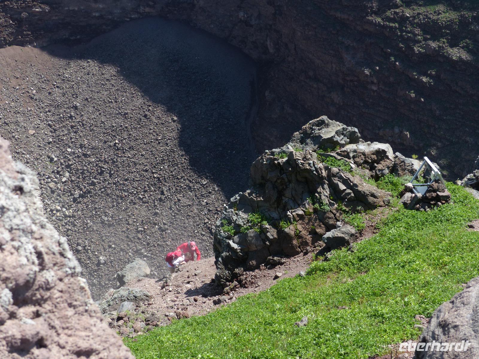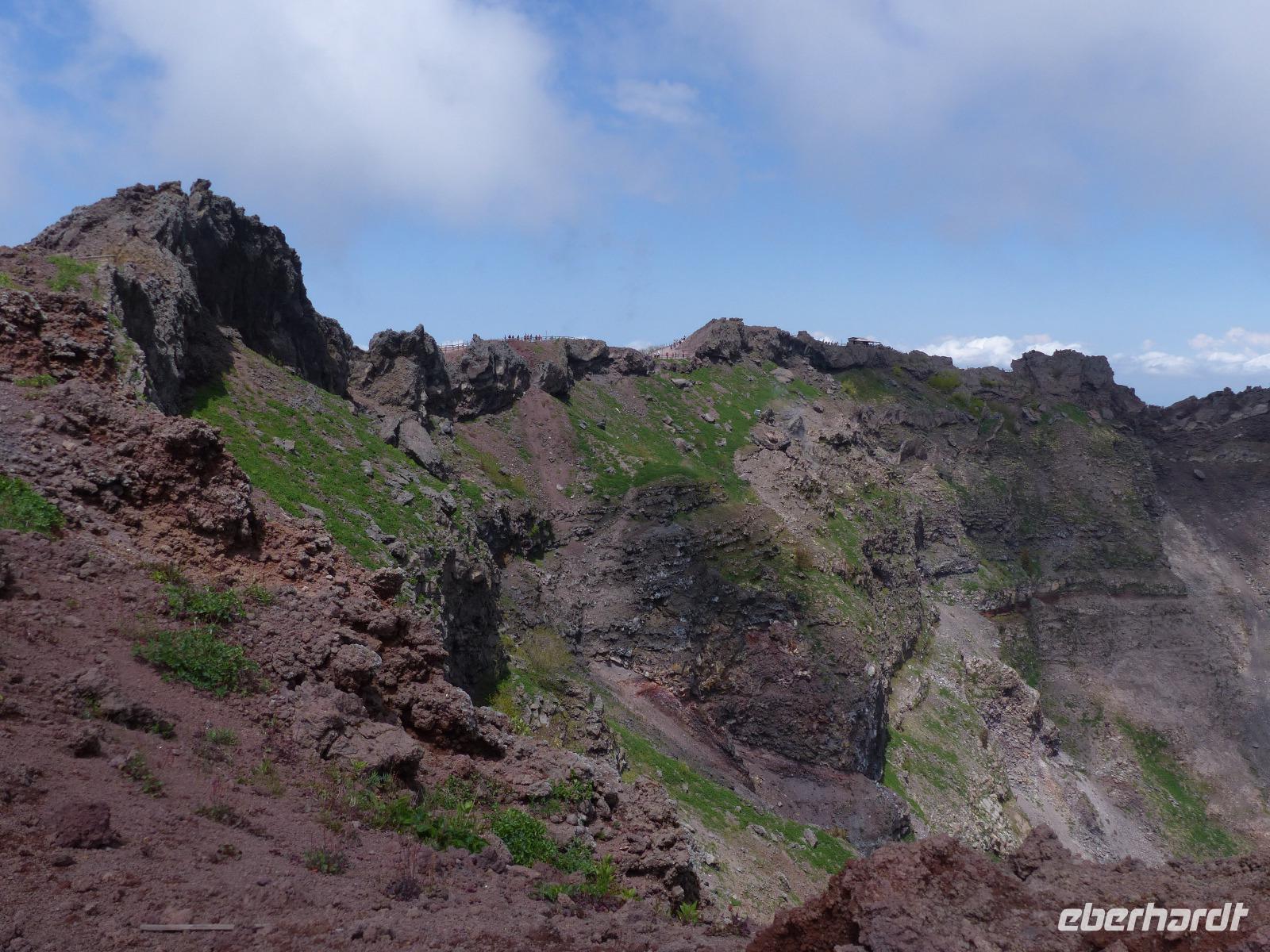 Einige Gäste kannten den Vesuv und Pompei schon und zogen heute getrennt los. Die anderen starteten mit mir auf der Küstenstraße in Richtung Vietri sul Mare und genossen die herrlichen Blicke auf die Küste. Dann sausten wir über die Autobahn zum Vesuv. Nach den schlechten Erfahrungen mit dem wichtigsten Örtchen der Welt bei der letzten Reise ließ ich von Franco, unserem souveränen und netten Busfahrer zunächst mal ein Restaurant suchen, das bereit war uns dieses Problem gegen ein kleines Entgelt lösen zu lassen und uns ganz nebenbei auch noch einen guten Espresso bot. Dann fuhren wir hoch bis zum Parkplatz. Die Dixis waren zwar wieder da, aber die Duftnote bestätigte mich in meinem Beschluss, zukünftig nicht mehr auf dieses Örtchen zurückzugreifen. Wir hatten mal wieder Glück: „Heute ist der erste Tag seit einer Woche mit Aussicht aufs Meer", wurde uns mitgeteilt. Im Krater kletterte ein Filmteam herum. Der Vulkan schlummerte ruhig vor sich hin. Nichts brodelte, nichts blubberte. Ruhig ist der Vesuv aber in seinem Inneren ganz und gar nicht. Geologen haben den schlafenden Riesen ständig im Blick. „Momentan verursachen uns die nördlich von Neapel gelegenen Phlegräischen Felder aber mehr Sorgen", teilte man uns mit. „Dort braut sich was zusammen. Wir wissen gerade noch nicht, was genau passieren wird..." Noch besteht keine akute Gefahr, aber die Geologen müssen wachsam sein, denn die Großstadt Neapel zu evakuieren - das ist sicher keine einfache Aufgabe. Wir hörten uns all die interessanten Erklärungen an, schauten die alten Fotos an, die den Vulkan noch vor den Ausbrüchen von 1906 und 1944 zeigen und zogen schließlich wieder bergab zu unserer Weinprobe. Wein & Bruschetta und danach Wein & Pasta - welch ein Genuss! Die Tränen Christi. So wird der Wein genannt, der am Vesuv wächst. Der Wein hatte seine Wirkung nicht verfehlt. Franco bekam im Bus ein Konzert zu hören: „Funicoli-Funicola...", „Volare, oho...", „Zwei kleine Italiener, die träumen von Napoli...", „Wenn bei Capri die rote Sonne im Meer versinkt..." Wir gaben uns Mühe. Mit guter Laune und roten Bäckchen erreichten wir Pompei. Pepe nahm uns hier in Empfang und erzählte uns viele Details über die verschüttete Stadt und führte uns an den Gladiatorenunterkünften vorüber zu den Thermen, durch das Theater, zum Forum mit seinen Tempeln und Märkten. Am Forum warfen wir einen Blick auf die Gipsfiguren, die die gefundenen Hohlräume abbilden, die die Toten in Pompei hinterlassen haben. Ein Hund, ein Kind, ein Mann. So wie sie diese Welt verließen. Auch in die Villa des Fauns gingen wir, und - ja zu dem Ort, an dem früher ein ganz bestimmtes Gewerbe blühte. Selbst nach fast 2000 Jahren kann man anhand der Wandgemälde gut erkennen welche Dienstleitungen die Damen damals so angeboten haben. Die Steinliegen sahen aber nicht echt einladend aus. Wir zogen schmunzelnd weiter zurück zum Bus. Und bald schon flitzten wir mit Franco über die Autobahn. Dann überquerten wir das Gebirge mit einem herrlichen Blick auf den Vesuv, bevor wir durch das Bergdorf Tramonti wieder zur Küste hinabrollten. Und wie immer wartete ein gutes Essen in Minori auf uns.