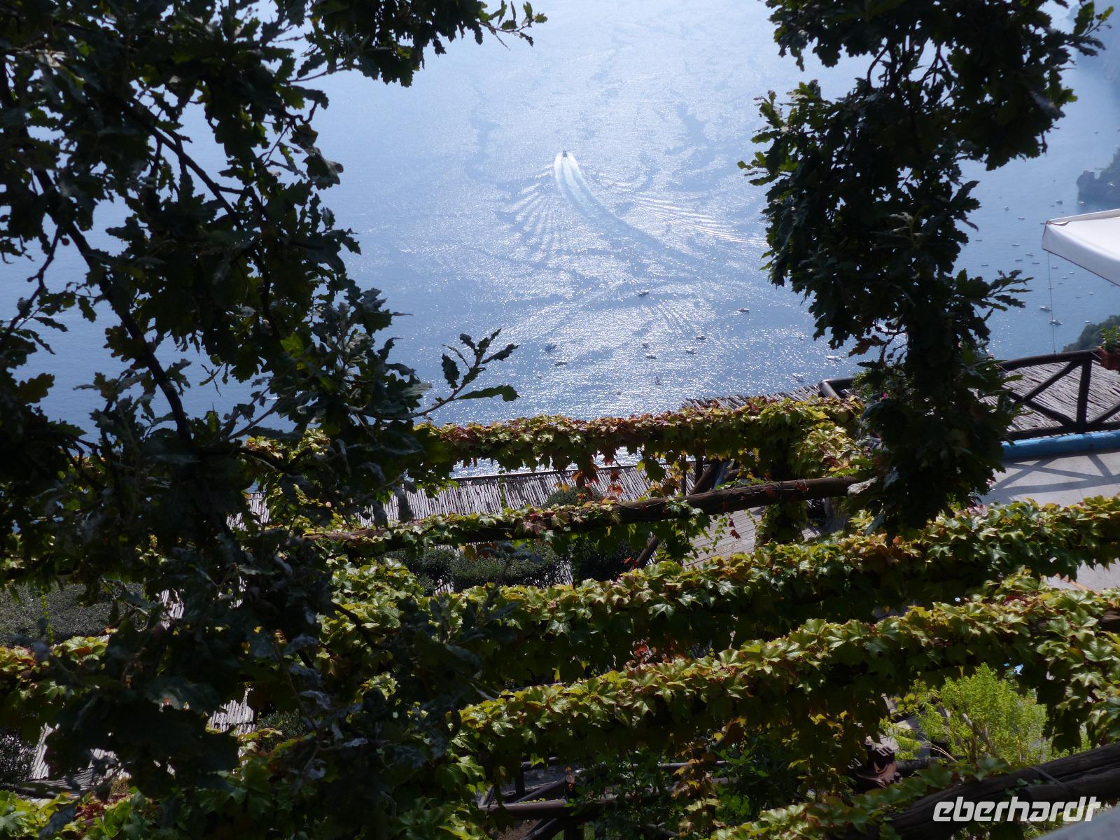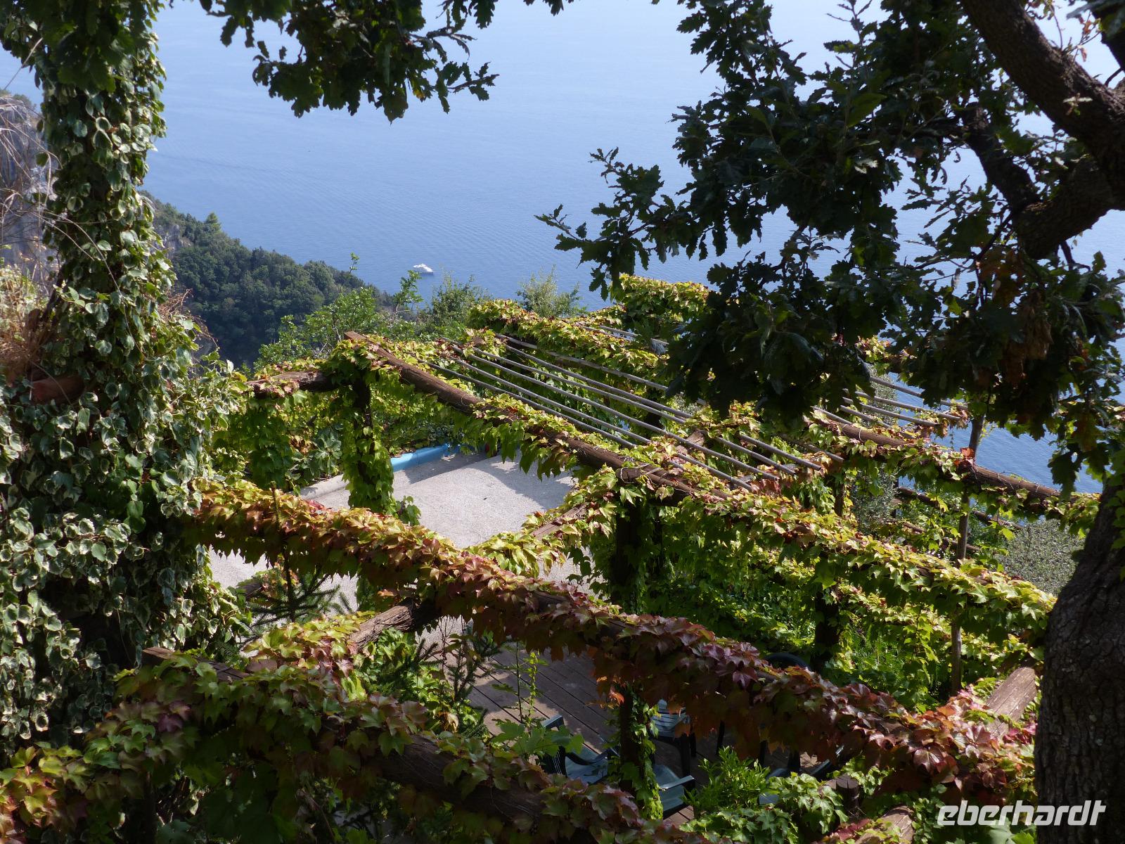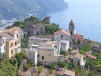 Mit unserem Bus fuhren wir am Morgen hoch nach Ravello. Die Straße ist eng und der Verkehr war gewöhnungsbedürftig. Oben angekommen besuchten wir den farbenprächtig ausgestatteten Dom. Dann wanderten wir durch den Ort und schauten uns die Blumen, die schöne Aussicht und die malerisch platzierten Plastiken im Park der Villa Cimbrone an. Hier stand Romy Schneider als Sissi vor der Kamera. Danach starteten wir zu unserer Wanderung. Auf einem ruhigen Weg spazierten wir rund um Ravello herum abwärts nach Torello. Ein Treppenpfad führte uns zwischen Reben, Oliven und Blumen nun hinunter nach Minori. Dann mussten wir zur Villa Maria wieder aufsteigen. Zwei von uns hatten dazu keine Lust und sie landeten bald schon am Strand. Die anderen schwitzten nun kräftig, denn trotz geküsstem Boden und Blasen an den Füßen - ans Aufgeben dachten die meisten Gäste nicht. Oben erwartete uns dann frischer, gesüßter Zitronensaft in der aussichtsreichen Villa Maria und ein leckeres Menü mit Lasagne und Zitronentiramisu. Das war der Mühe Lohn, und der gefiel uns gut. In diesen leckeren Nachtisch hatten Maria und Vicenzo selbst hergestellten Limoncello verarbeitet. Und einige von uns erprobten den hausgemachten Limoncello noch ohne Tiramisu, der ihnen so gut schmeckte, dass er teils sogar mit ins Reisegepäck wanderte. Nur die frischen Zitronen überlebten diese Woche nicht gut und kamen nie am Ziel an. Am Nachmittag zogen wir wieder abwärts und nach einem Abstecher ins Hotel lockte die meisten von uns wieder der Strand, einige aber schauten sich auch die römische Villa in Minori an, die nur zur Hälfte ausgegraben ist, weil auf ihrer anderen Hälfte neuere Häuser stehen. Und am Abend erwartete uns mal wieder ein leckeres Essen.