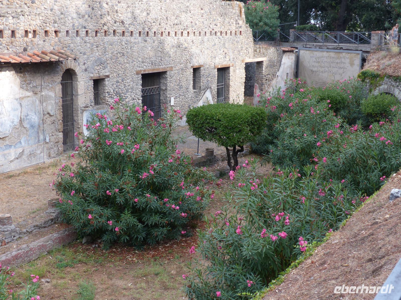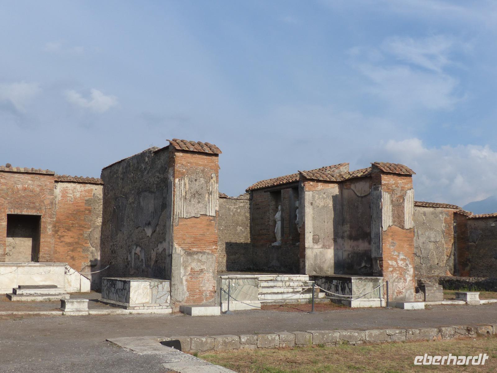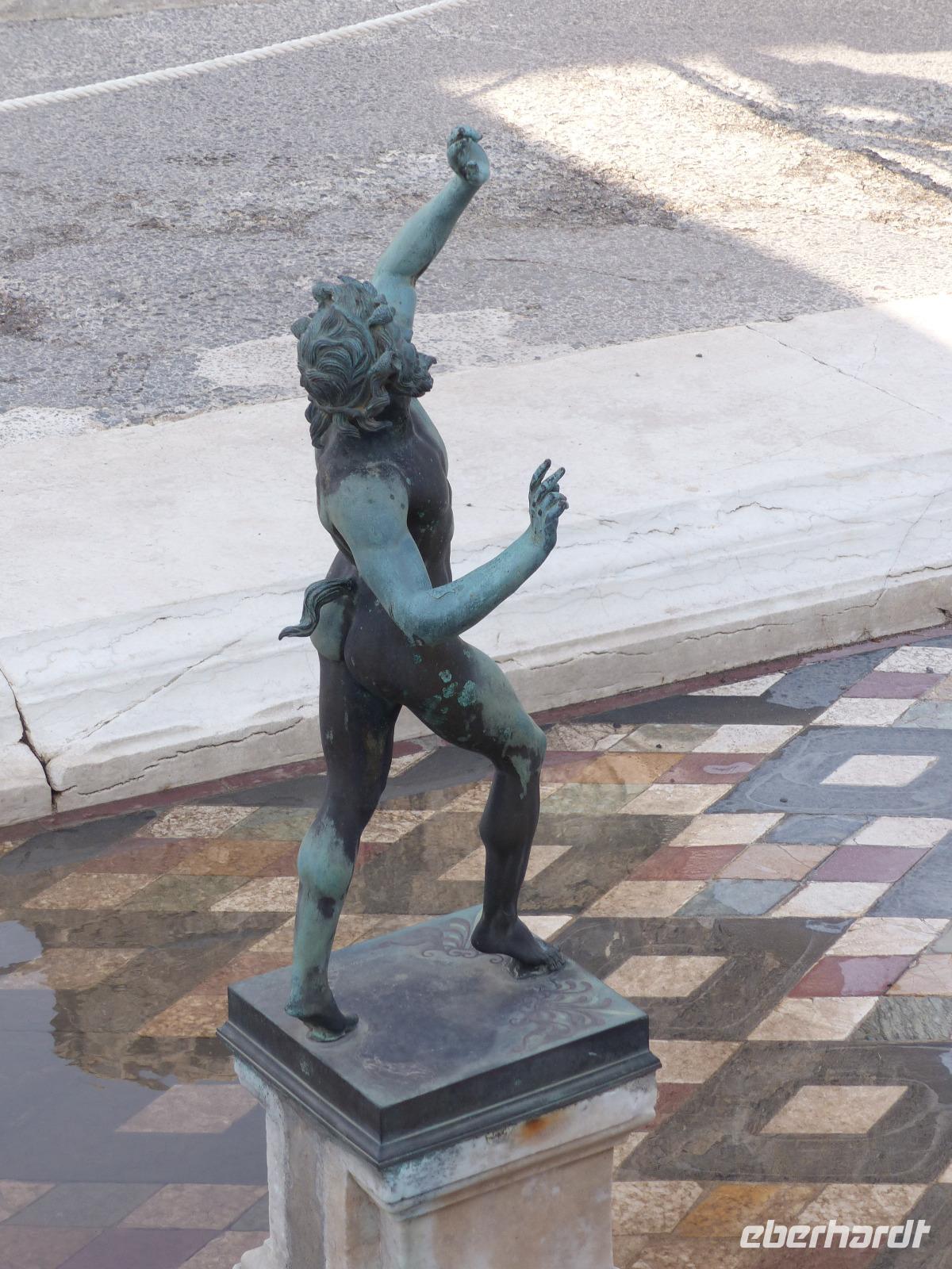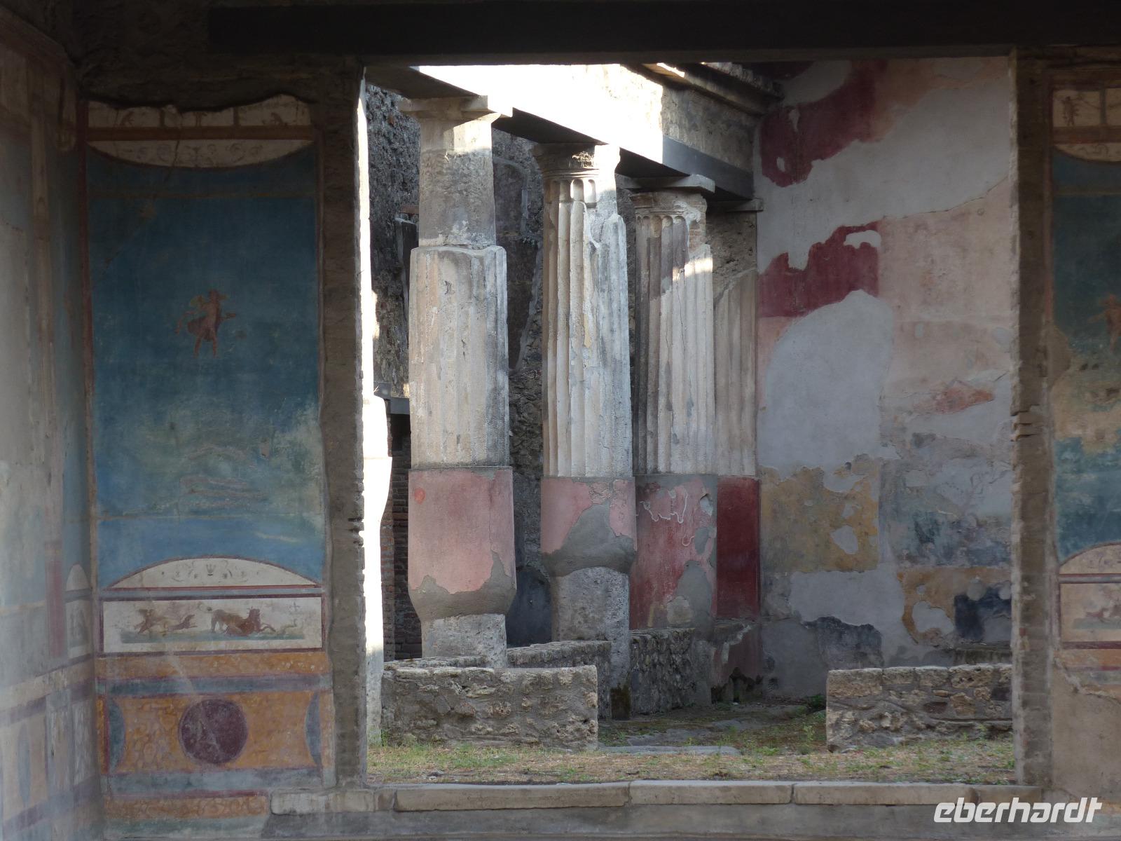 Die Blasen an der Ferse plagten einen Gast doch sehr und so zogen wir nicht ganz vollständig los. Ein anderer hatte sich vor ein paar Tagen schon einige weniger schöne blaue Flecken an der Wade zugezogen, ließ sich aber von diesen nicht zurückhalten. Wir starteten also auf der Küstenstraße in Richtung Vietri sul Mare, genossen die herrlichen Blicke auf die Küste und die Tatsache, dass wir hier selbst nicht hinterm Steuer saßen. Dann sausten wir über die Autobahn zum Vesuv und fuhren hoch bis zum Parkplatz. Die Wettervorhersage war nicht gut und die Wolkenberge wirkten ein bisschen bedrohlich. „Um 12 Uhr geht's los, dann solltet Ihr nicht mehr oben sein" sagte mir ein Ortskundiger. Wir verzichteten also auf die Führung am Kraterrand und gingen direkt hoch bis zur Bergstation der Funicolare, genauer gesagt zu dem was von ihr nach dem letzten Vulkanausbruch 1944 noch übrig ist. Ein paar Blicke in den Krater hinein, ein paar Blicke nach Neapel runter an die Küste - und ab ging's in flottem Schritt den Berg wieder hinunter. Um 11:45 Uhr fielen die ersten Tropfen, aber bevor es richtig losging mit dem Gewitter saßen wir wieder im Bus und fuhren abwärts. Raffaele, unser Fahrer, hatte ein bisschen Mühe unser nächstes Ziel zu finden, denn das Weingut der Familie Setara liegt ziemlich gut versteckt in einem sehr engen Sträßchen. Wie hat man das früher bloß geschafft, als es noch keine Handys gab...? Raffaele bekam übers Telefon den Weg erklärt. Wir erprobten nun die Tränen Christi. So wird der Wein genannt, der am Vesuv wächst. Und dazu gab es wieder etwas Leckeres zum Essen. Am Nachmittag folgte dann ein Besuch in Pompei. „Weiter!" - dieses Wort wird uns in Erinnerung bleiben. Antonio beförderte uns im Sauseschritt durch die Überreste der antiken Stadt. Sein Wissen, das er mit uns teilen wollte, war sehr groß. Und seine Schritte auch. Das Marinetor, die Basilika, der Apollontempel, das Forum, das Macellum, die Villa des Fauns, eine Bäckerei, die Thermen, das Freudenhaus, das Odeon, die Gladiatorenunterkünfte - überall sind wir gewesen. Und alles wurde uns von Antonio in Windeseile erklärt. Am Forum warfen wir auch einen Blick auf die Gipsfiguren, die die gefundenen Hohlräume abbilden, die die Toten in Pompei hinterlassen haben. Ein Hund, ein Kind, ein Mann. So wie sie diese Welt verließen. Müde aber voller neuer Eindrücke erreichten wir am Abend unseren Bus und bald schon flitzten wir über die Autobahn und fuhren am Abend über die Monte Lateri, die Milchberge, hoch auf einen Pass, der uns durch die Bergdörfer Tramonti brachte, die im Gebirge zwischen Weinbergen zerstreut liegen. Heute Abend blieb uns keine Zeit zum Baden, aber ein gutes Essen wartete wie immer auf uns.