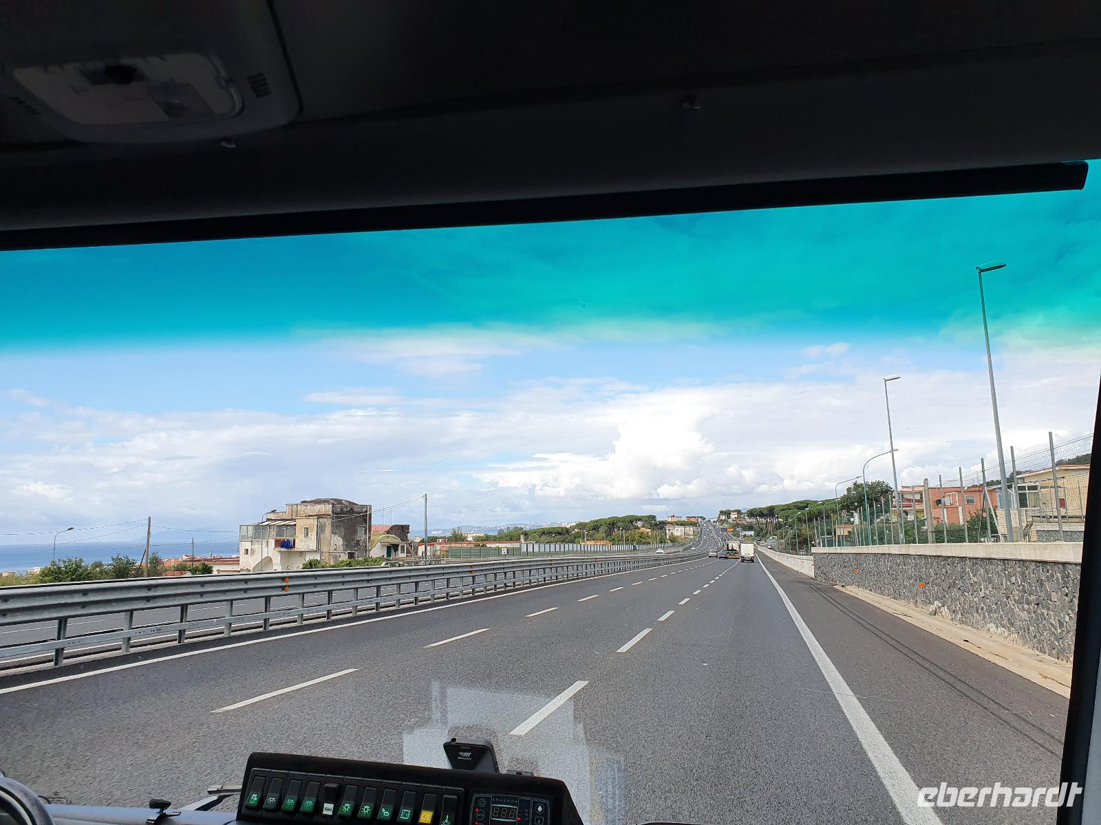 Wir geniessen noch einmal das üppige Frühstück, packen unsere Koffer und fliegen wieder mit verschiedenen Maschine zurück nach Zürich, München, Frankfurt und Stuttgart. Unsere Koffer werden zum Hafen transportiert und mit dem Bus fahren wir noch einmal über die Monti Lattari zum Flughafen nach Neapel. 2 Damen haben einen gesonderten Transfer und sie verbringen die Zeit bis zur Abholung am Hafen in Minori mit den Katzen und im Cafe. Am Flughafen in Neapel müssen wir wieder eine Erklärung zu Cov19 ausfüllen und die Masken werden kontrolliert. Dann heisst es Abschied nehmen von den Gästen, die nach Zürich und Stuttgart fliegen. Als unsere LH Maschine landet, steigen nur 30 Personen aus, denn die Region Kampanien wurde ab 17.10.20 als Risikogebiet eingestuft. Für uns bedeutet das, zu Hause oder noch am Flughafen einen Coronatest zu machen und bis zum Vorliegen eines negativen Testergebnisses sich zu isolieren.