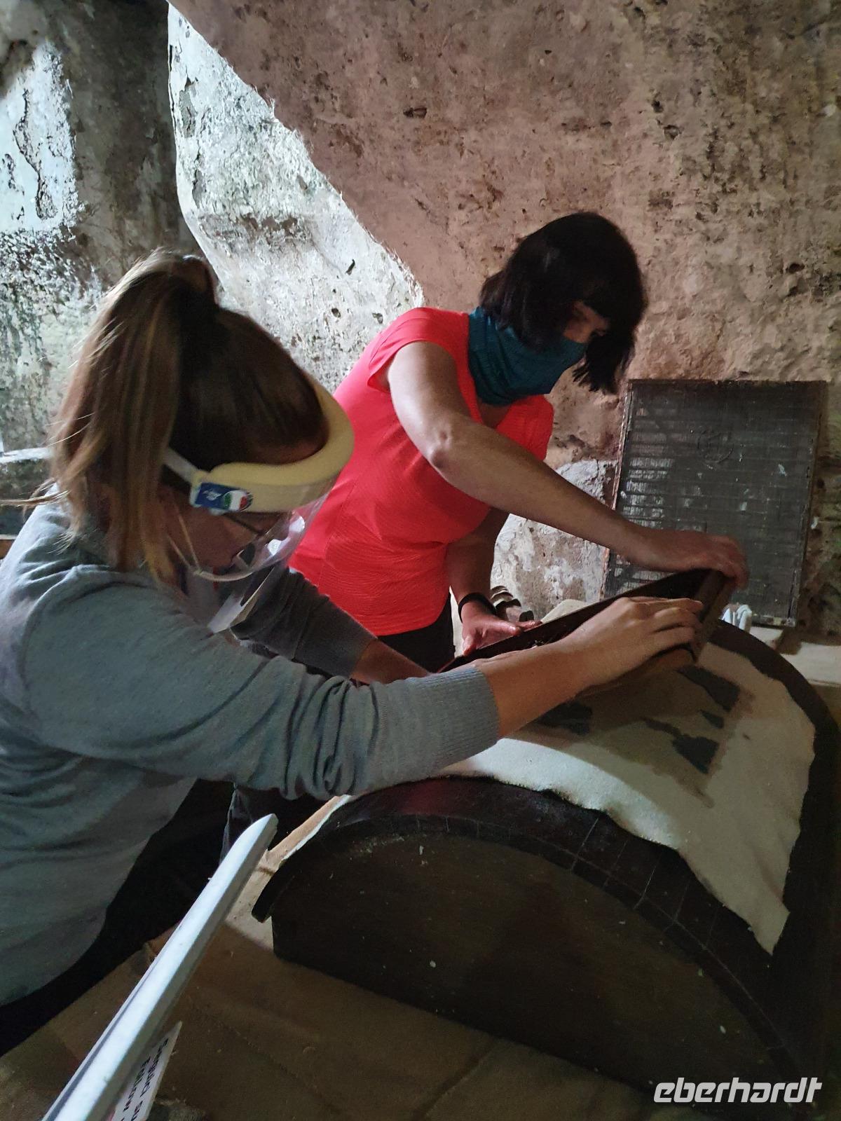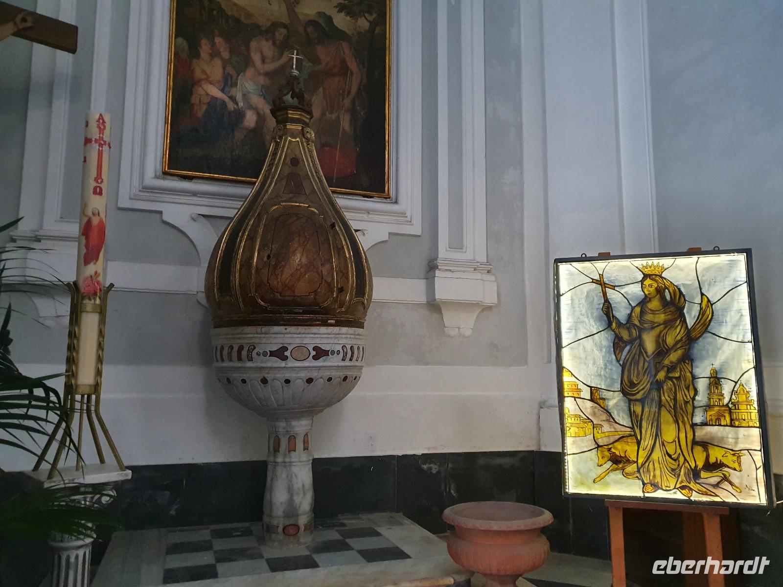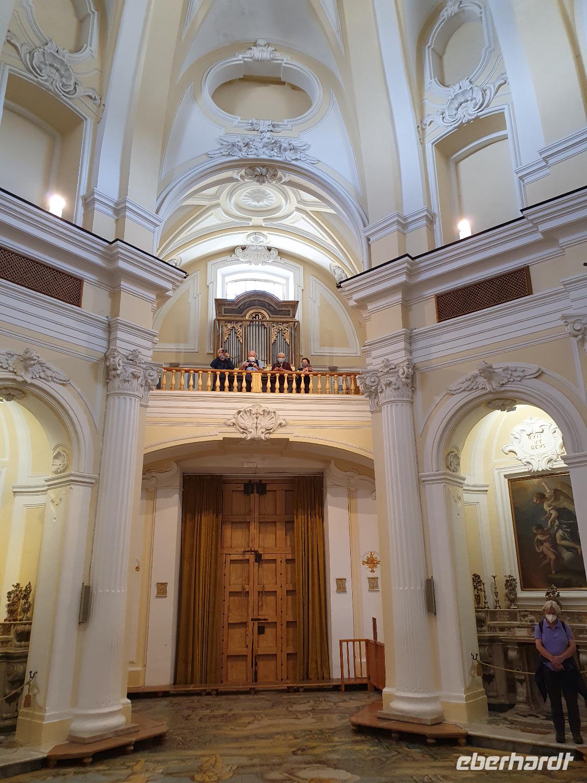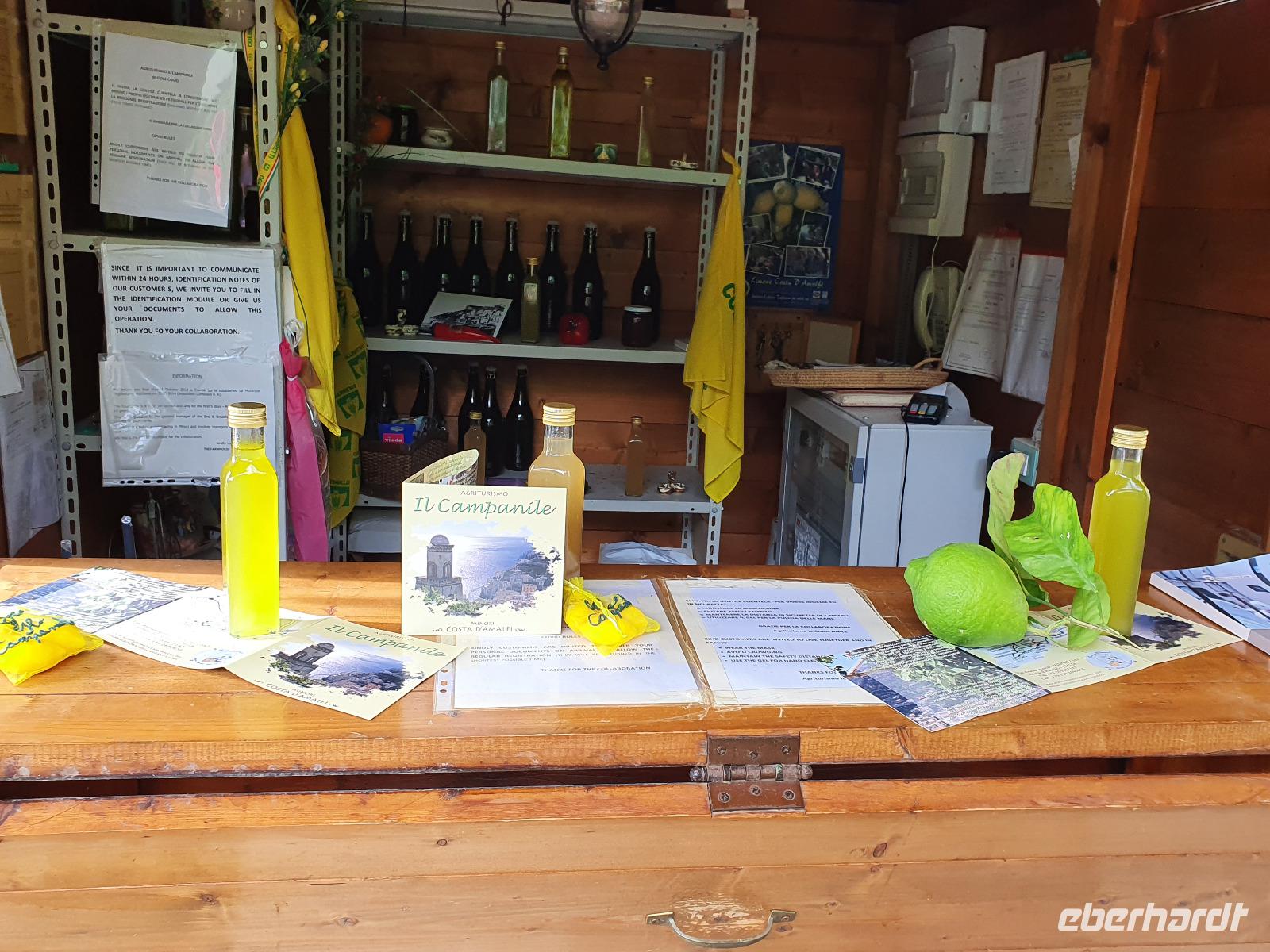 In Minori angekommen hatte Annamaria noch eine Überraschung für uns. Wir gingen zur Limoncello Manufaktur ganz versteckt hinter dem Kirchturm. Familie Mansi stellt dort ihren eigenen Limoncollo in verschiedenen Varianten her. Frau Mansi zeigte uns das Schälen der Zitronen und von Herrn Mansi erfuhren wir, dass die Schalen der grünen Zitronen nur 3 Tage im Alkohol bleiben und die der gelben Zitronen 6-7 Tage. Wir durften probieren und alle kauften danach fleissig ein. Es gab auch andere Spezialitäten wie mit Limoncello gefüllte Pralinen, Zitronenbonbons und vieles mehr. Anschliessend besuchten einige noch die Kirche gleich nebenan.