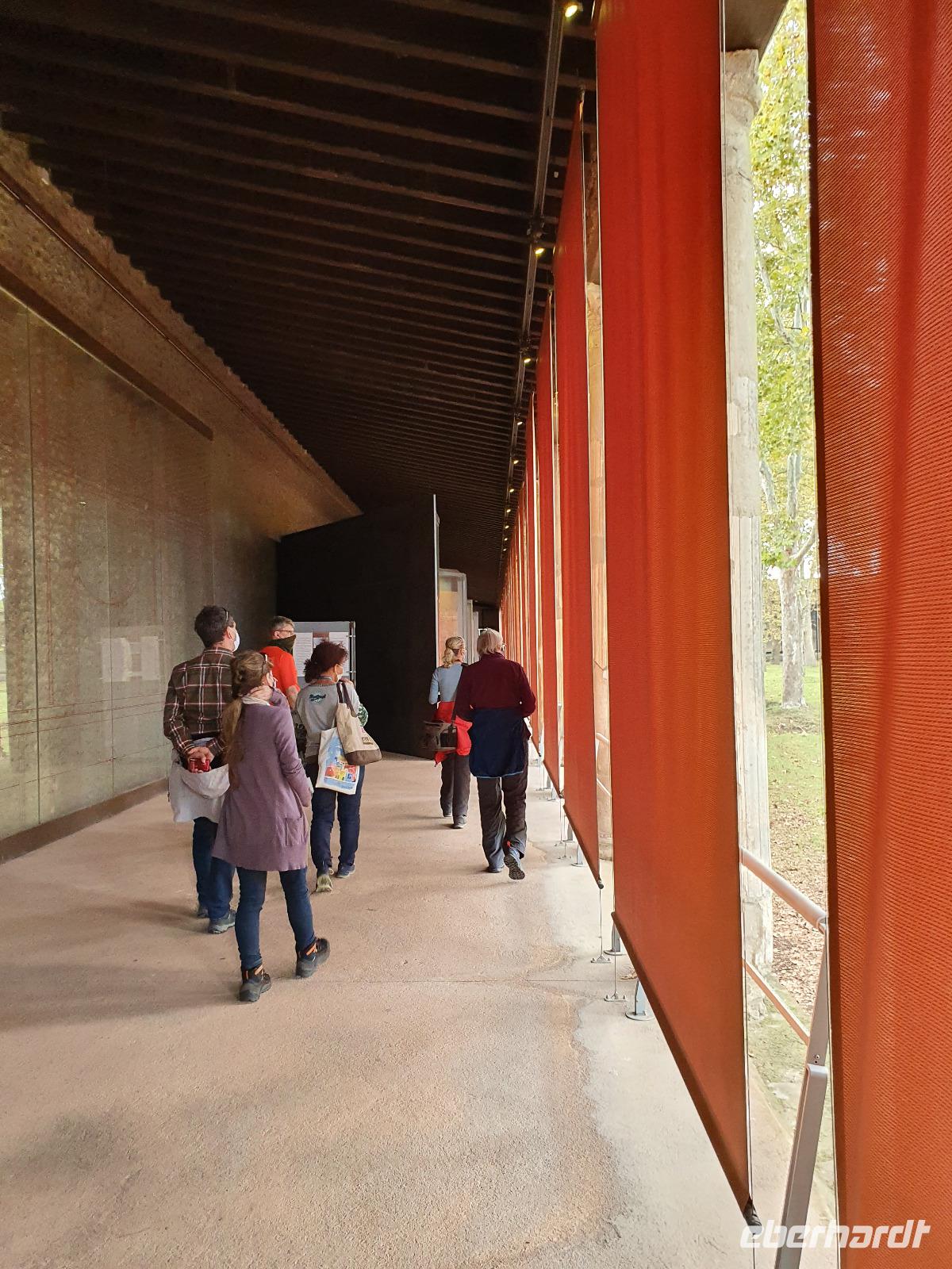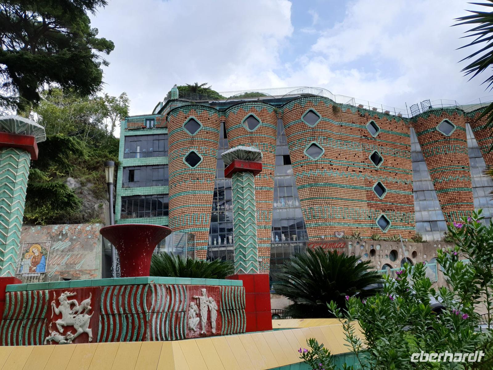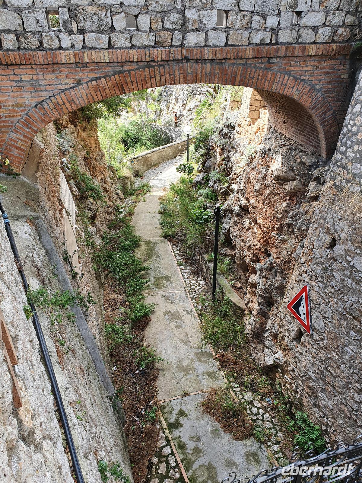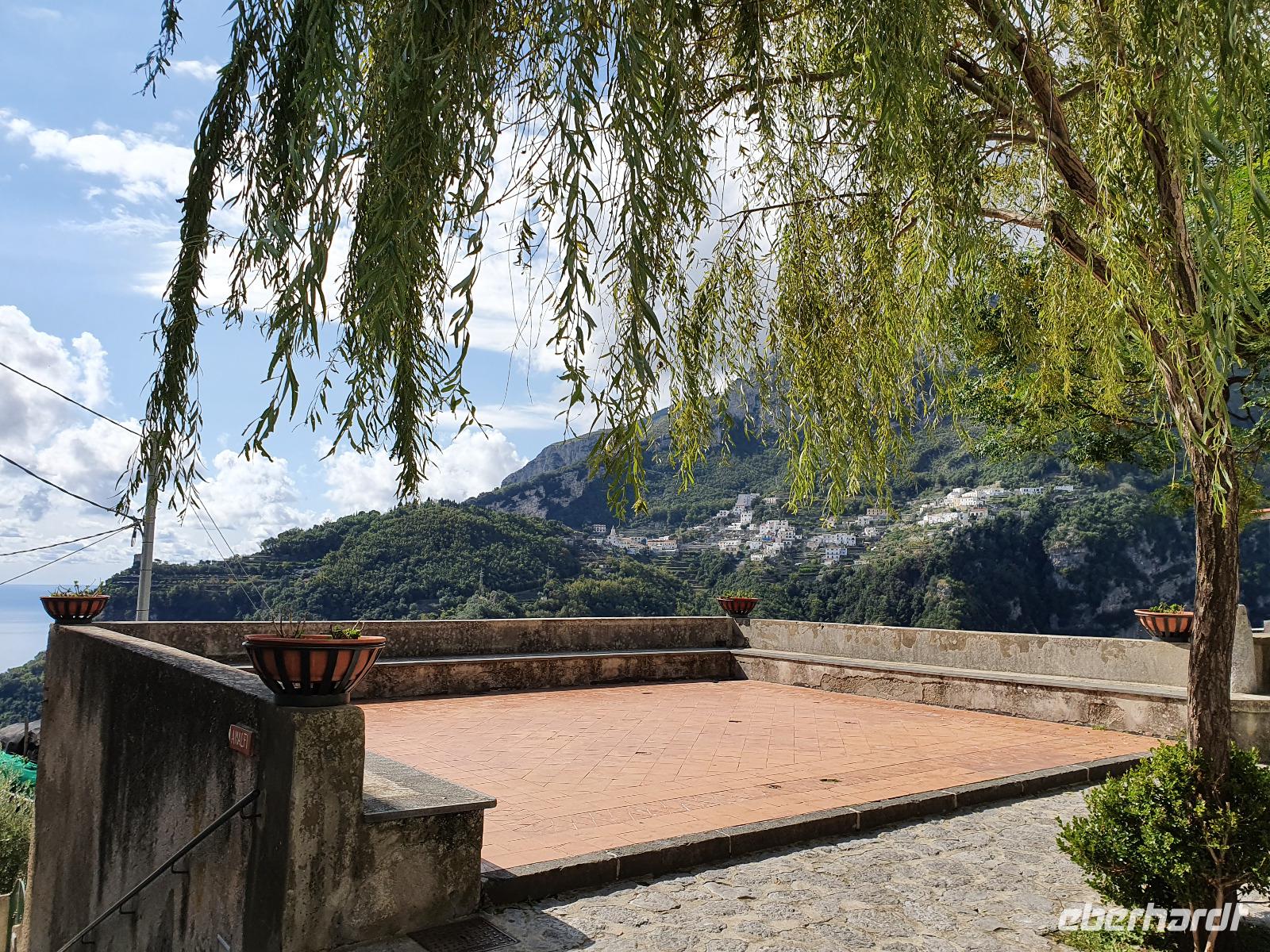 Leider verdunkelt sich der Himmel und Regen setzt ein. Daniele zeigt uns zuerst den Bau des Oskar-Niemeyer-Auditoriums, dass vom brasilianischen Stararchitekten im Jahr 2000 entworfen, vorwiegend von der EU finanziert und 2010 mit 2 Konzerten endlich eröffnet wurde. Gleich darauf schloss man es wieder und seitdem gibt es nur wenig Nutzung, dafür aber enorme Verfallserscheinungen. Geplant war ursprünglich, dass die im Rahmen der Wagner Festspiele organisierten Konzerte auch im Winter im Auditorium stattfinden können. Das trat aber nicht ein und so werden die Veranstaltungen wie eh und je im Sommer im Garten der Villa Rufolo durchgeführt - mit Ausnahme 2020. Wir spazieren durch einen der beiden Tunnel ins Stadtzentrum und gehen vorbei an der Villa Rufolo zur Villa Cimbrone.
