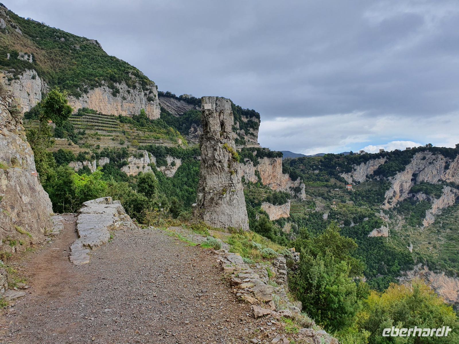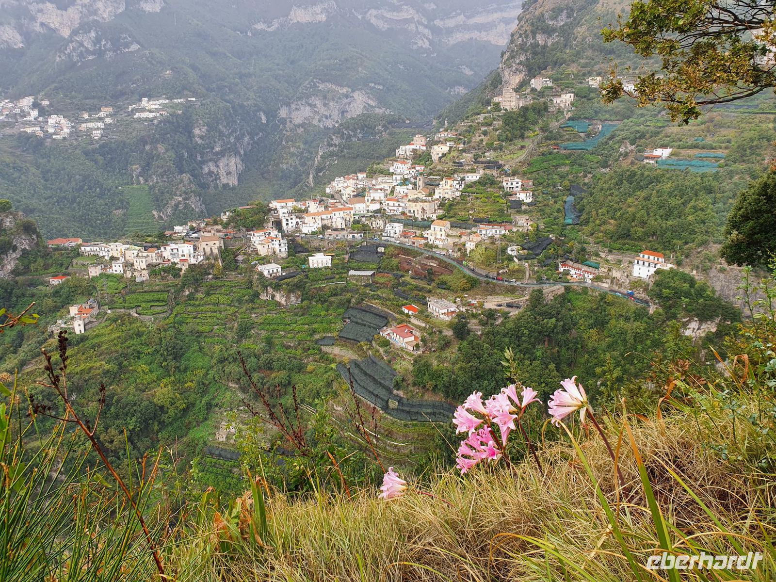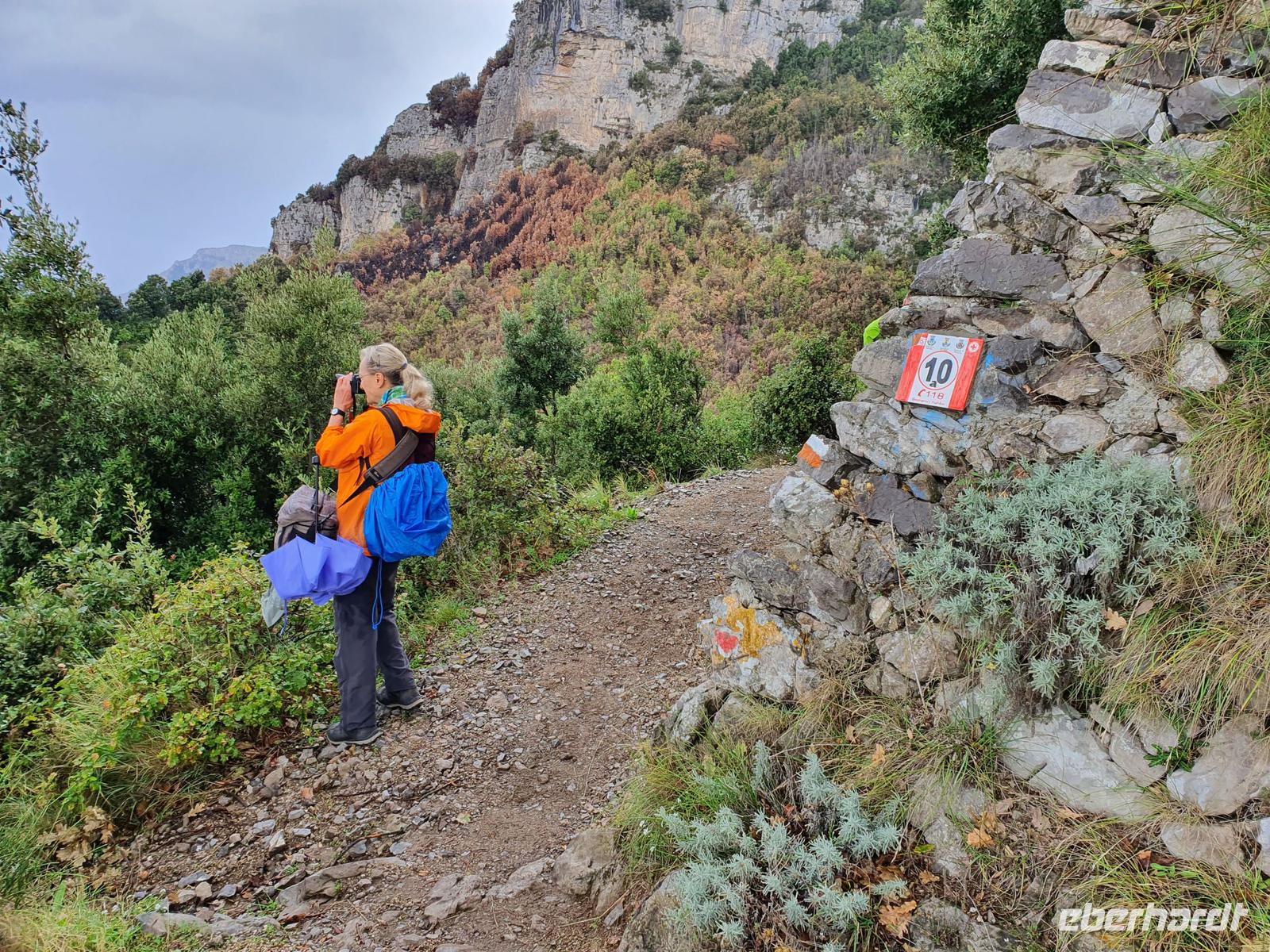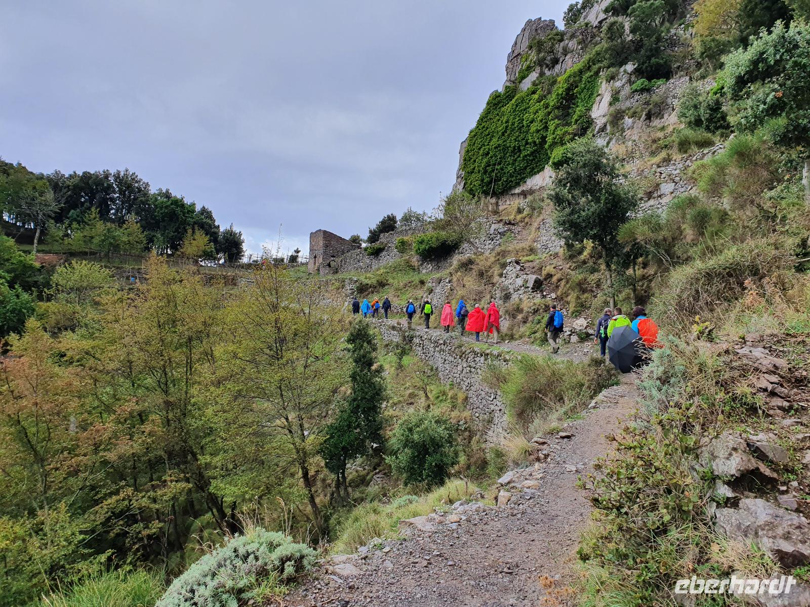 Unterwegs sehen wir die herrliche Kulturlandschaft mit vielen Terrassengärten und kommen schliesslich zum Abzweig Kloster St.Nicola. Ein Gewitter zieht auf und so beschliessen wir, das Kloster nicht zu sehen und lieber abzusteigen.