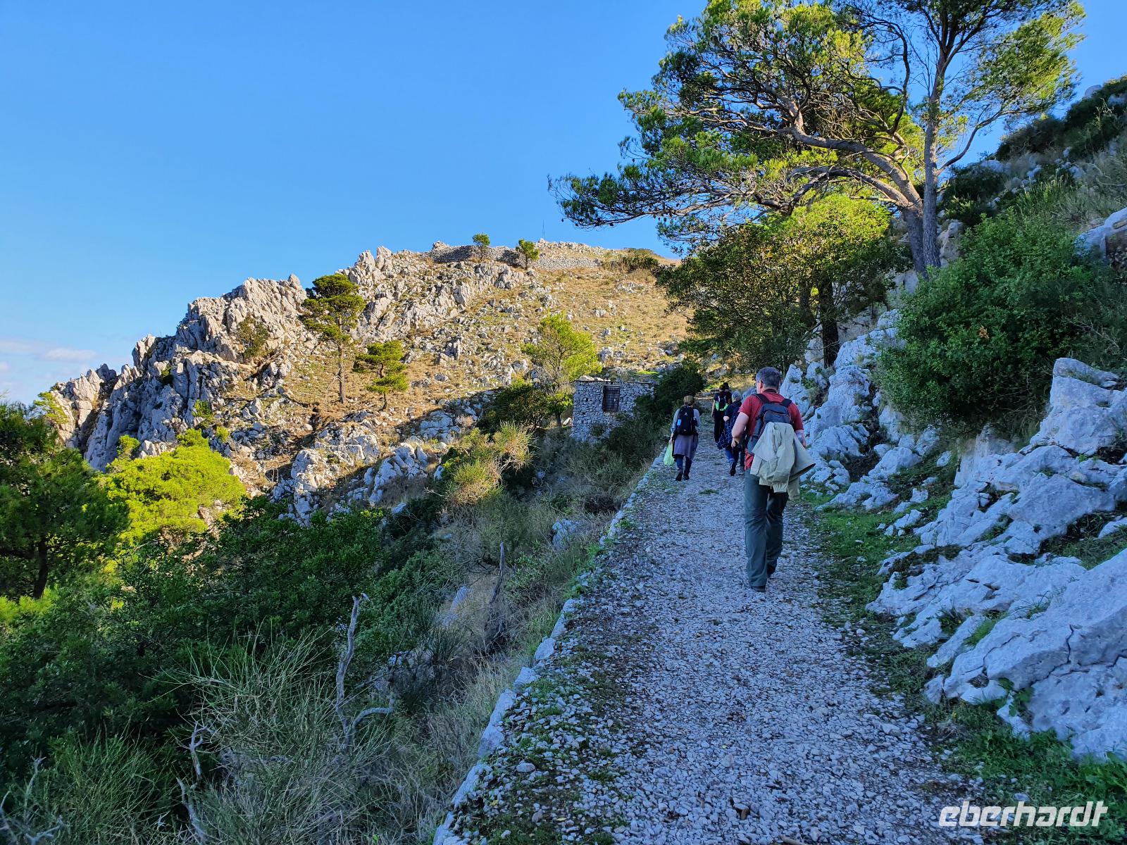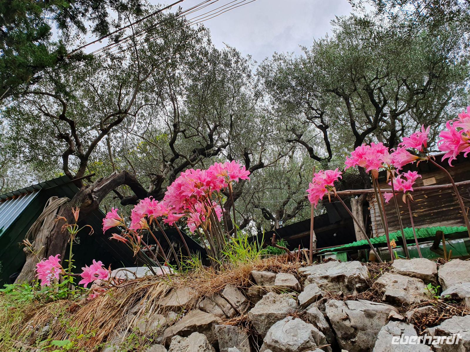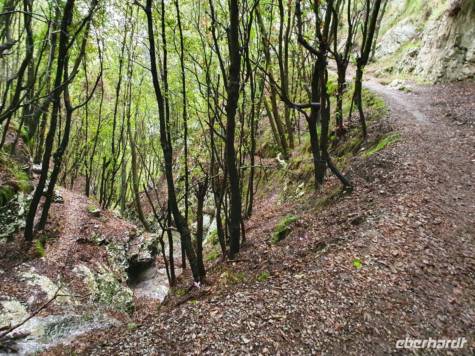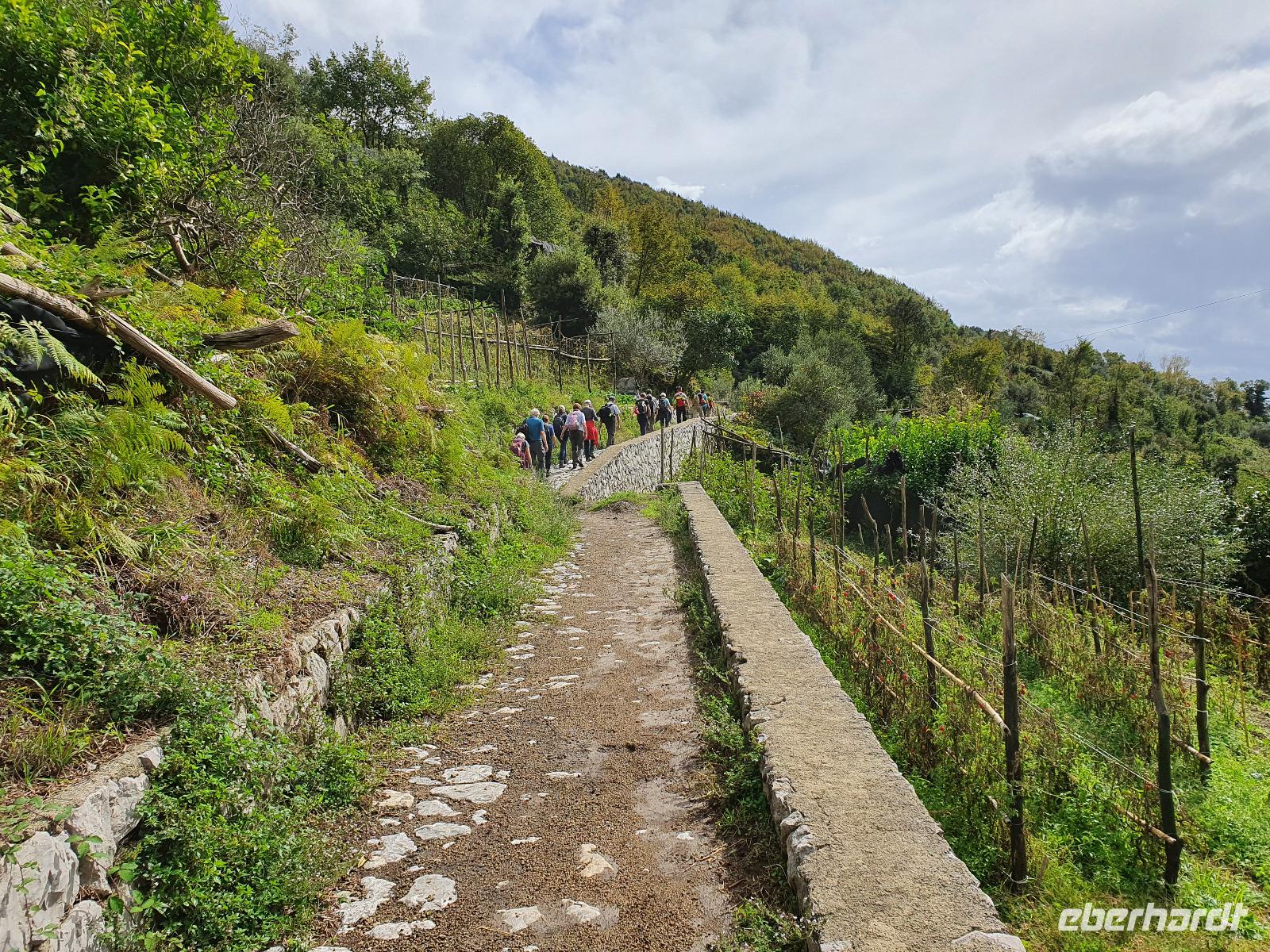 Unterwegs sehen wir die herrliche Kulturlandschaft mit vielen Terrassengärten und kommen schliesslich zum Abzweig Kloster St.Nicola. Ein Gewitter zieht auf und so beschliessen wir, das Kloster nicht zu sehen und lieber abzusteigen.