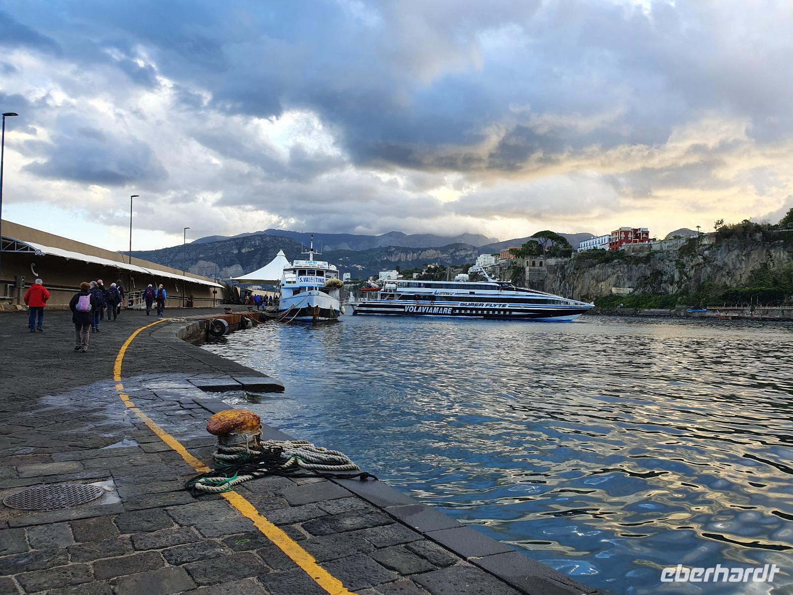 Danach berieten Annamaria und ich über unseren letzten Ausflugstag nach Capri. Es war unklar, ob die Schiffe schon wieder fahren würden und so gestalteten wir in Gedanken schon mal wieder ein Ersatzprogramm. Nach dem Abendessen bestellte ich dennoch das Frühstück für 6 Uhr und nun konnte ich nur noch hoffen.