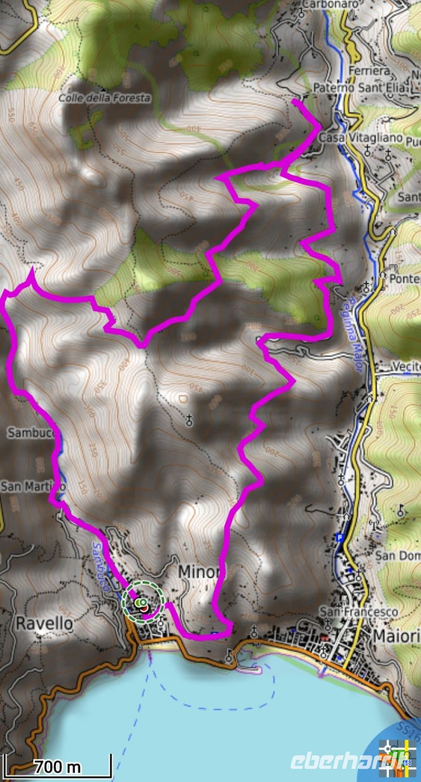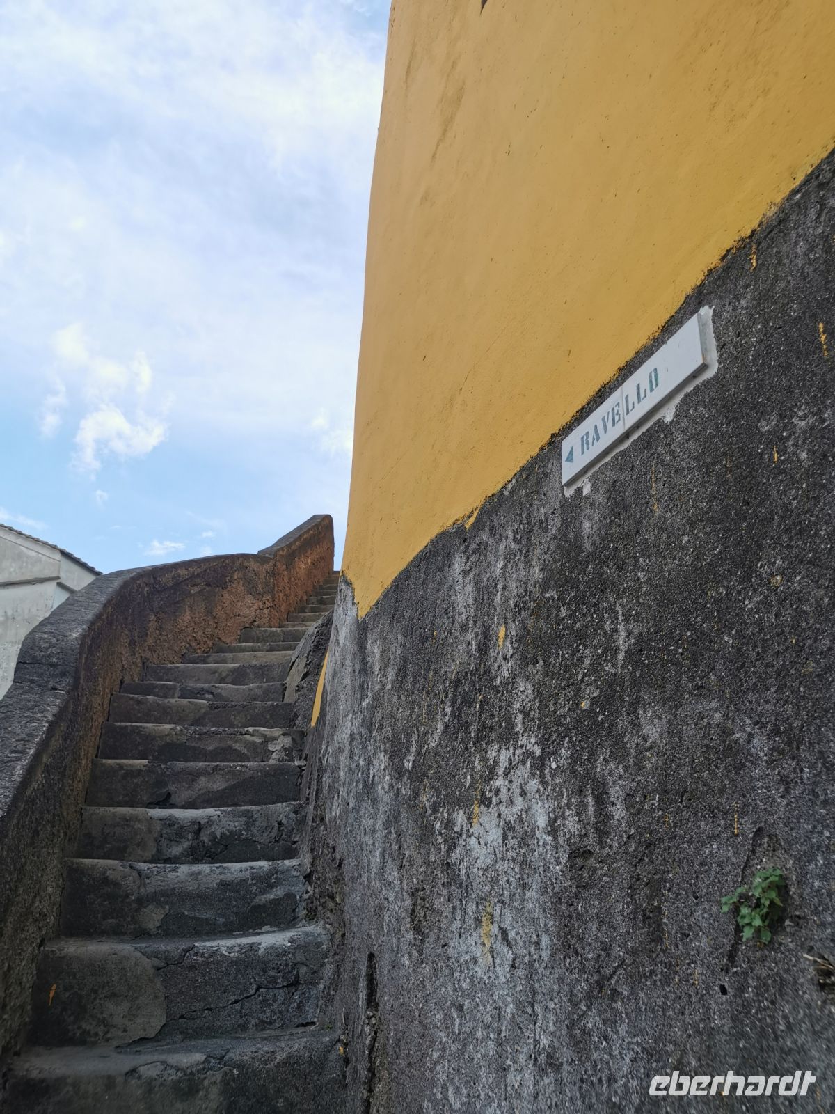 Ein letzter Schluck aus der Wasserflasche, noch ein paar Schritte und dann……gefühlte tausend Stufen abwärts hinunter nach Minori. Noch einmal die Aufforderung an die Knie durchzuhalten.