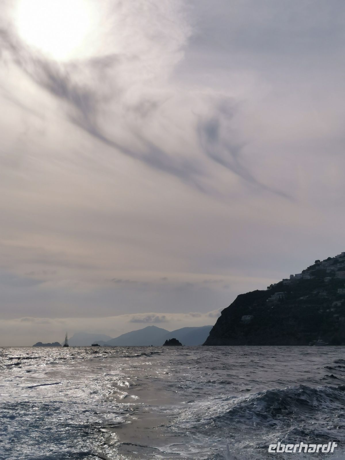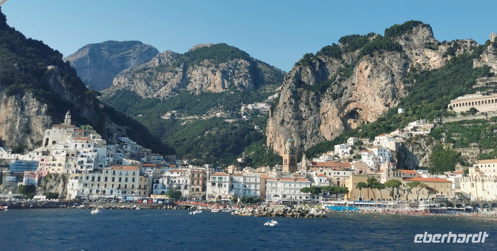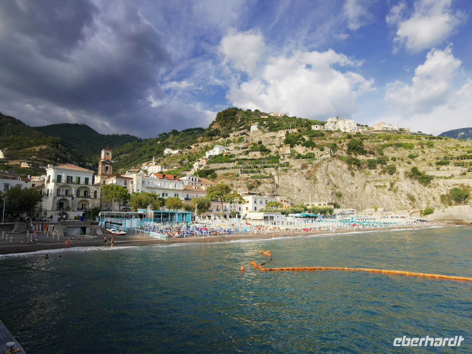 Ein Linienschiff schaukelte uns sachte über die Wellen des thyrrenischen Meeres von Amalfi zurück nach Minori. So konnten unsere verschwitzten Körper abkühlen und die schmerzenden Knien sich vom ungezählten Treppen abwärtsgehen erholen, während stolz die Kulisse der Amalfiküste an unseren Augen vorbeizog.